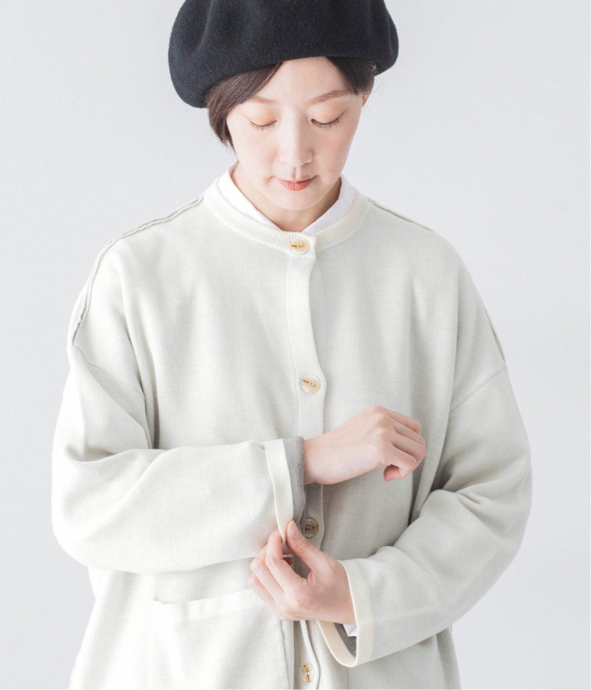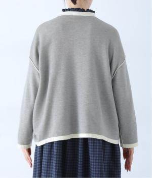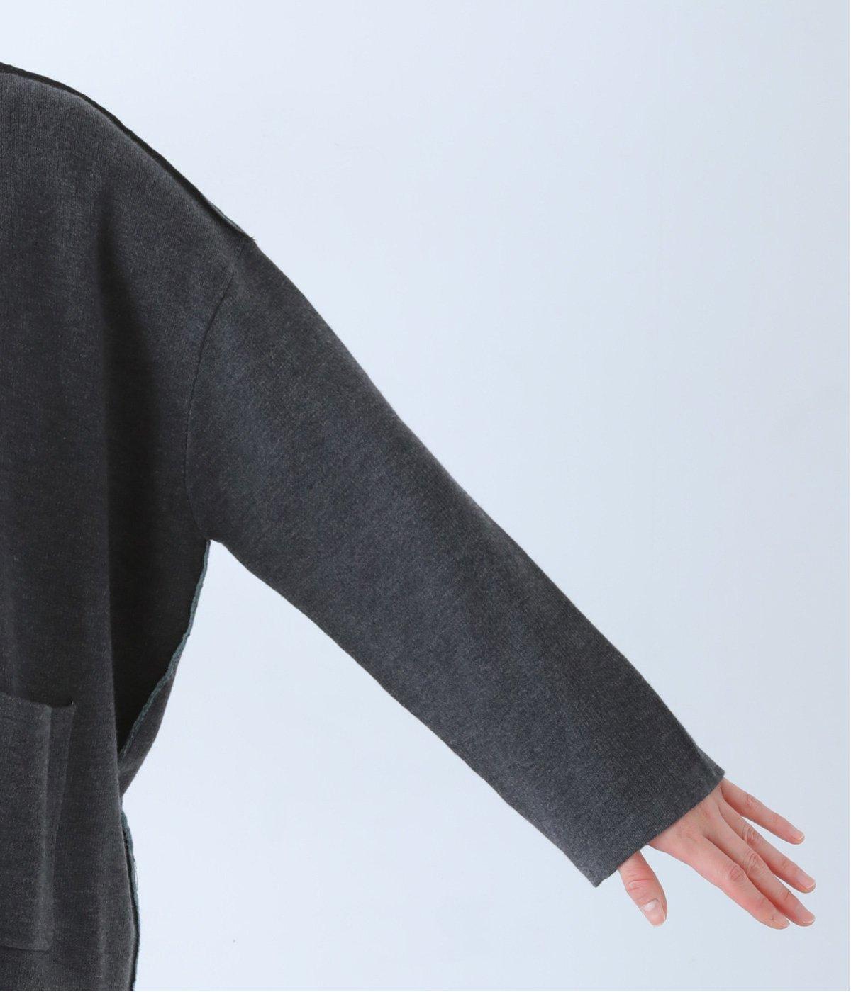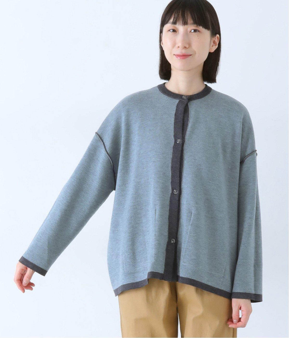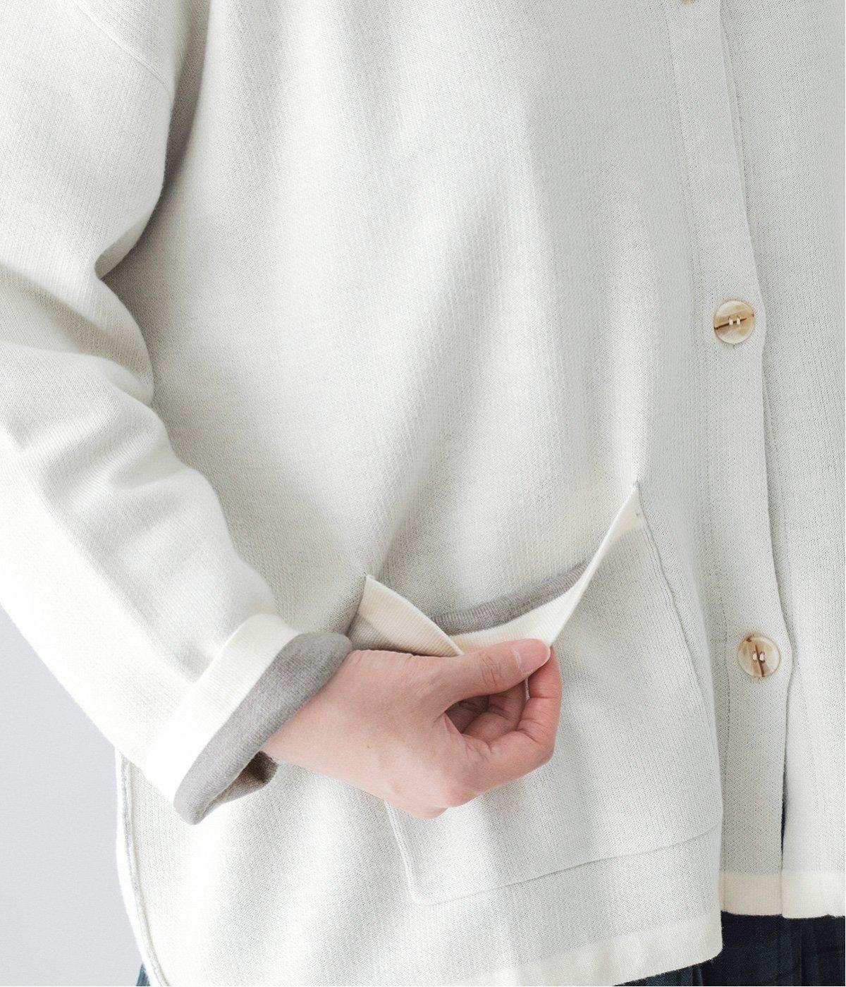 裏側が配色になった遊び心のあるデザインです。前をあけて着たときや袖を折り返したときなどに、ちらりとのぞく配色の色がアクセントを添えます。あえて外に出したサイドの接ぎ部分もポイントに。ベーシックなアイテムでもさりげない差がつく一枚です。