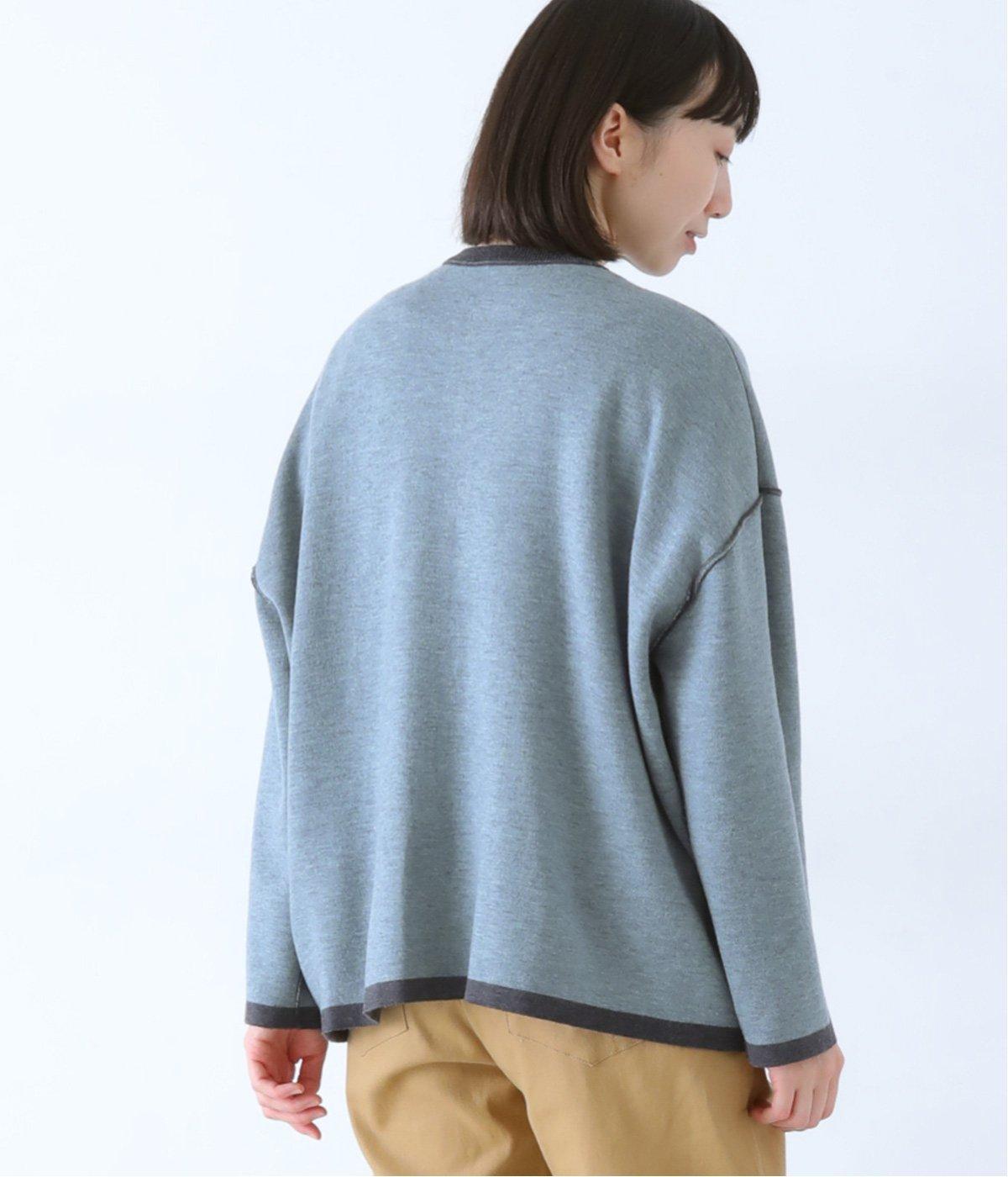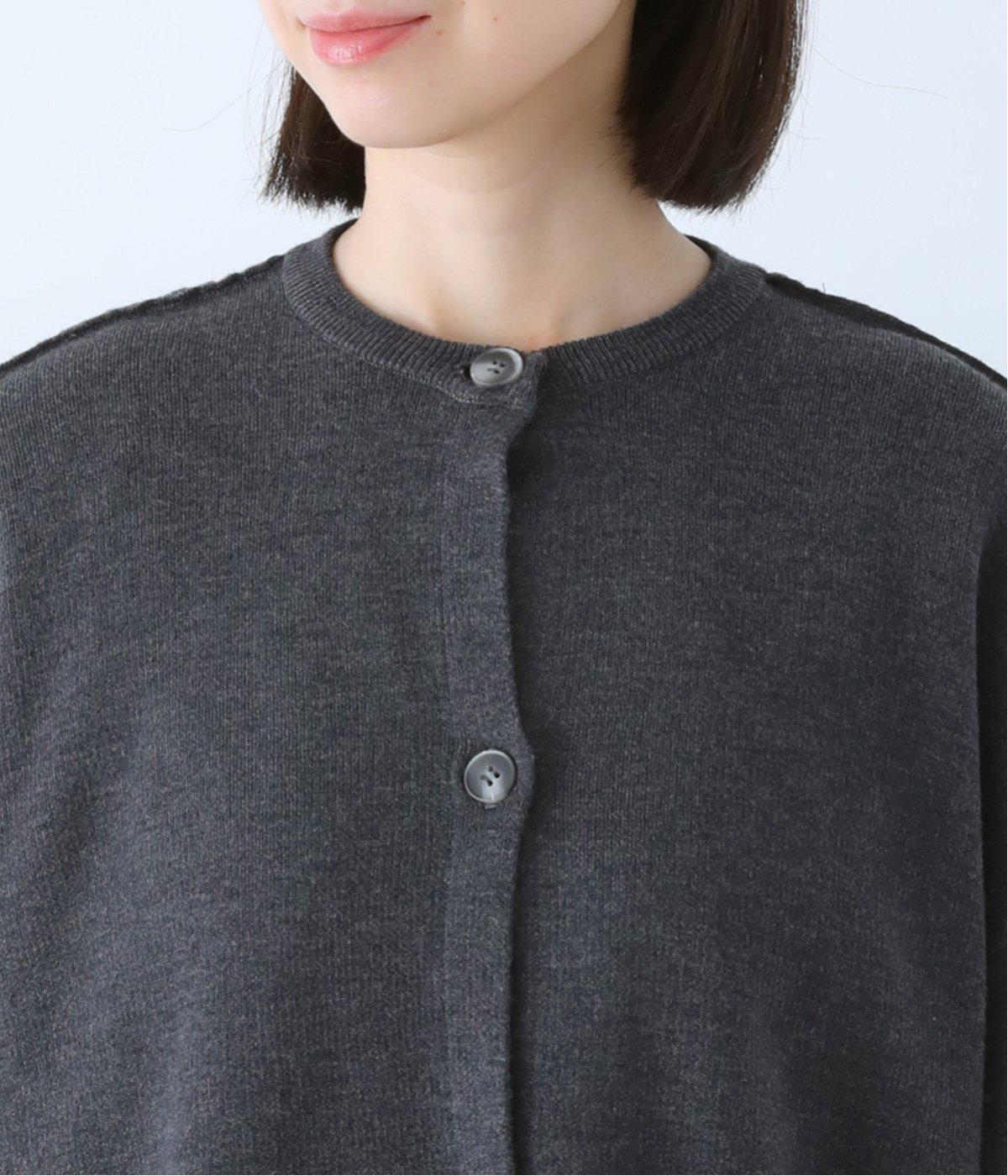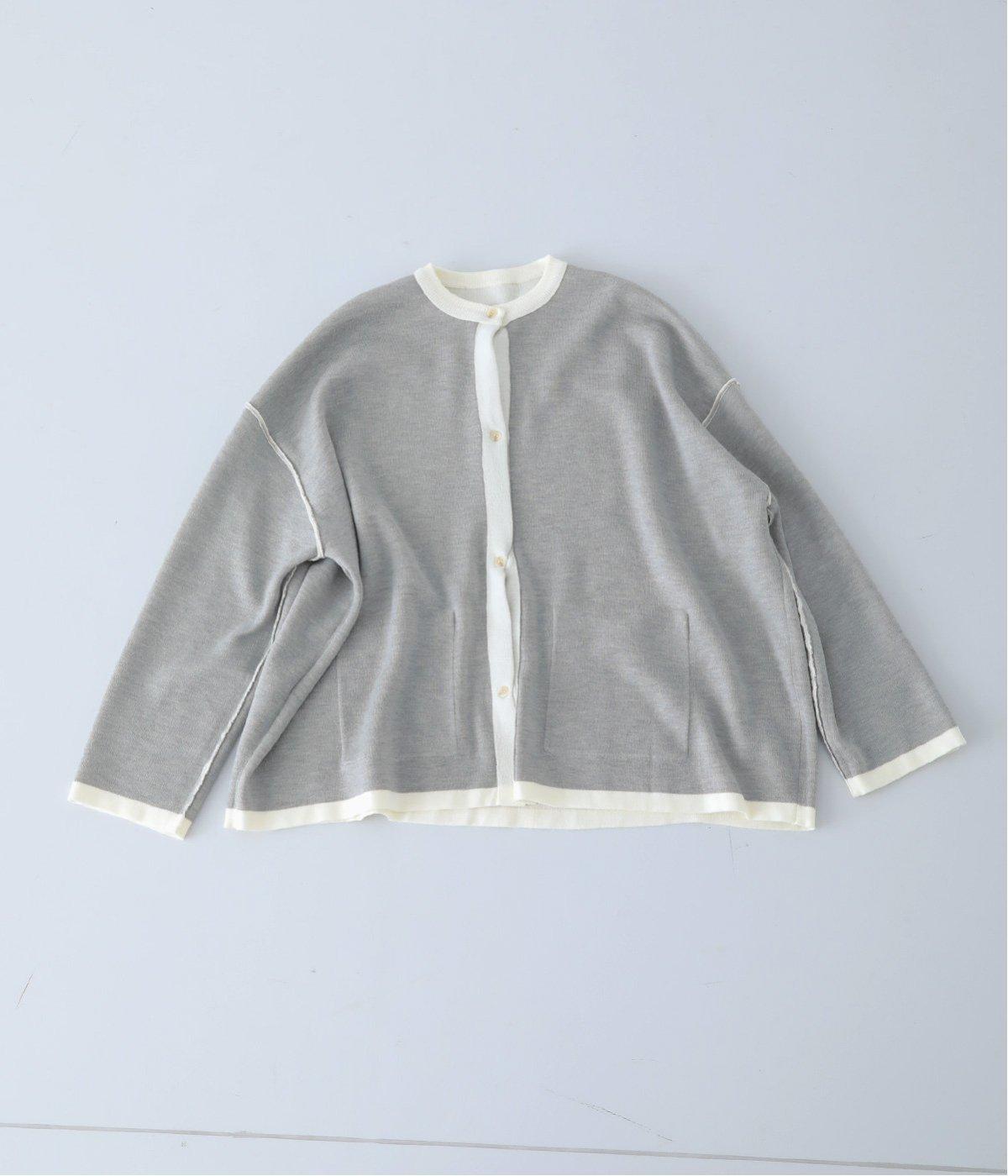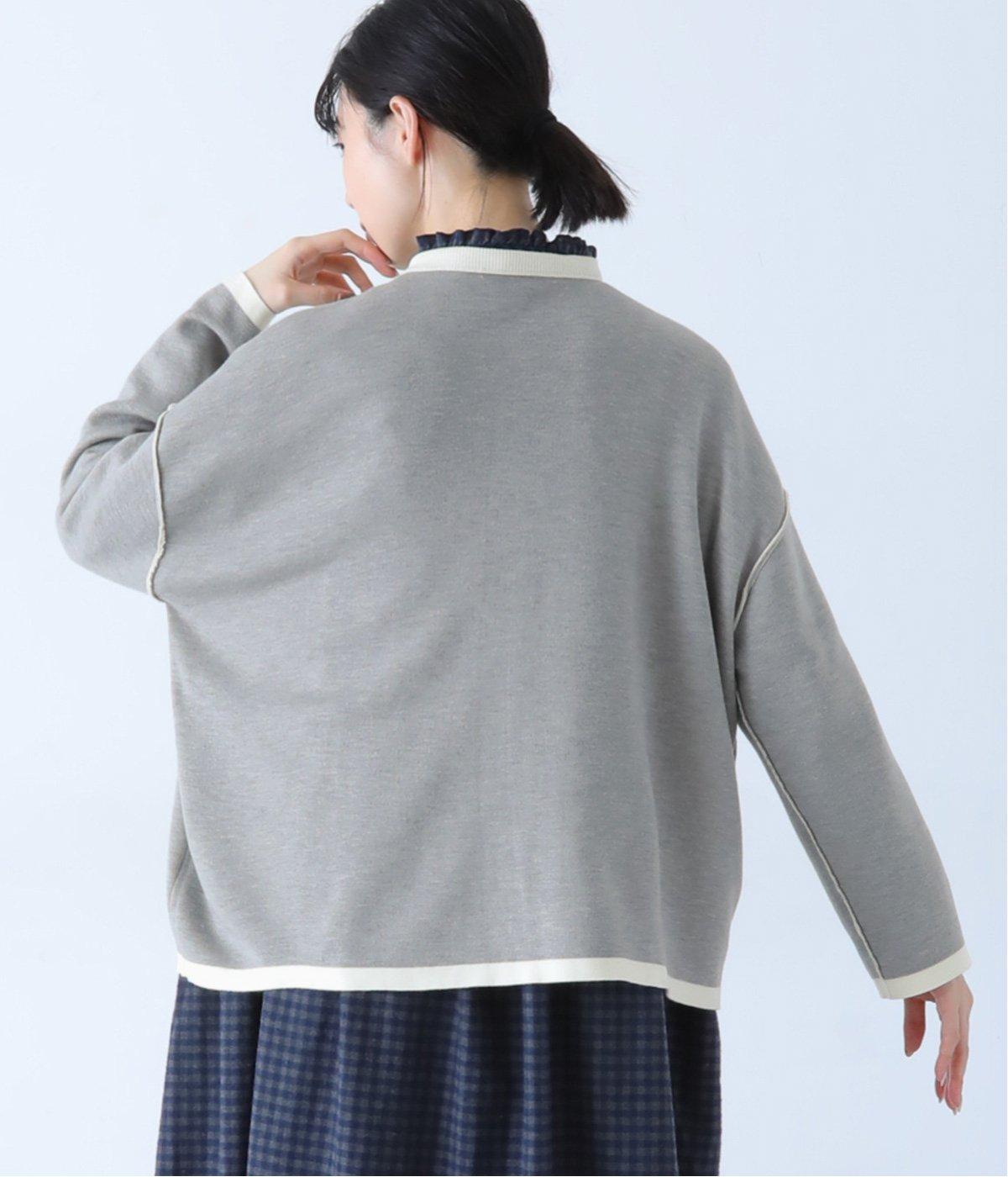 裏側が配色になった遊び心のあるデザインです。前をあけて着たときや袖を折り返したときなどに、ちらりとのぞく配色の色がアクセントを添えます。あえて外に出したサイドの接ぎ部分もポイントに。ベーシックなアイテムでもさりげない差がつく一枚です。