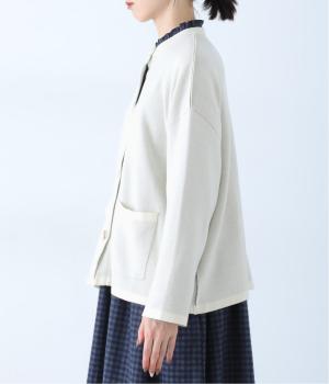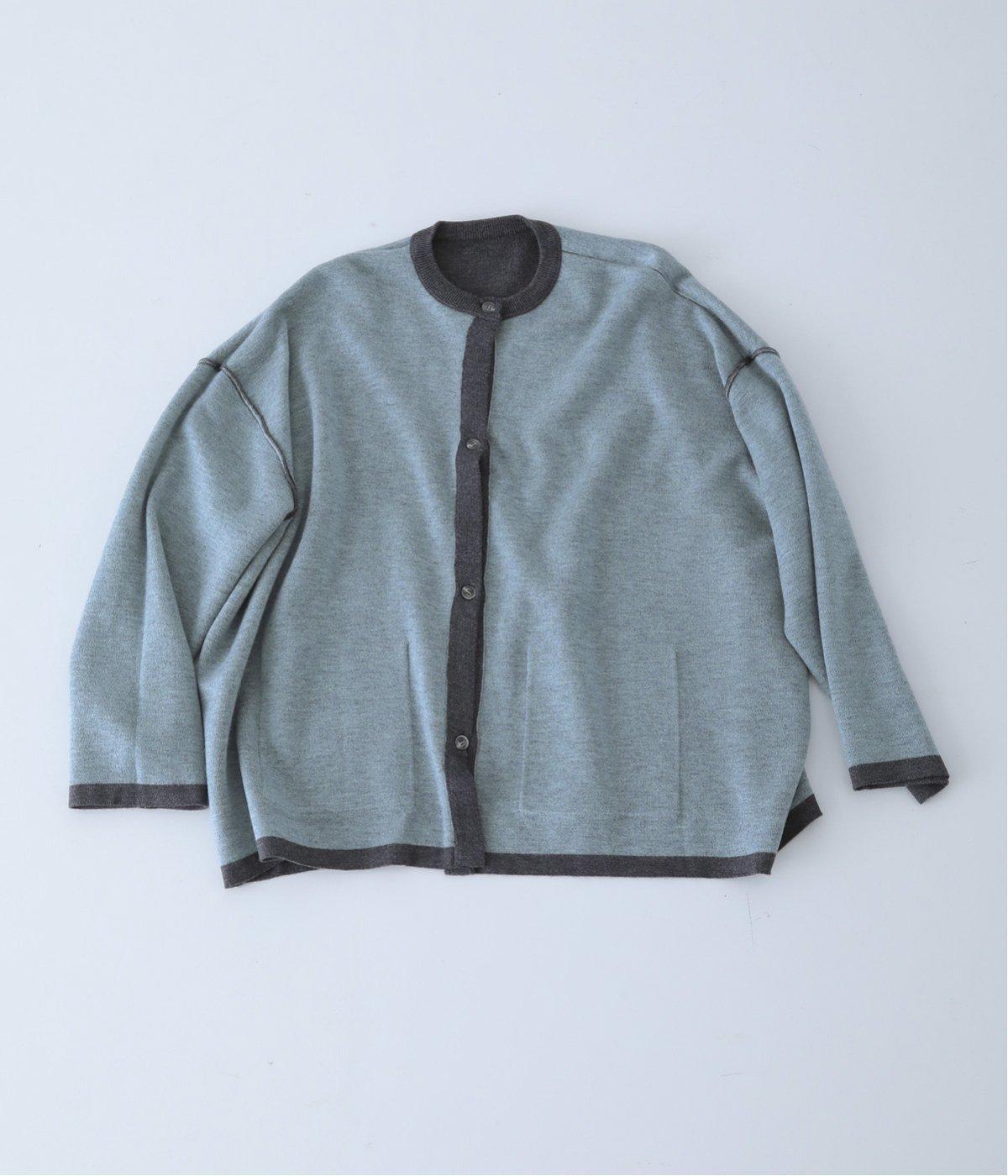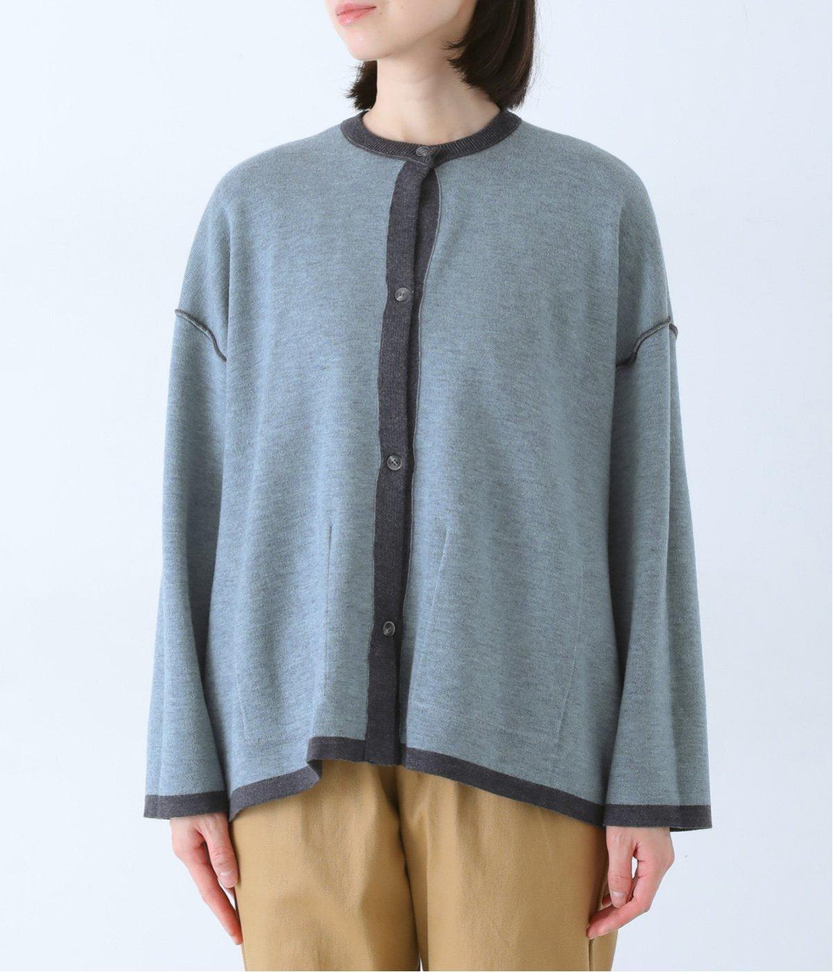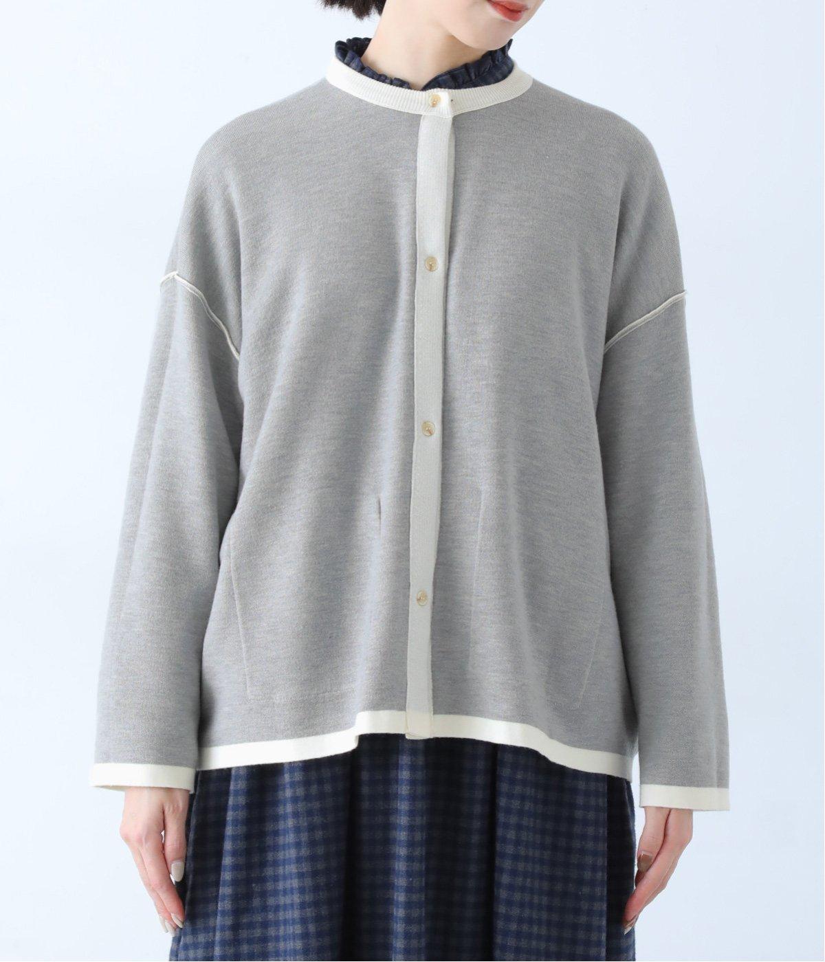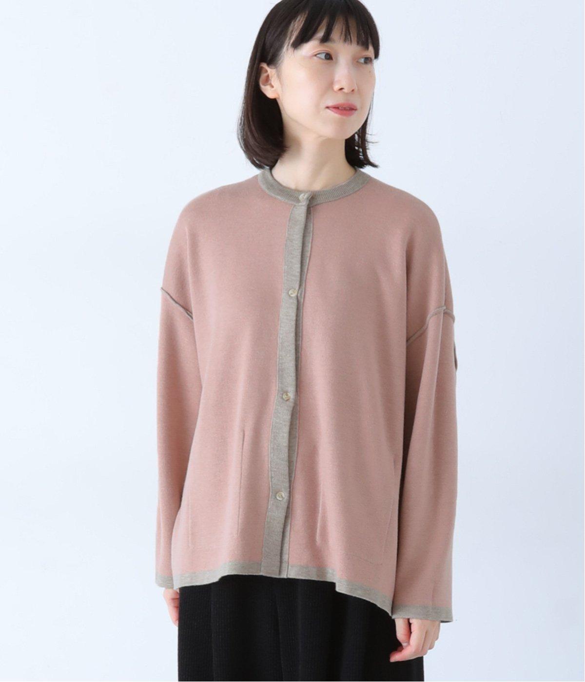 裏側が配色になった遊び心のあるデザインです。前をあけて着たときや袖を折り返したときなどに、ちらりとのぞく配色の色がアクセントを添えます。あえて外に出したサイドの接ぎ部分もポイントに。ベーシックなアイテムでもさりげない差がつく一枚です。