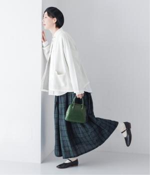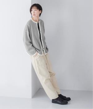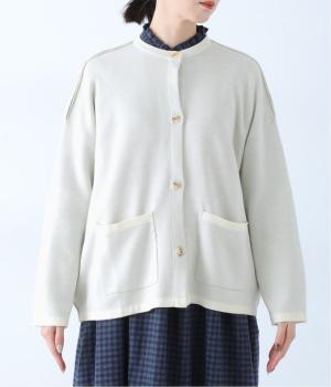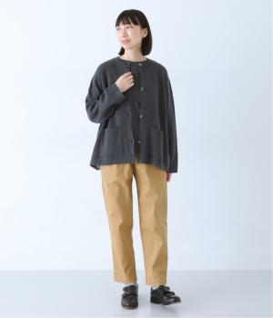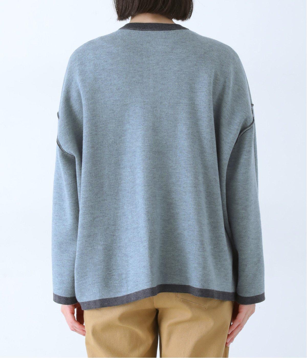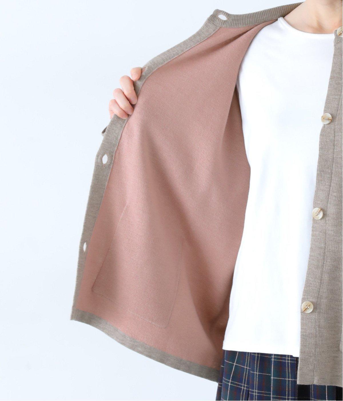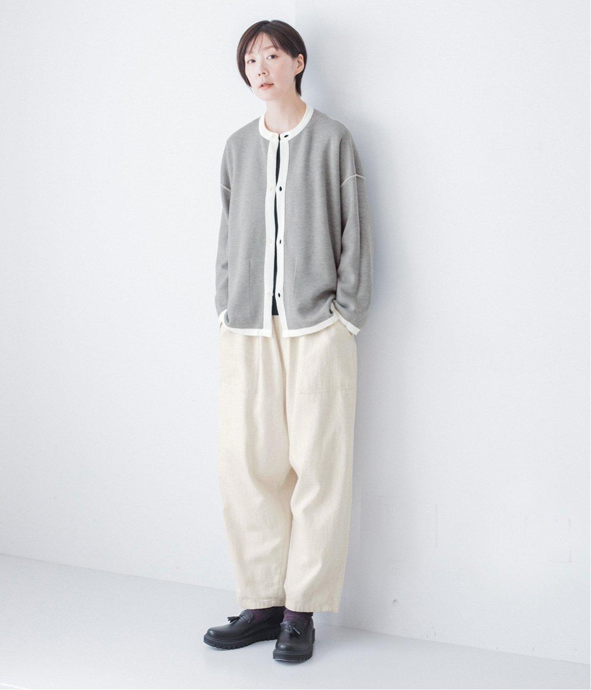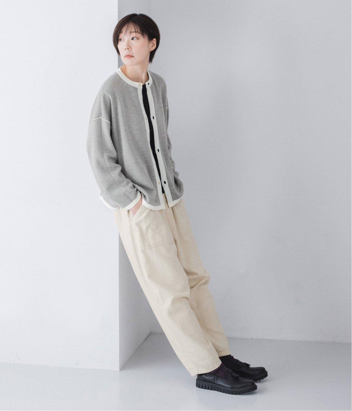 裏側が配色になった遊び心のあるデザインです。前をあけて着たときや袖を折り返したときなどに、ちらりとのぞく配色の色がアクセントを添えます。あえて外に出したサイドの接ぎ部分もポイントに。ベーシックなアイテムでもさりげない差がつく一枚です。