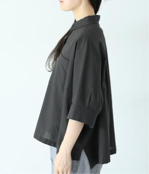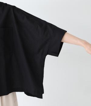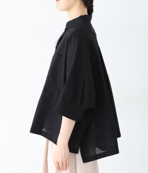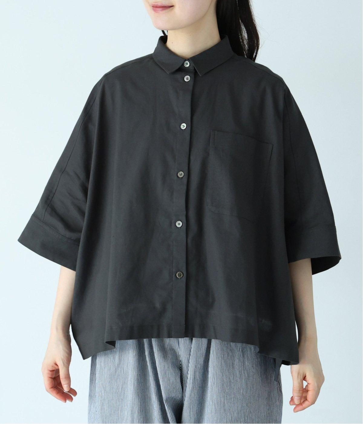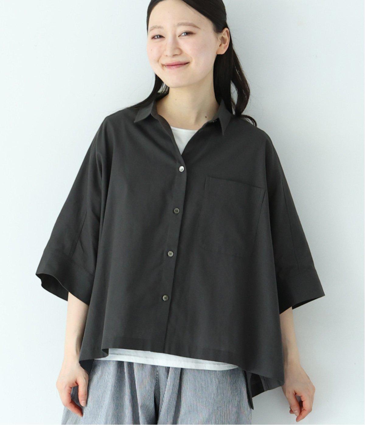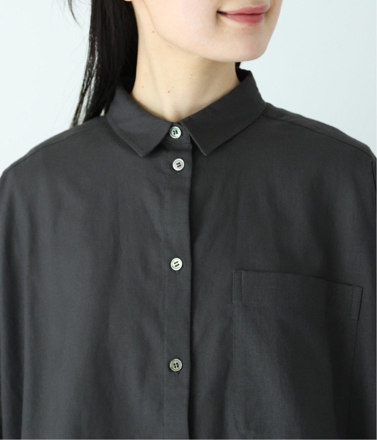 主張しすぎない小ぶりな襟とフロントポケットがきちんと感を演出するブラウス。汗ばむ時期にも快適な、肌との接地面積の少ないビッグシルエットです。パンツにもスカートにも合わせやすい絶妙な着丈も◎。ボタンをフルオープンにしてワンピースなどにさっと羽織るのもおすすめです。