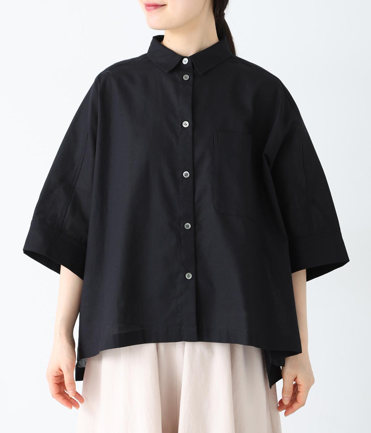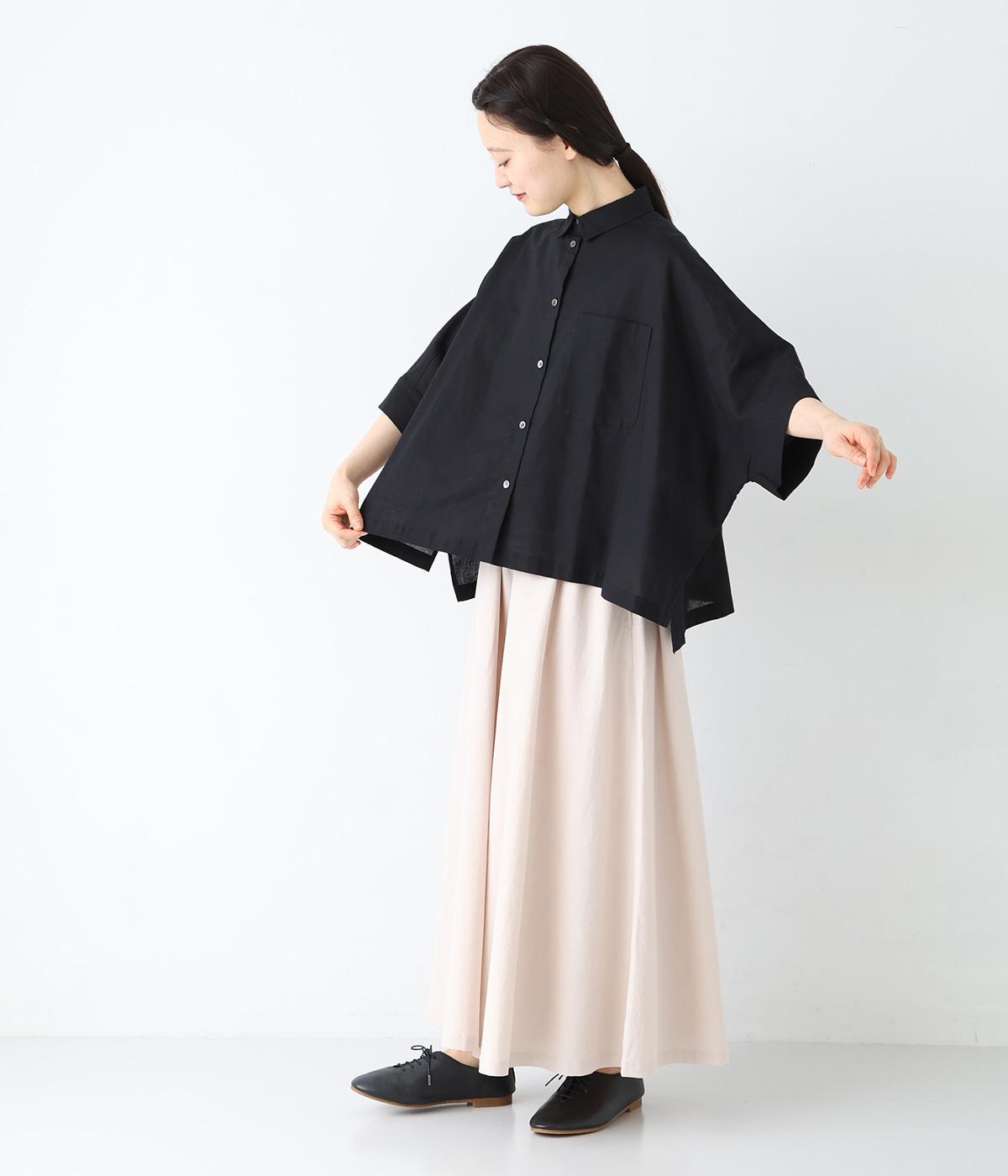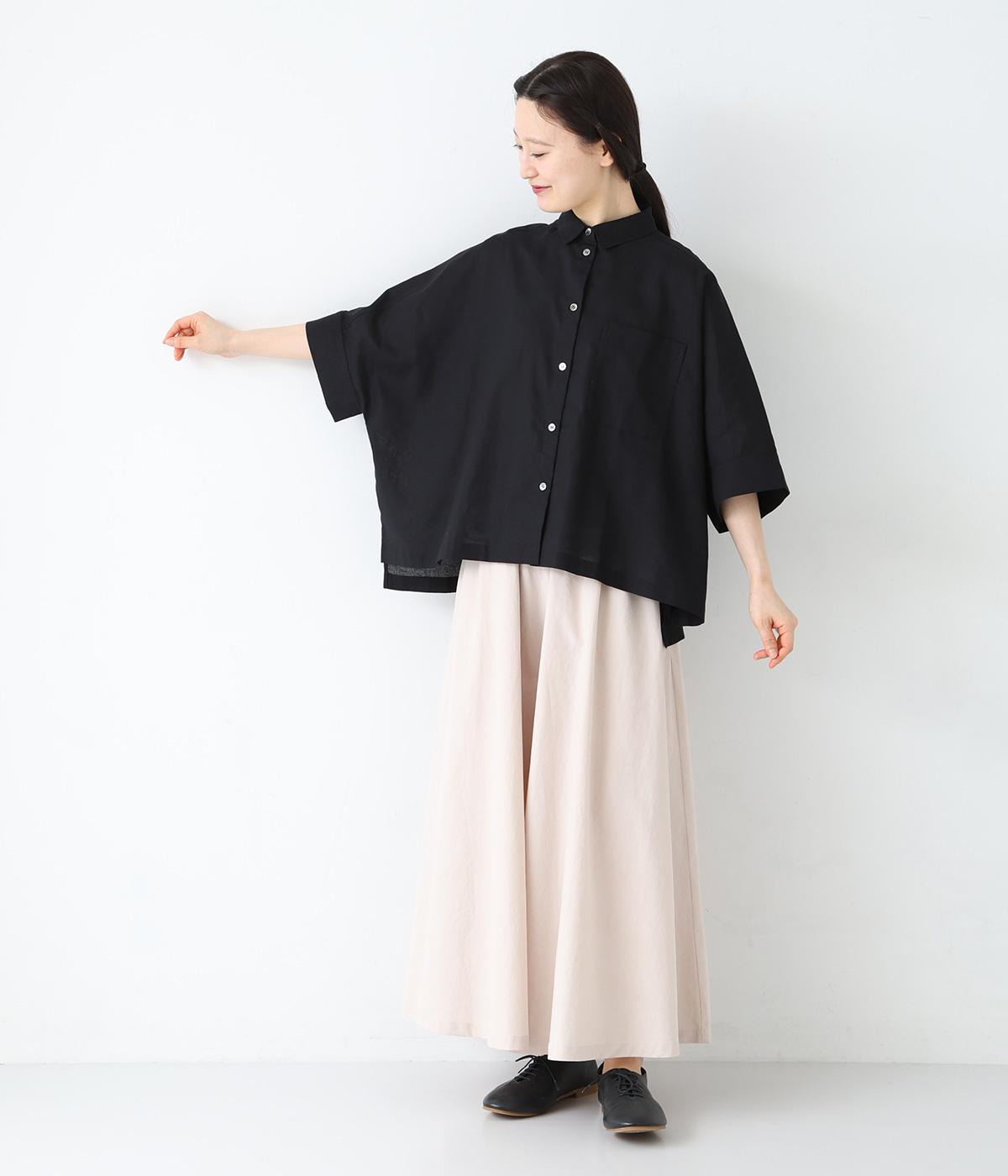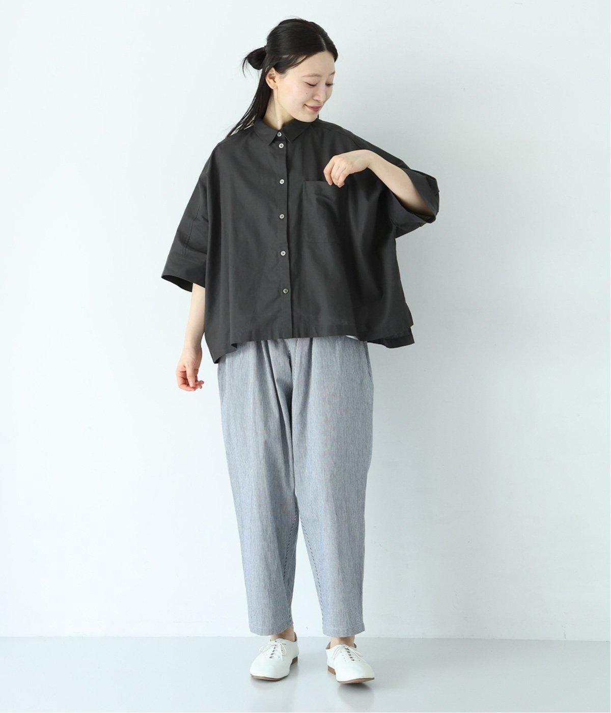 主張しすぎない小ぶりな襟とフロントポケットがきちんと感を演出するブラウス。汗ばむ時期にも快適な、肌との接地面積の少ないビッグシルエットです。パンツにもスカートにも合わせやすい絶妙な着丈も◎。ボタンをフルオープンにしてワンピースなどにさっと羽織るのもおすすめです。