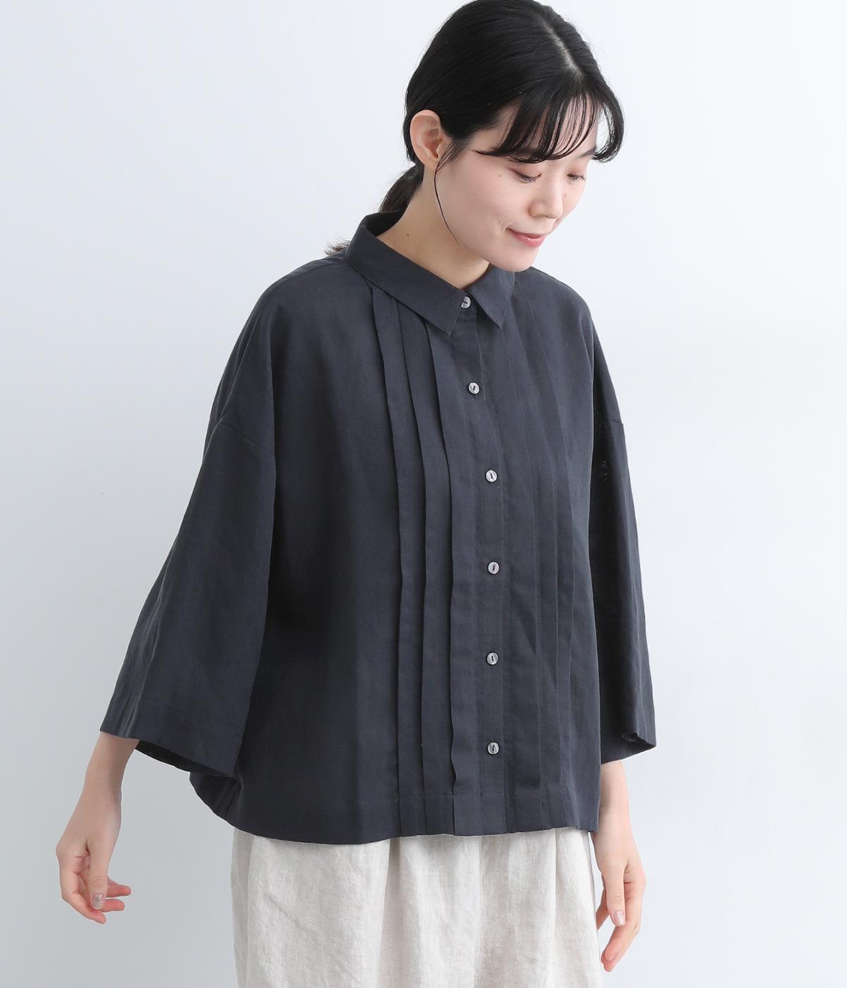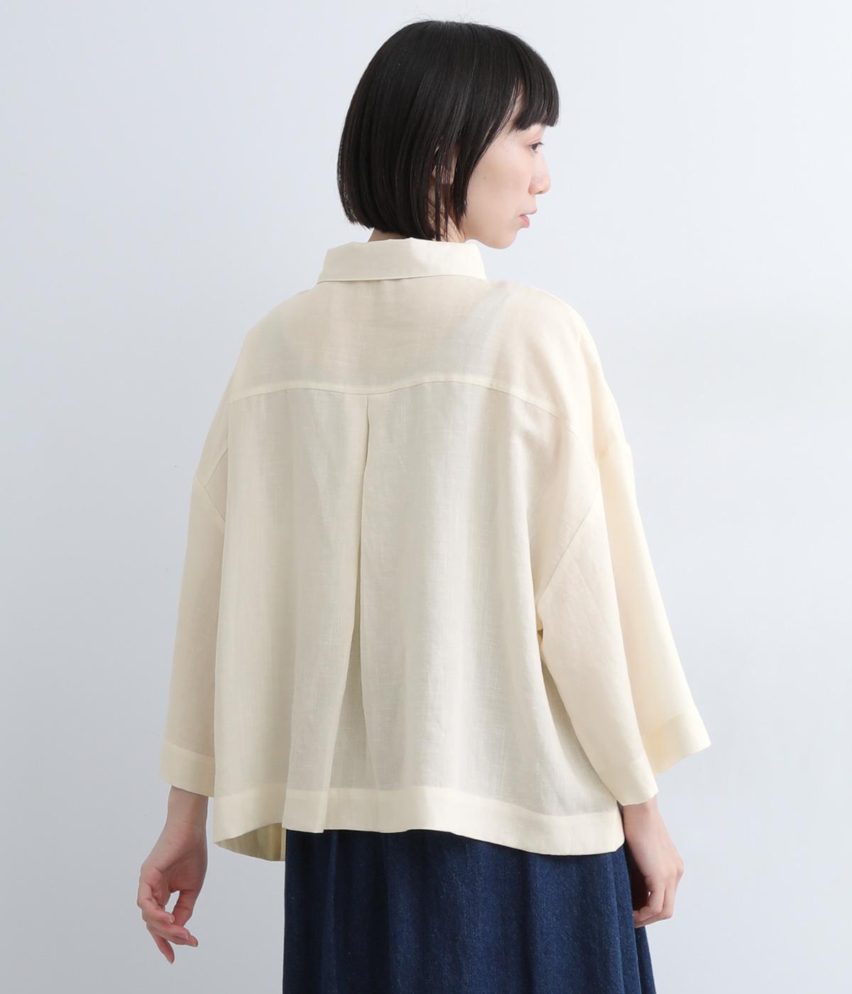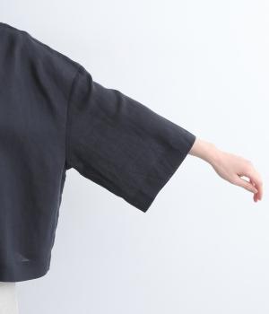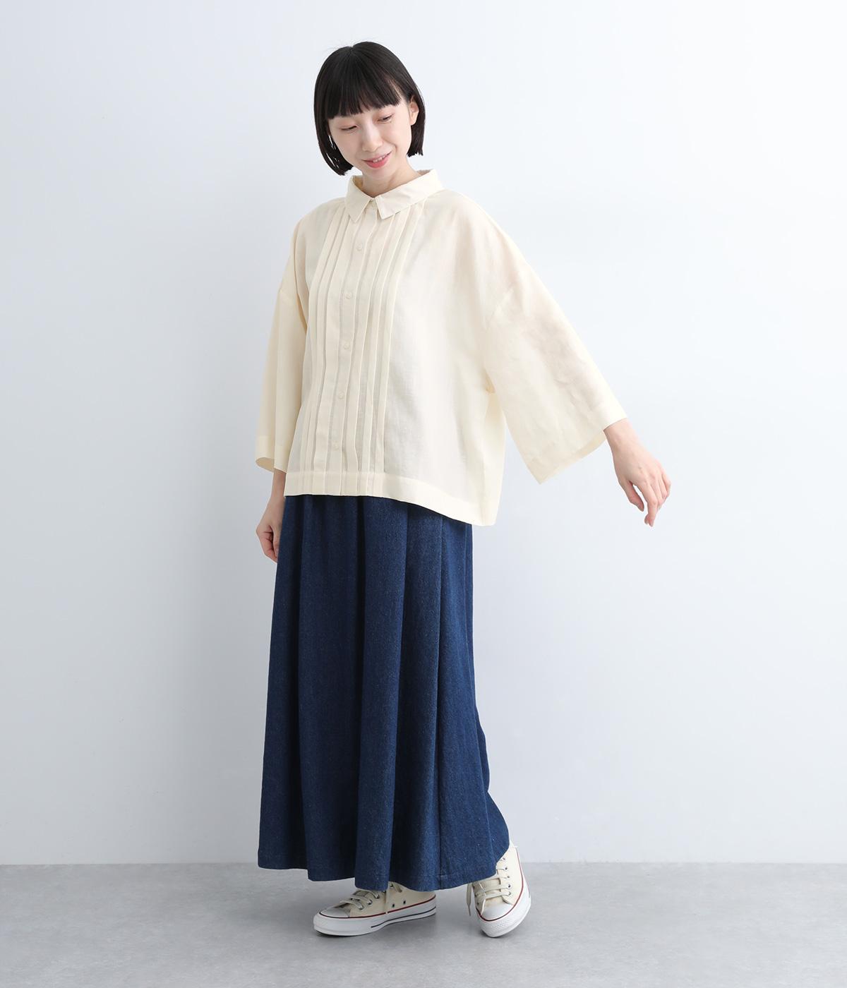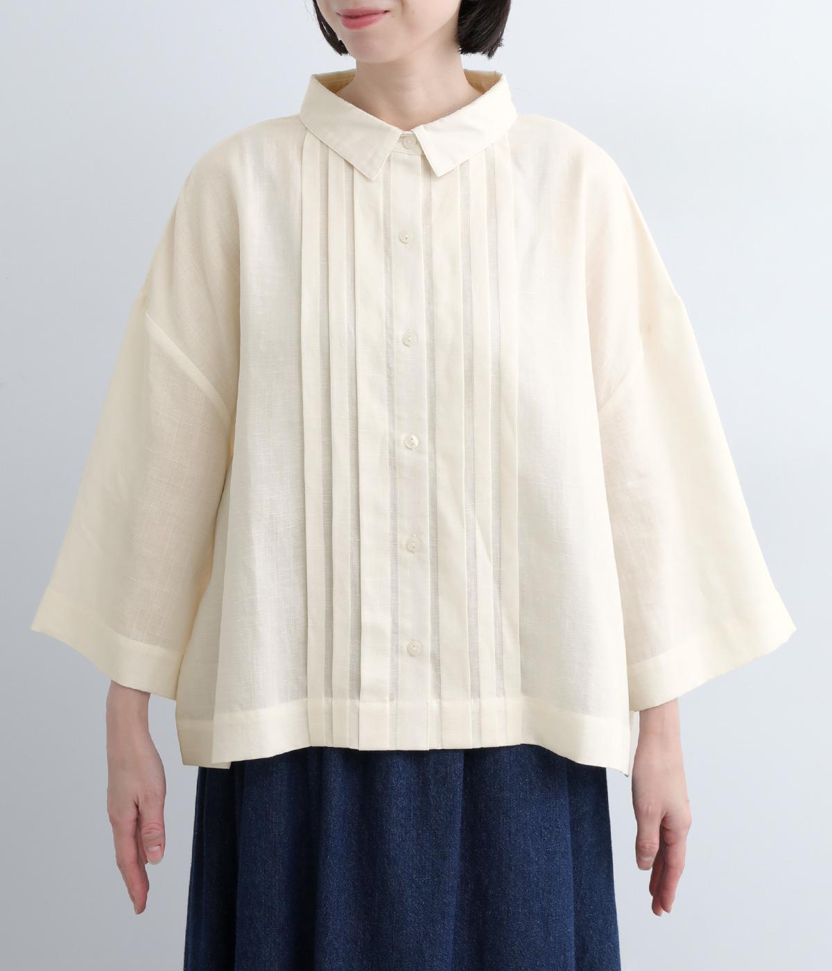 ゆとりのある袖幅やボックスシルエットなど、リラックスムードに仕立てました。前立てに沿ったピンタックがさり気なく品のいい印象に。ボタンを留めても窮屈さを感じにくい襟ぐりも特徴で、あたたかな季節の羽織り使いとしても重宝します。