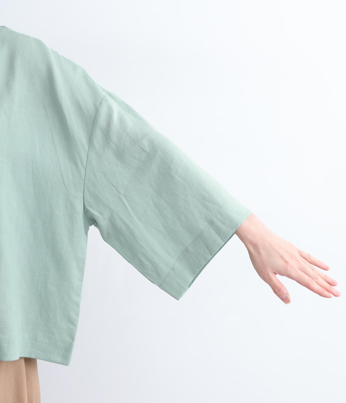 なめらかでやわらかいテンセルと、さらりとしてほどよくハリのあるリネン、それぞれの良さを持ち合わせた混紡素材を使用。ほんのり透け感のある薄めの中厚手でロングシーズン着まわせます。