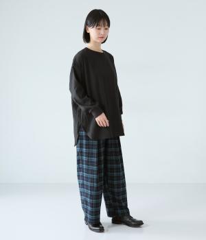 コーディネートを軽やかに仕上げる、ほんのり透け感のあるプルオーバー。襟ぐりと袖口にリブをつけてカジュアルな印象に仕上げました。前後差のある着丈と大きく曲線を描くヘムラインがポイントに。後ろネックの涙開きが着脱をアシストしてくれます。