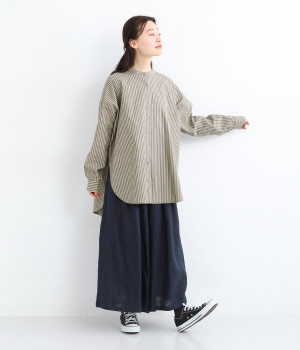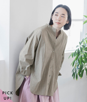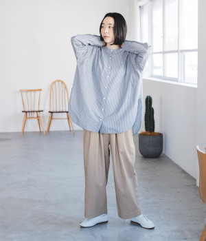 ほどよくハリがあり、きちんとした雰囲気をかもし出す素材。着こなしやすい軽めの風合いはデイリーにサッと合わせられるので重宝します。配色ストライプのさわやかな雰囲気も◎。