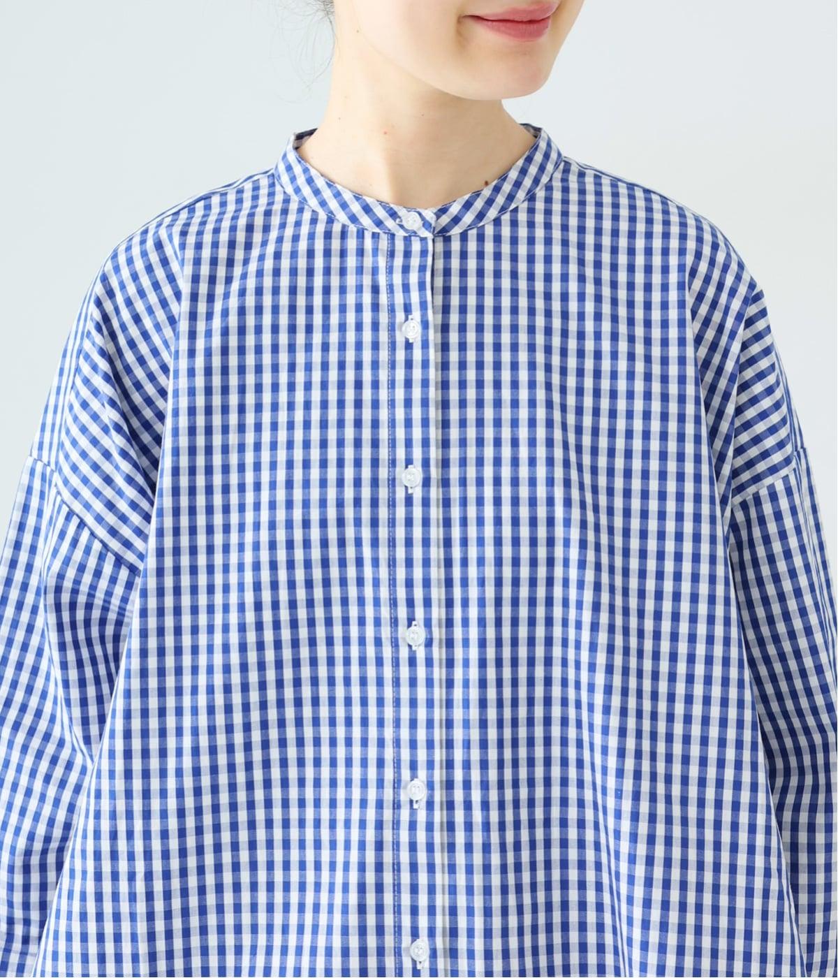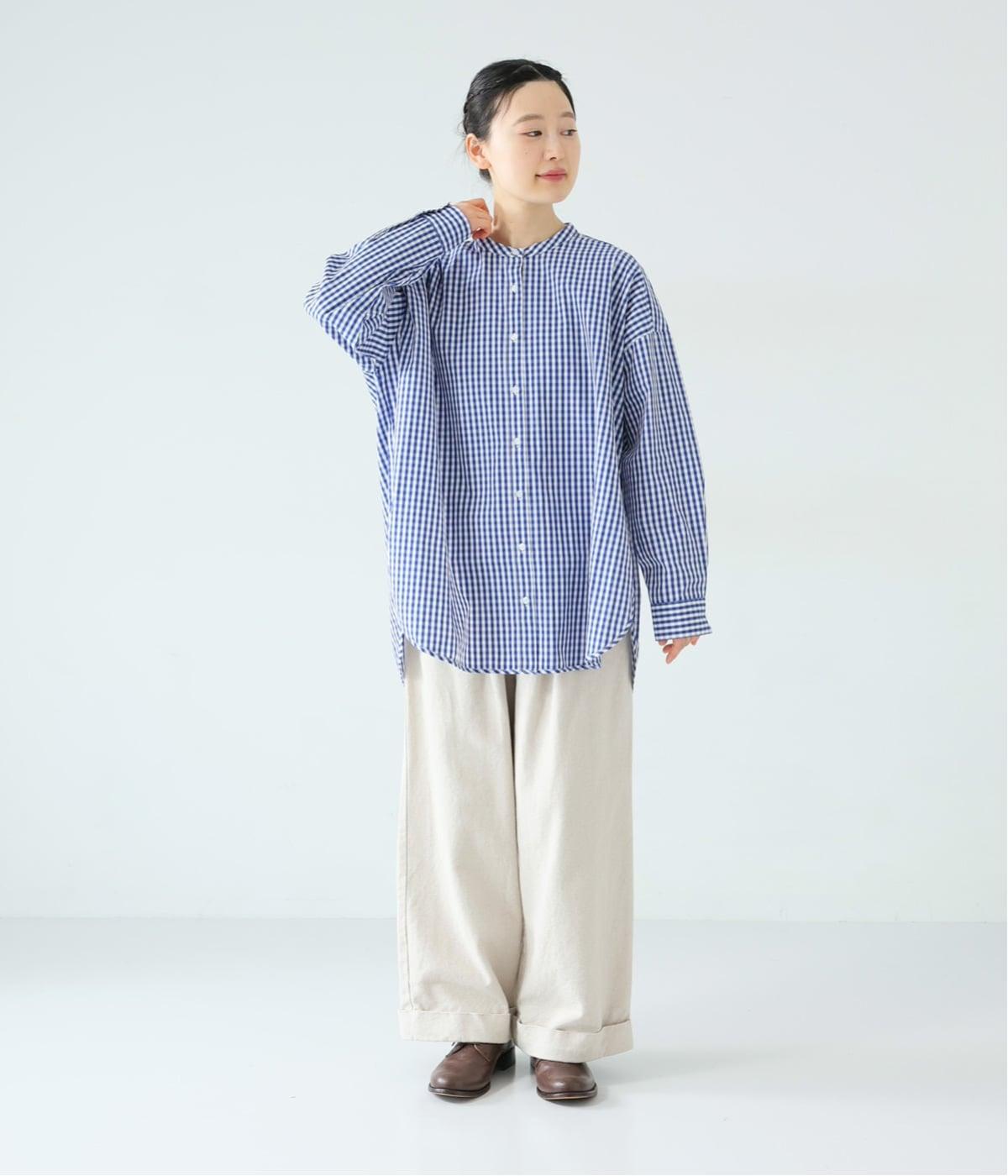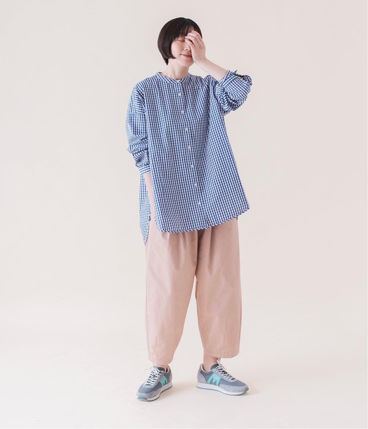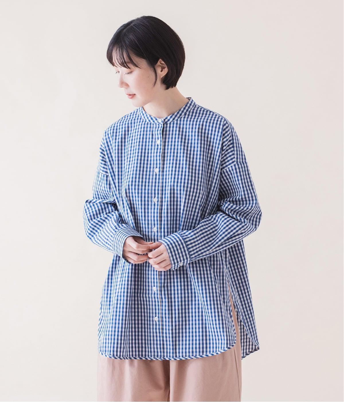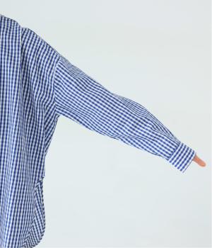 ちょっぴりマニッシュな雰囲気のブルーギンガムのビッグシャツ。