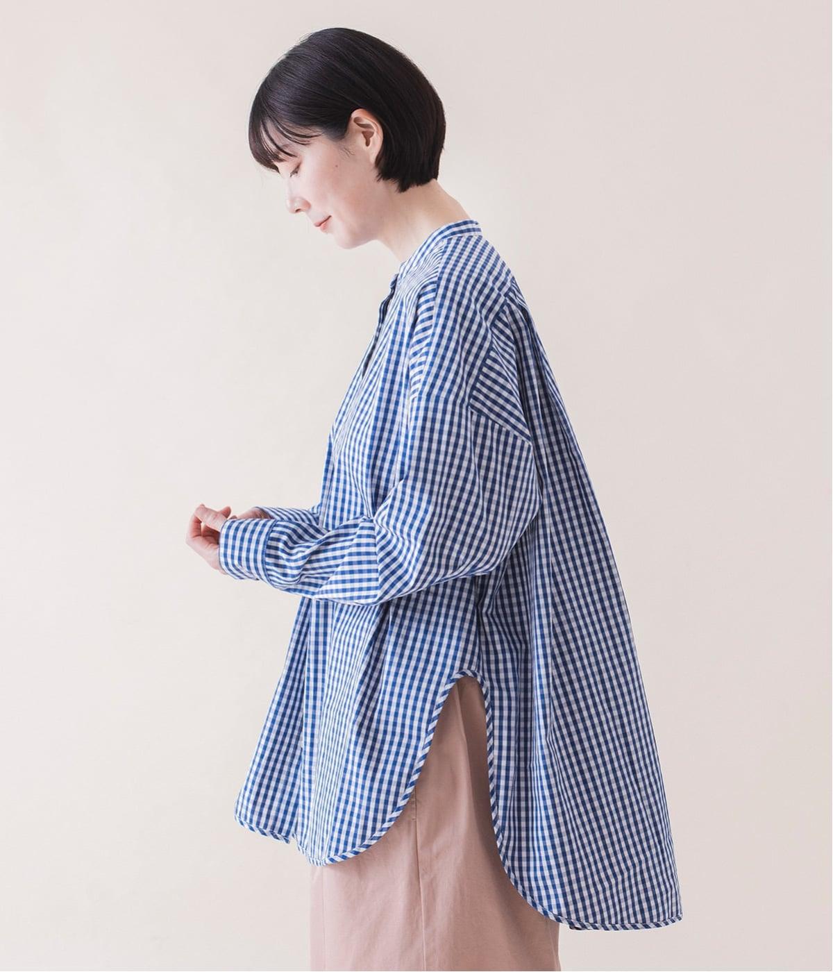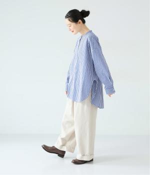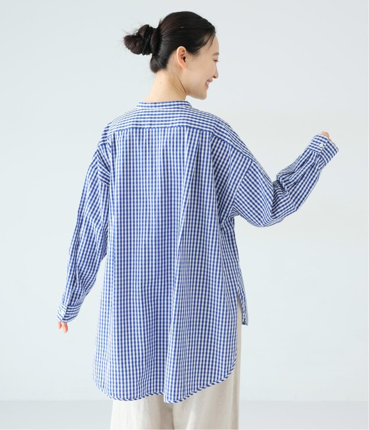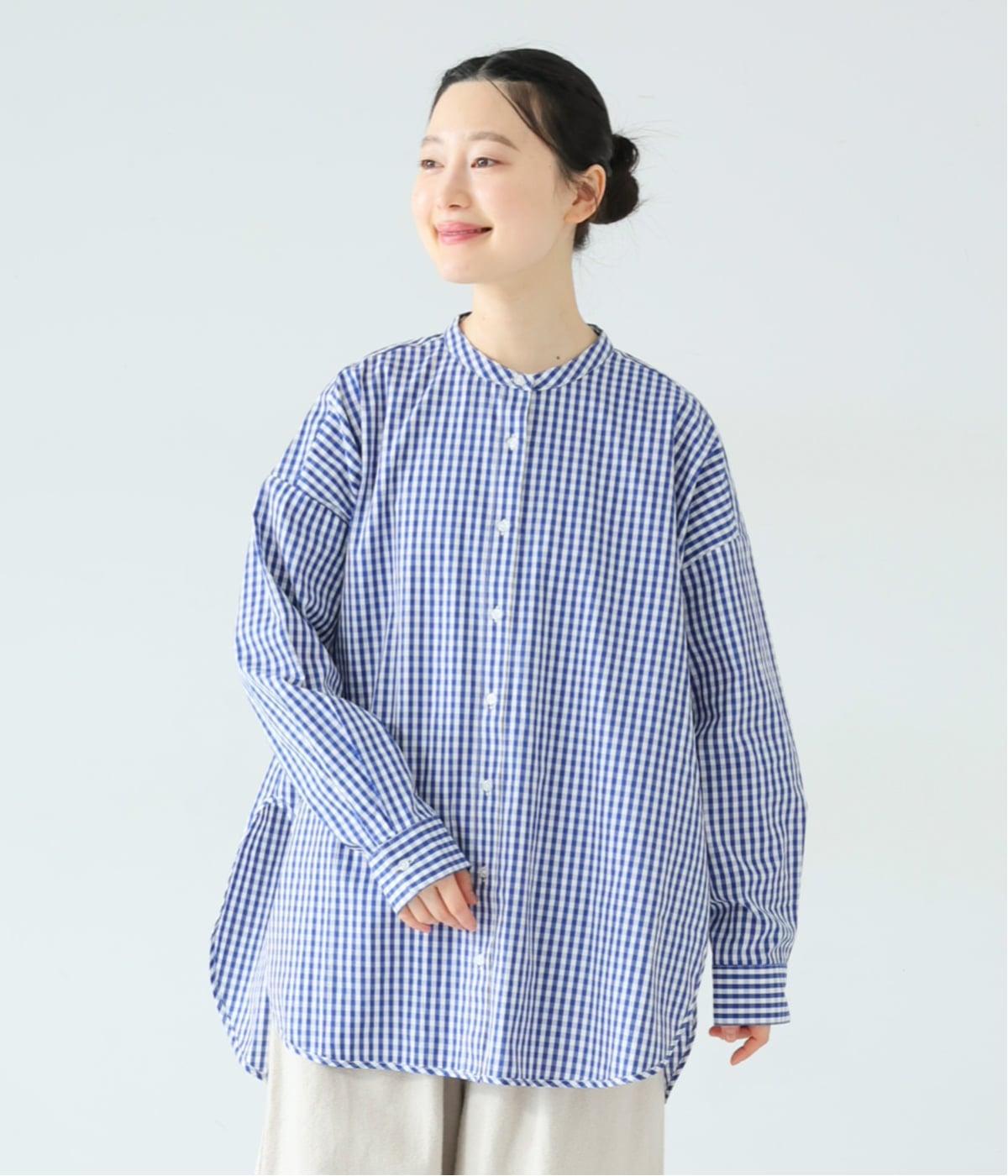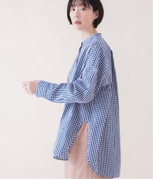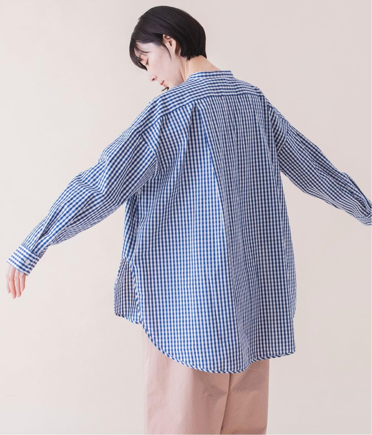 ちょっぴりマニッシュな雰囲気のブルーギンガムのビッグシャツ。