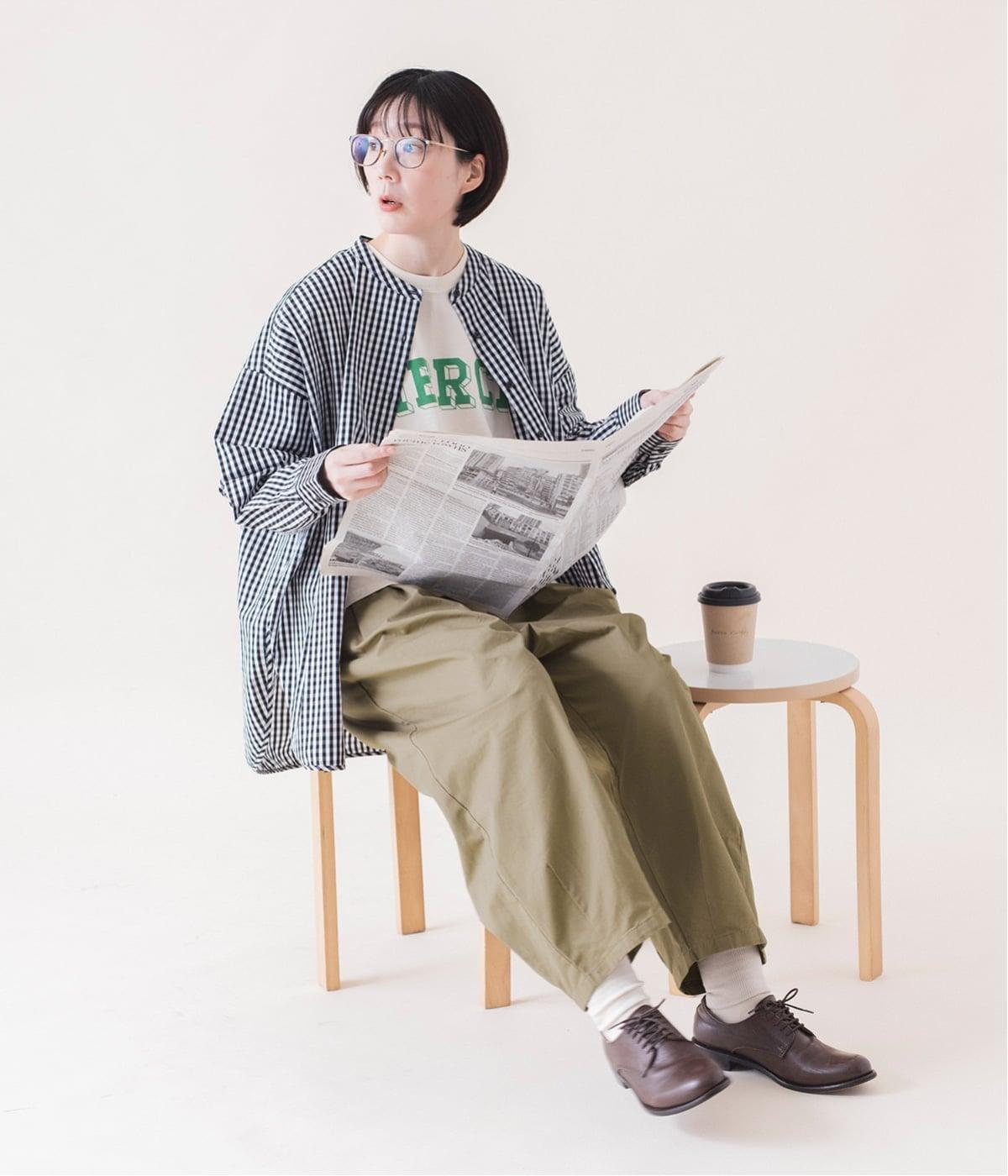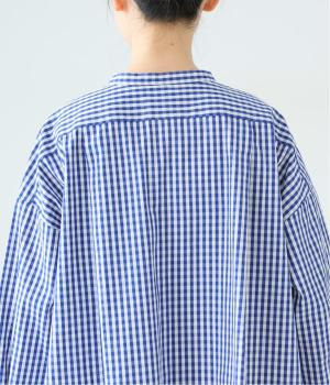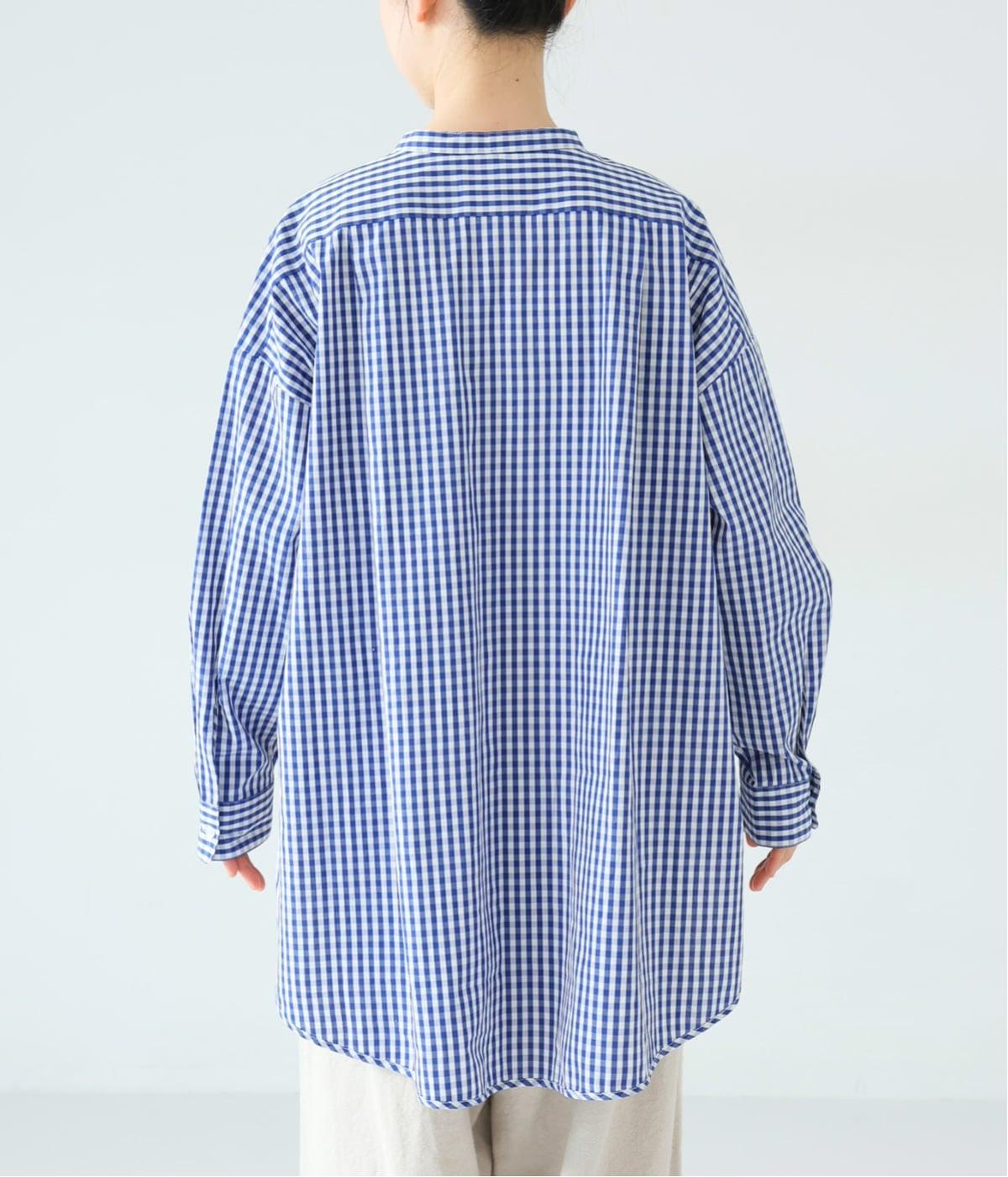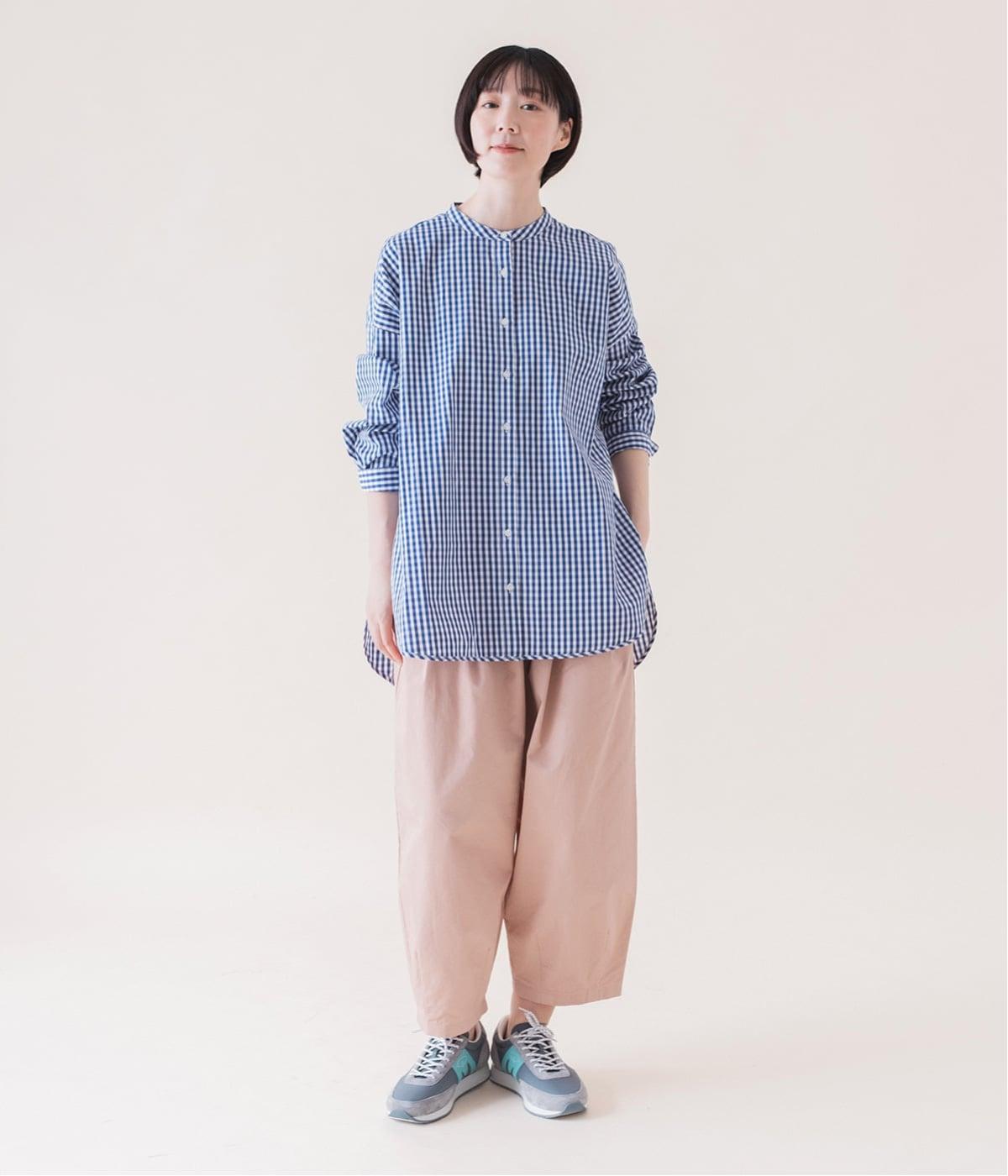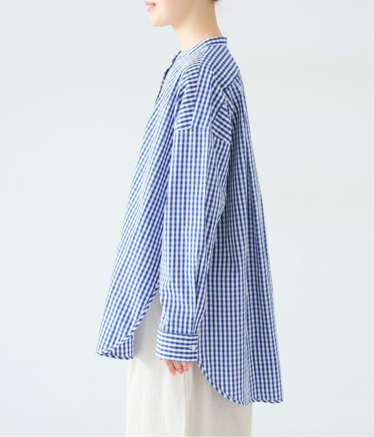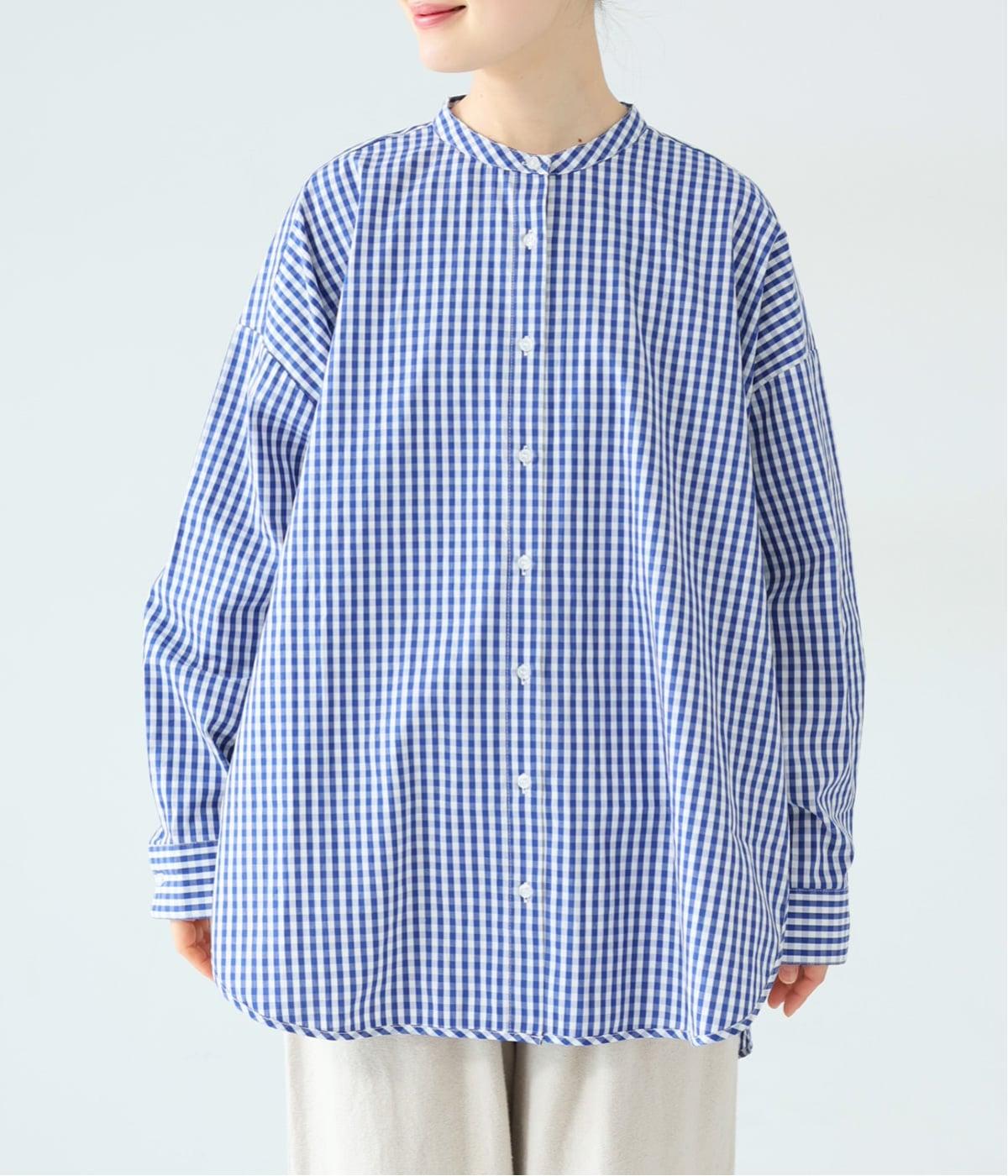 ちょっぴりマニッシュな雰囲気のブルーギンガムのビッグシャツ。