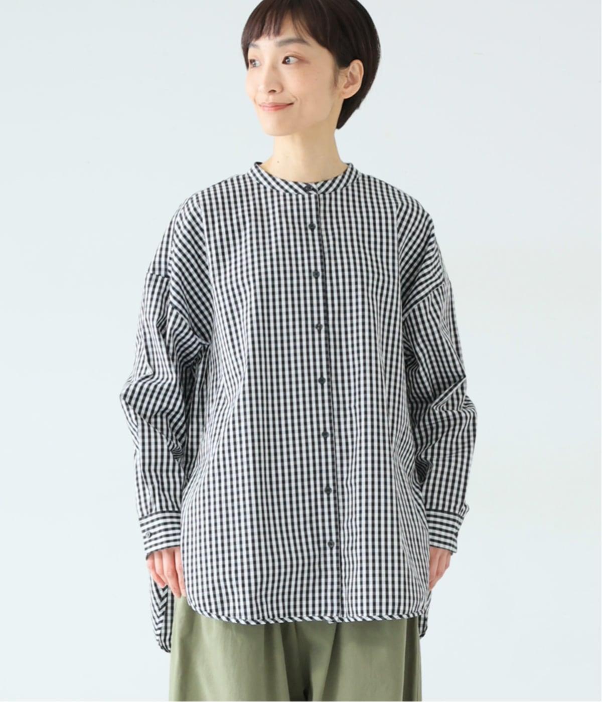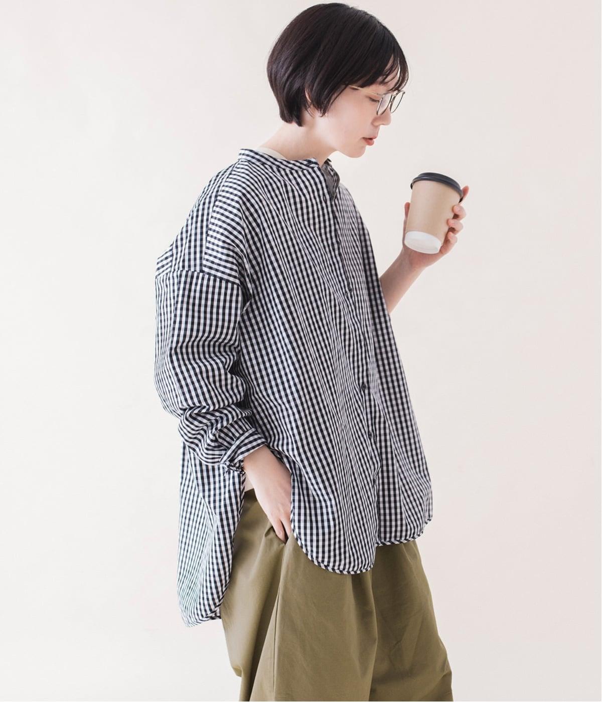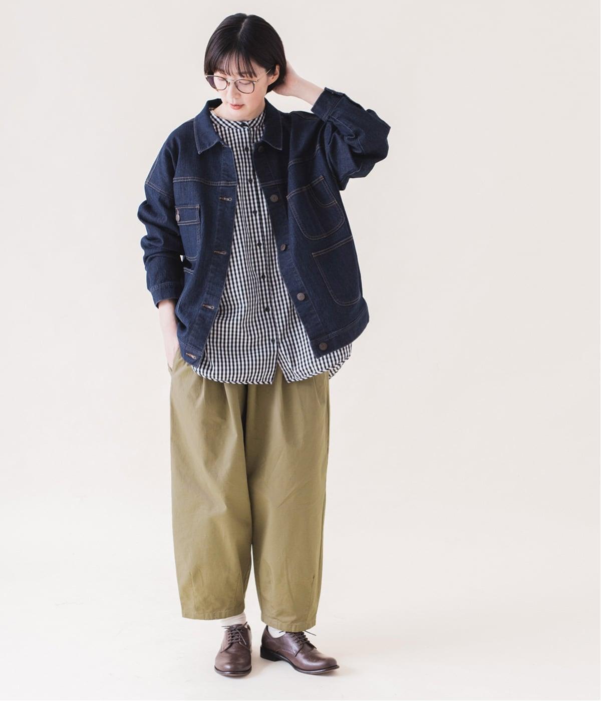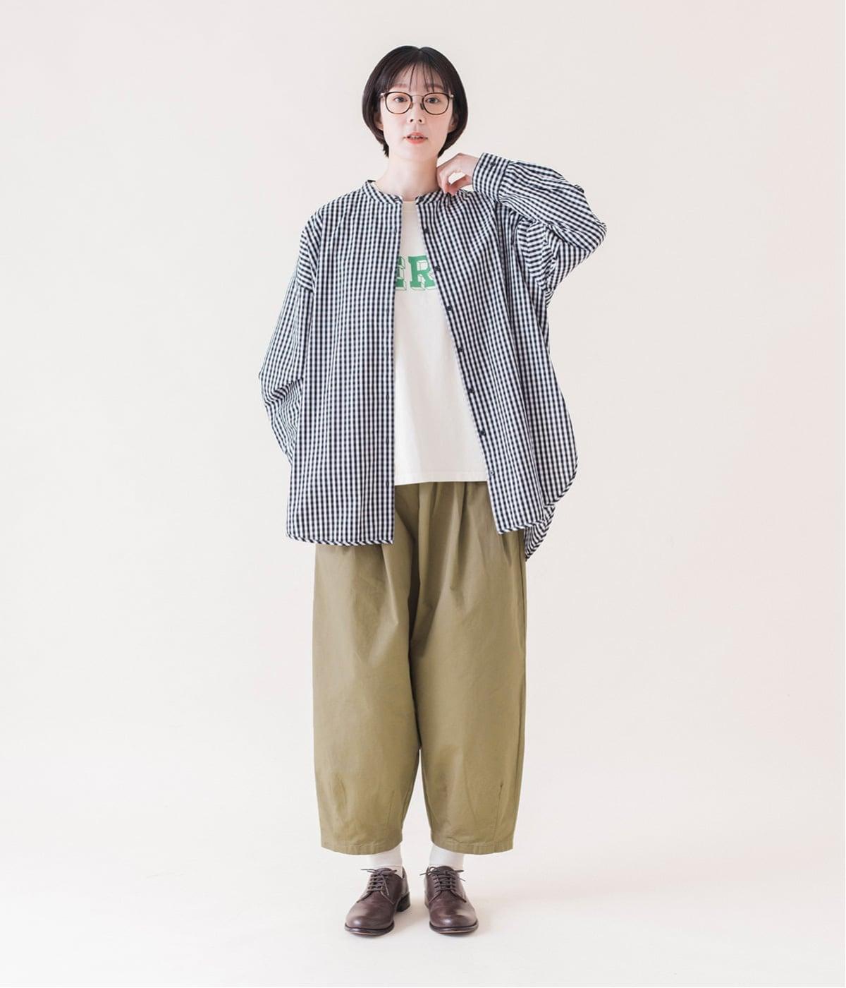 ちょっぴりマニッシュな雰囲気のブルーギンガムのビッグシャツ。