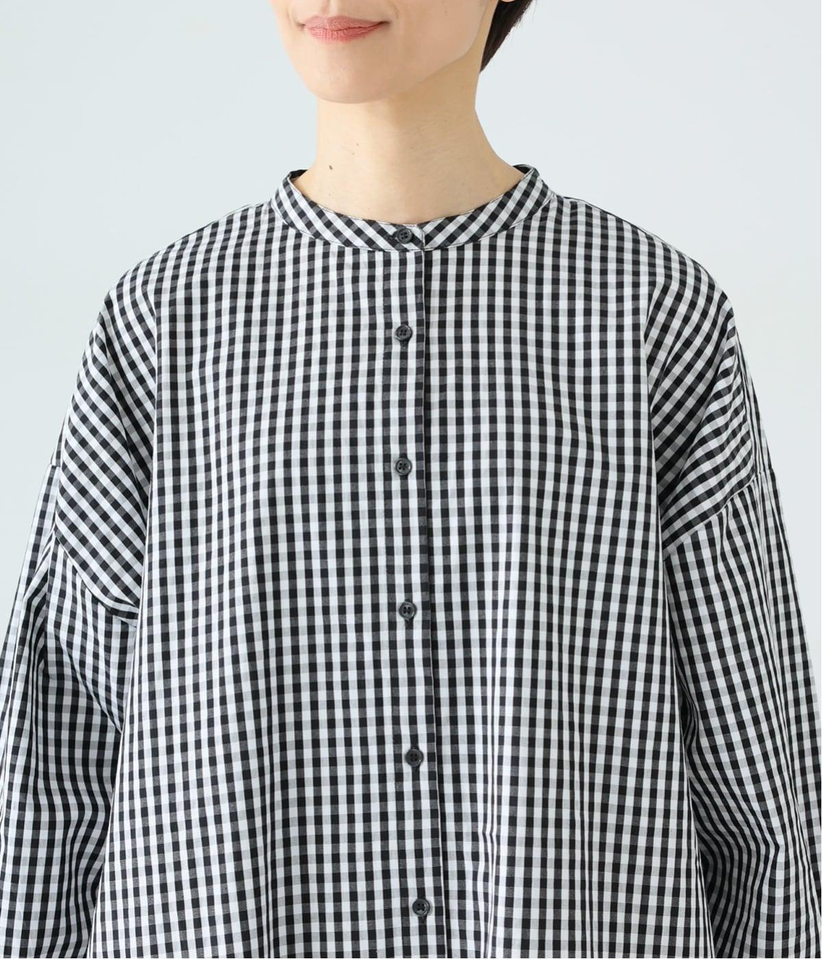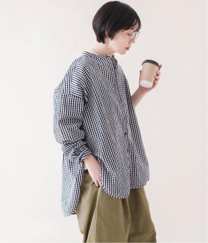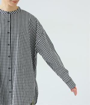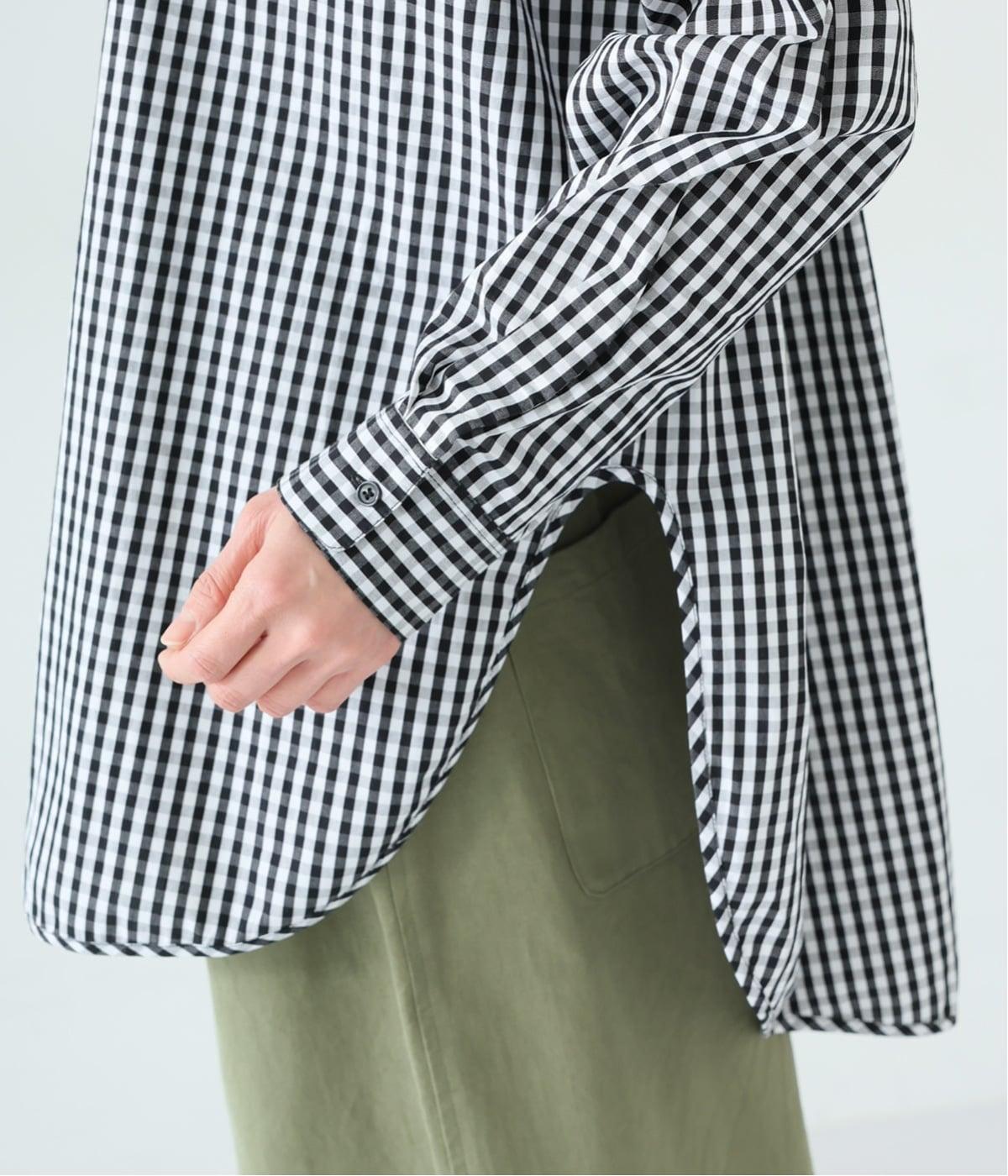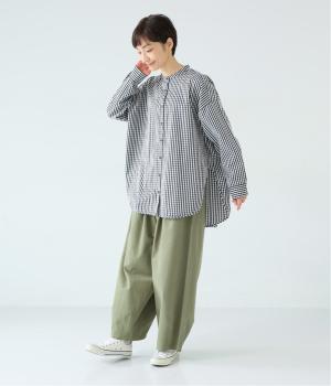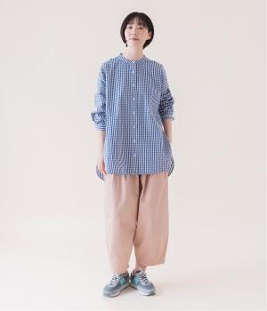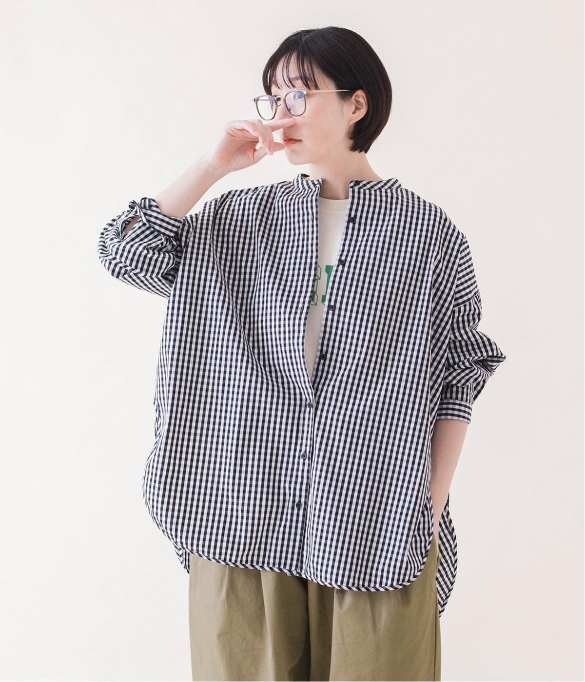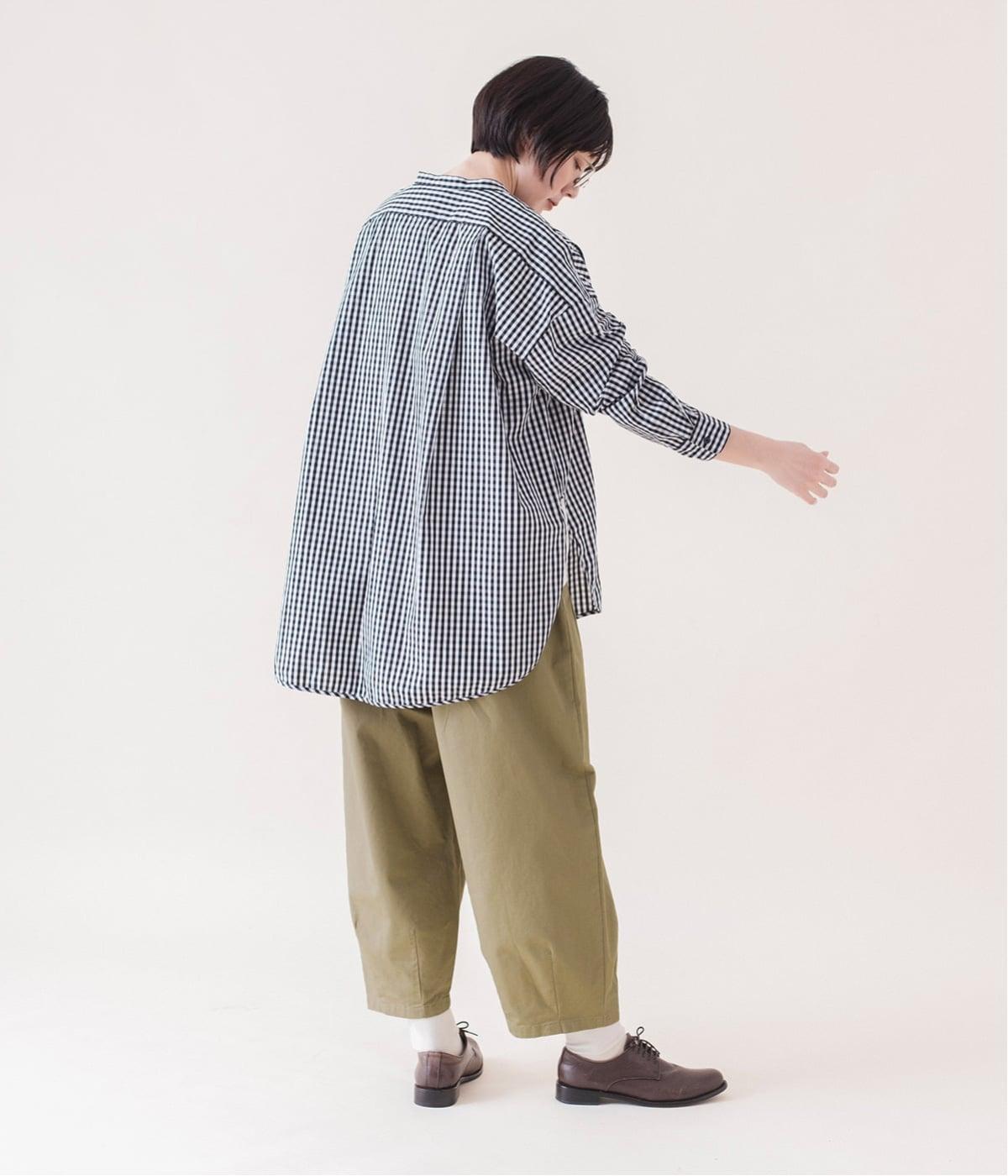 ちょっぴりマニッシュな雰囲気のブルーギンガムのビッグシャツ。