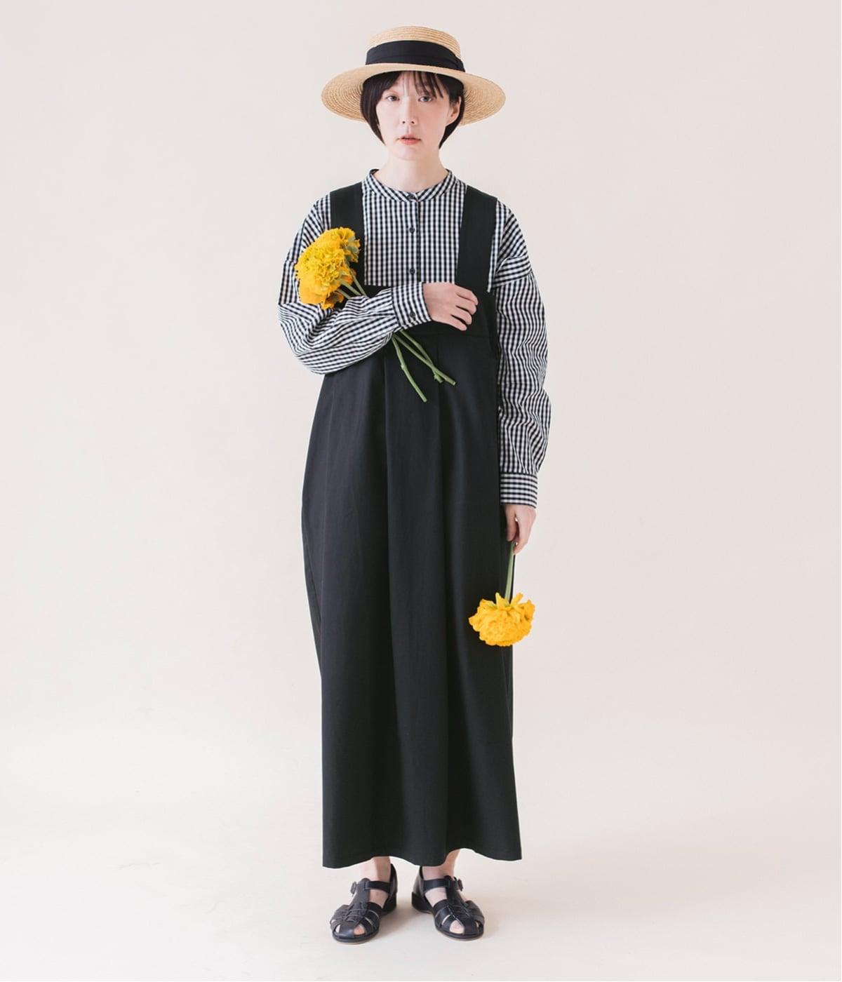 ジャンパースカートもカジュアルになりすぎず、上品なナチュラルスタイルに。