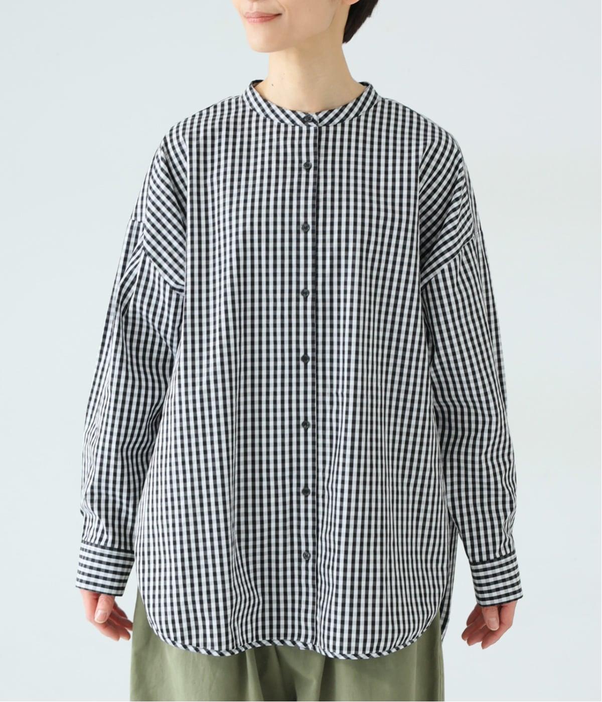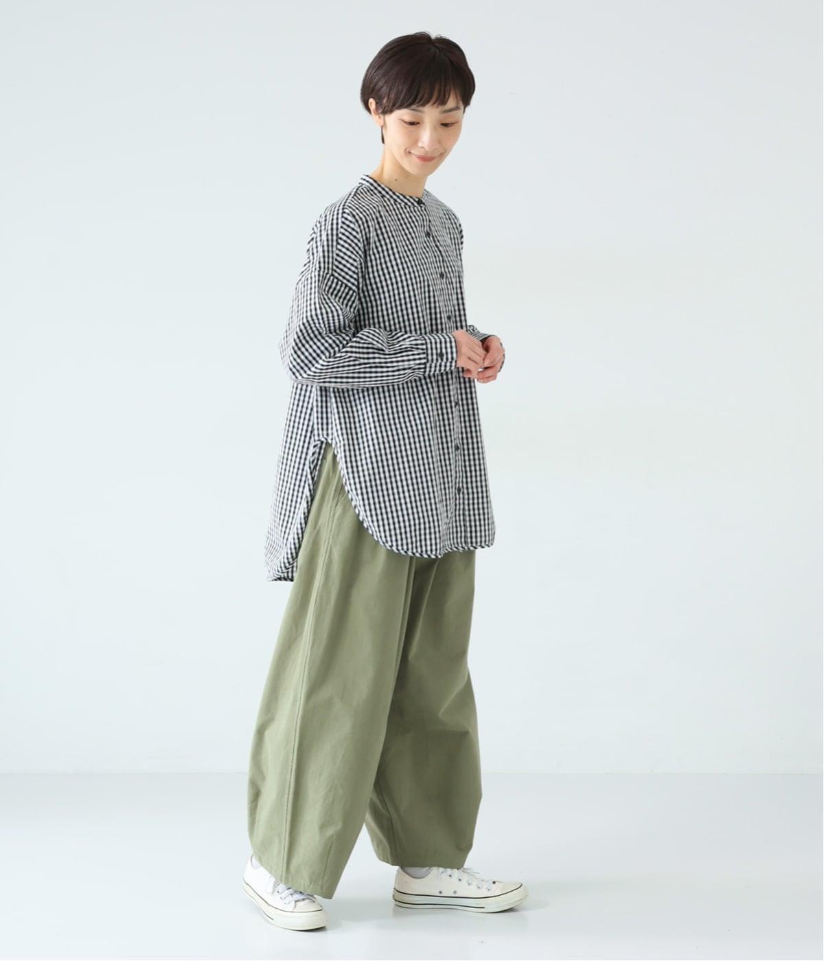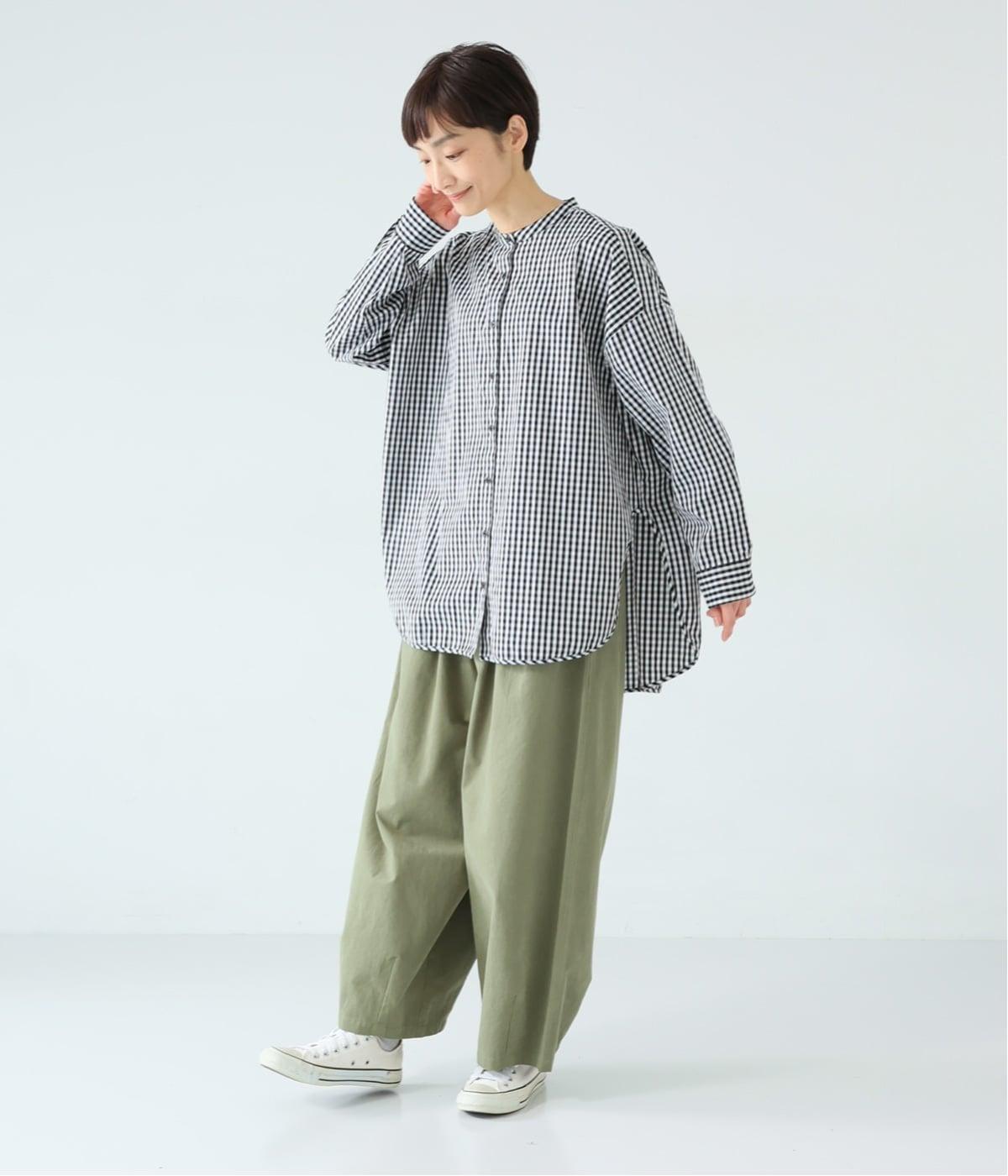 さっと羽織るだけで、こなれて見えるオーバーサイズに、バンドカラーできちんと感をプラス。