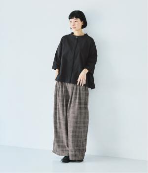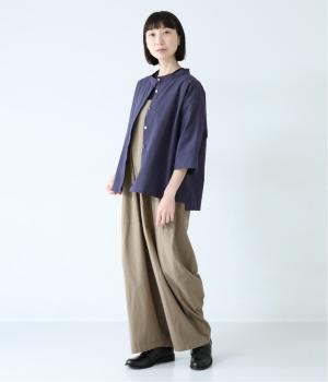 スタンドカラーは高さを控えめに設計し、首まわりをすっきり見せる工夫を。袖は先に向かってやや広がるシルエットで、自然に腕を細く華奢に見せてくれます。