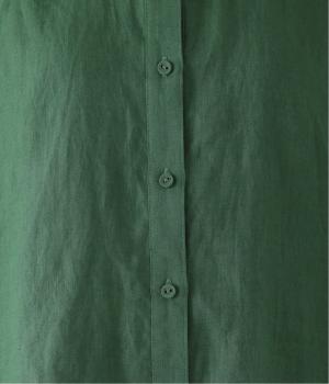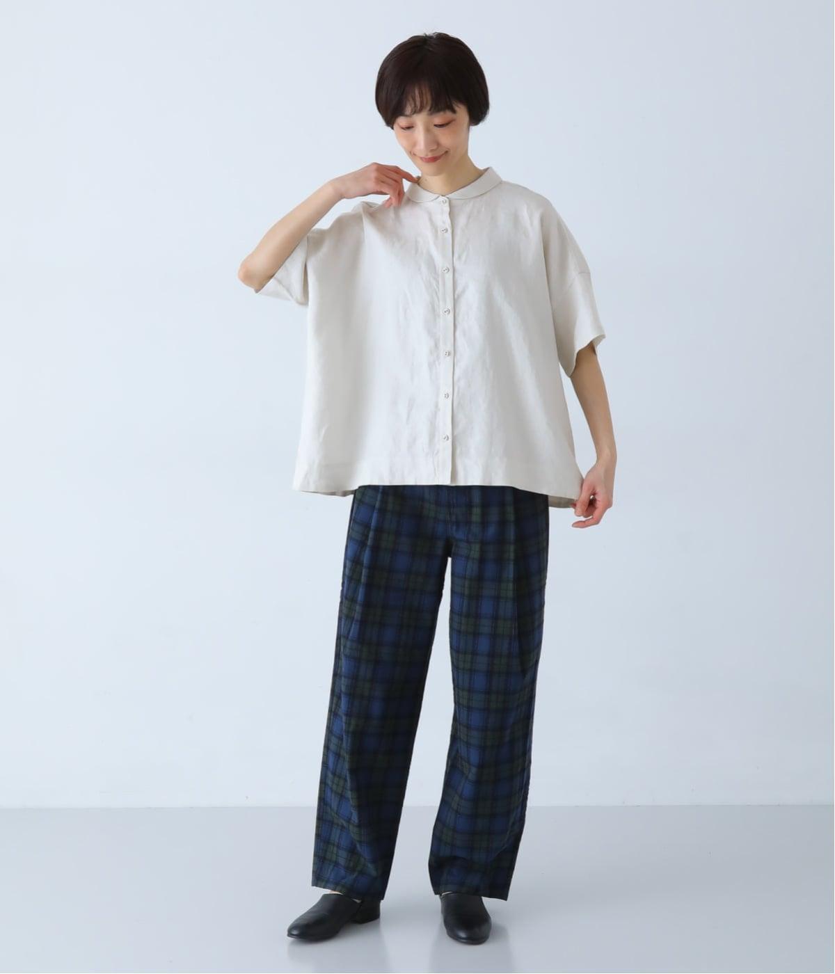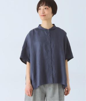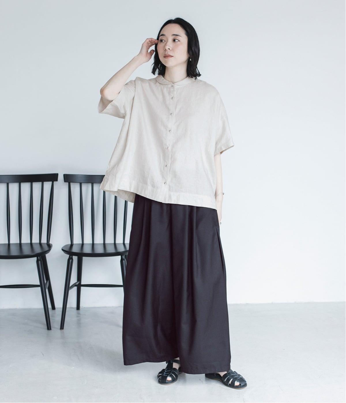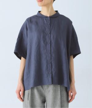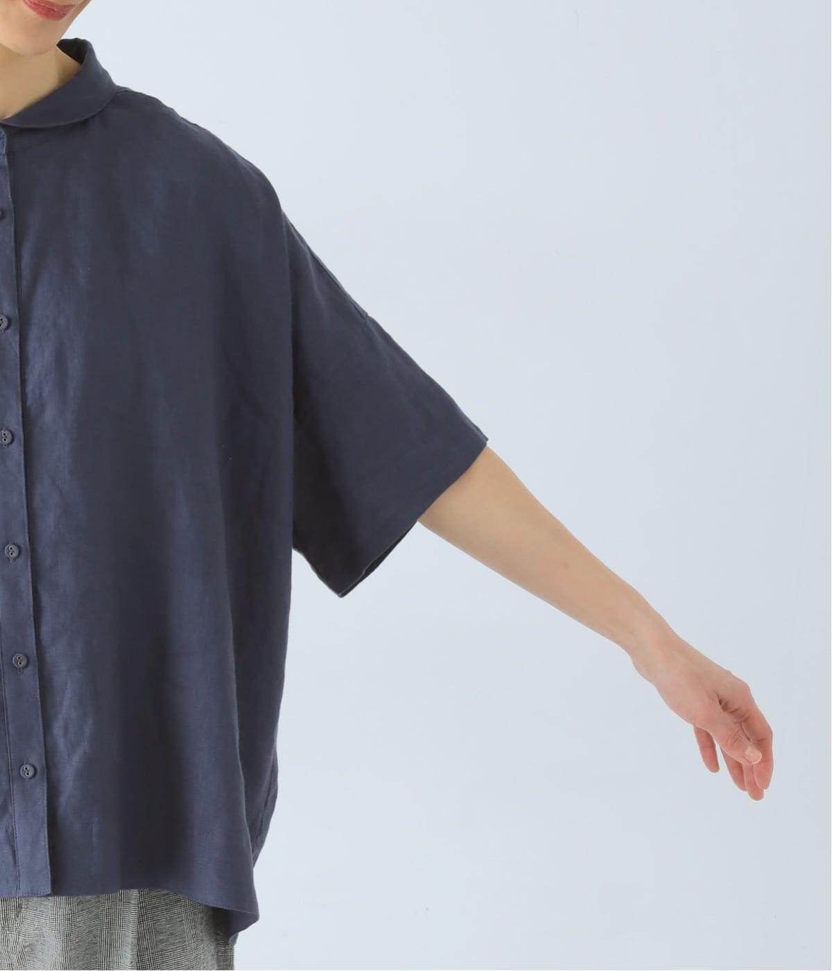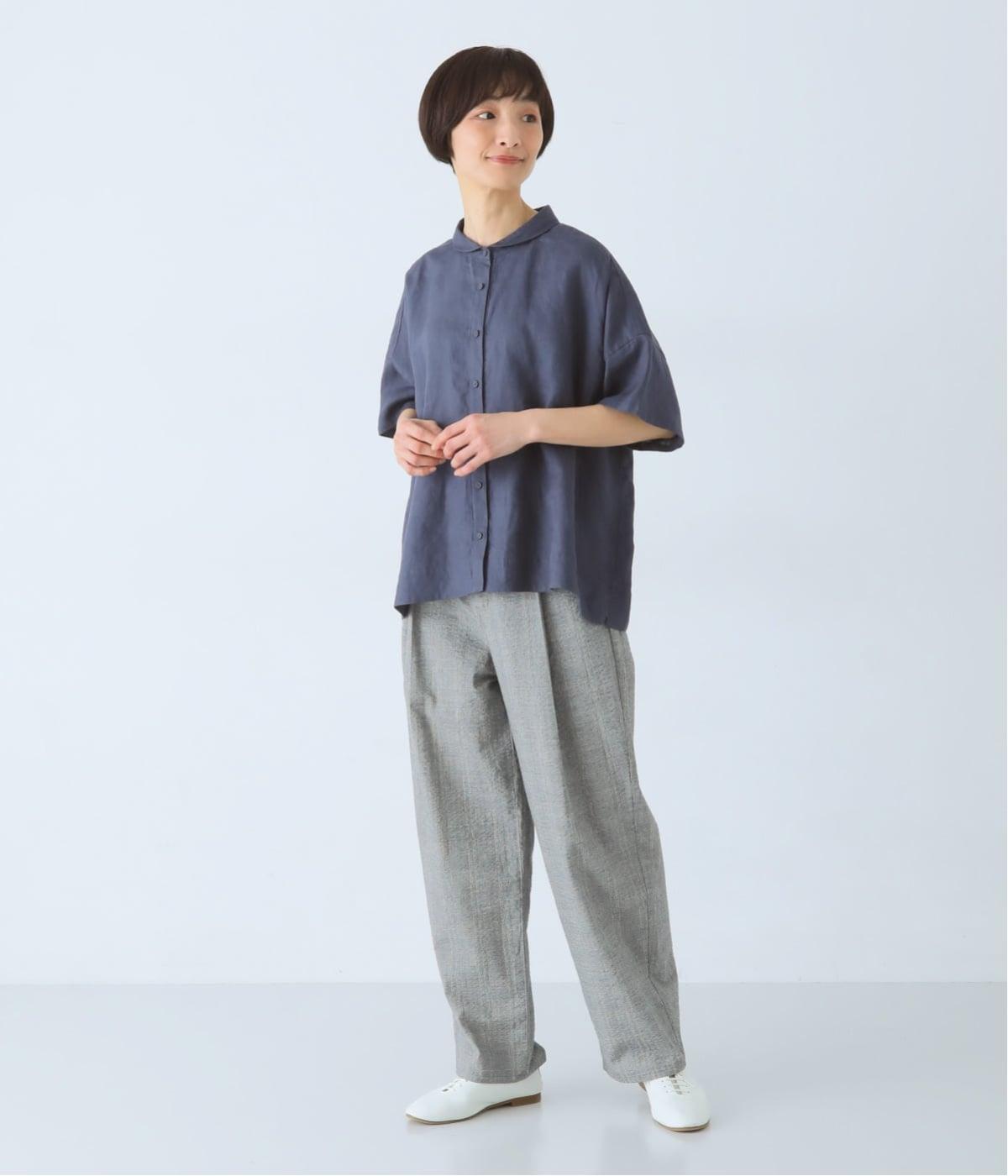 体のラインを拾いにくい、ゆったりとしたボックスシルエットのシャツ。小さな丸襟が女性らしさを添え、一枚でも羽織りとしてもバランスよく着こなせます。