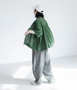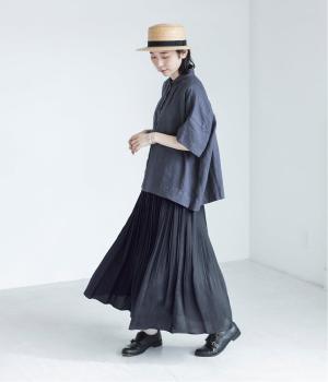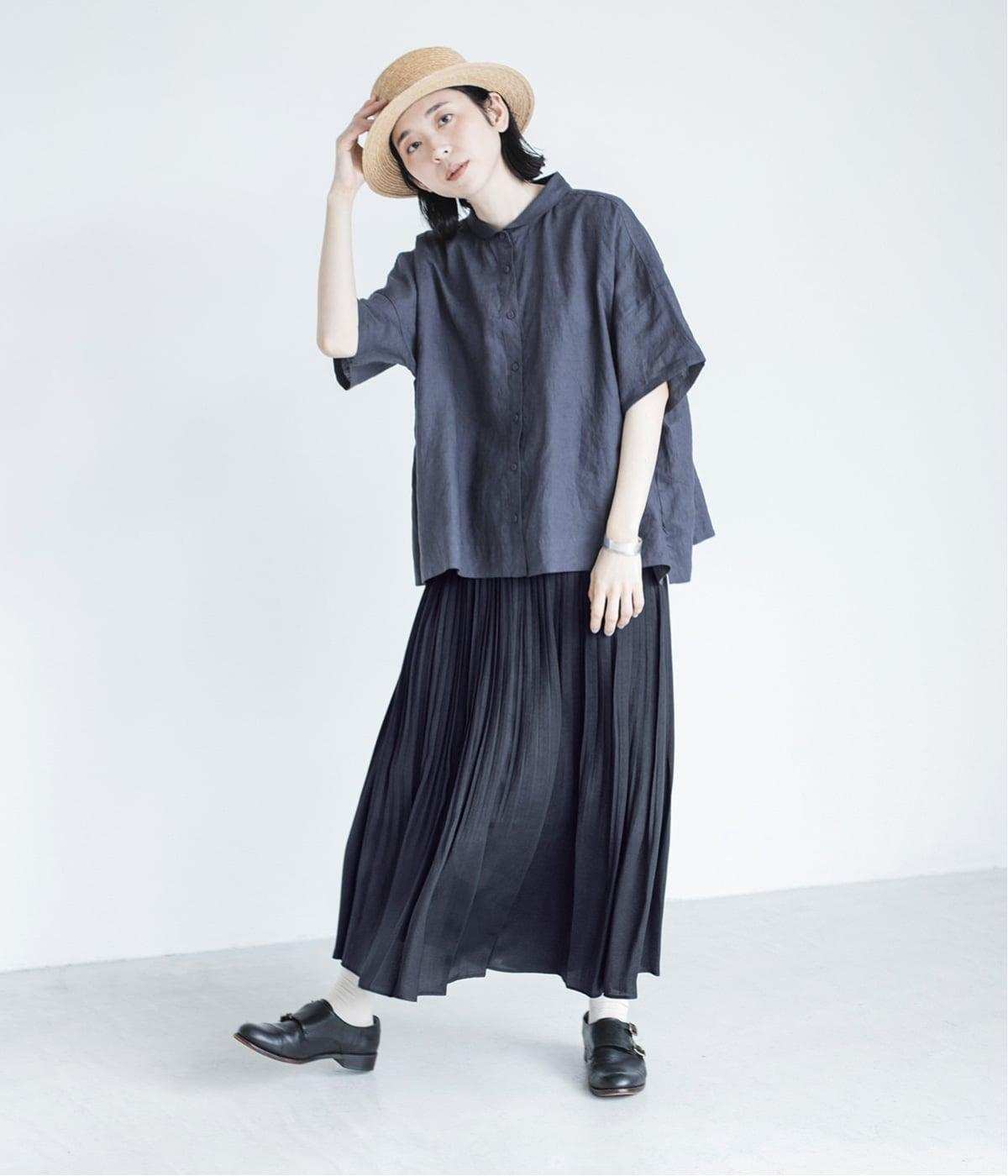 前を開けて羽織れば、風をまとったようなやわらかな動きが楽しめます。通気性に優れ、肌に張り付きにくいため、暑い時季にも快適に着られるシャツです。