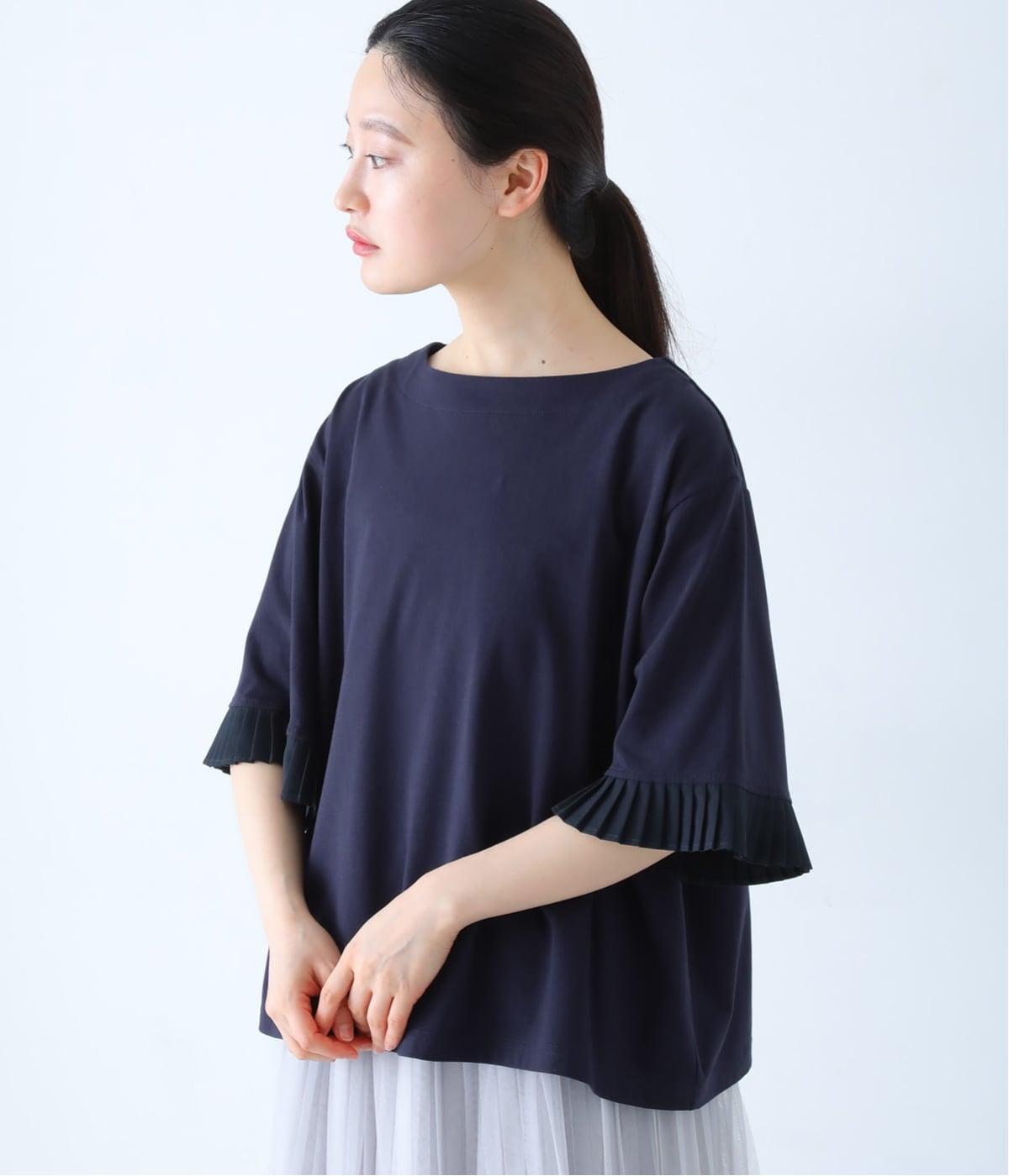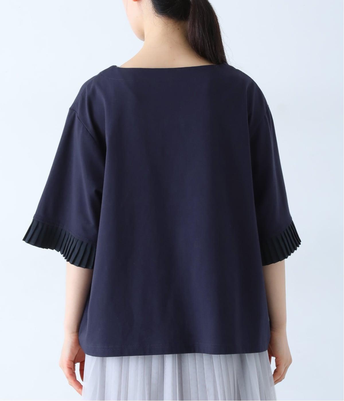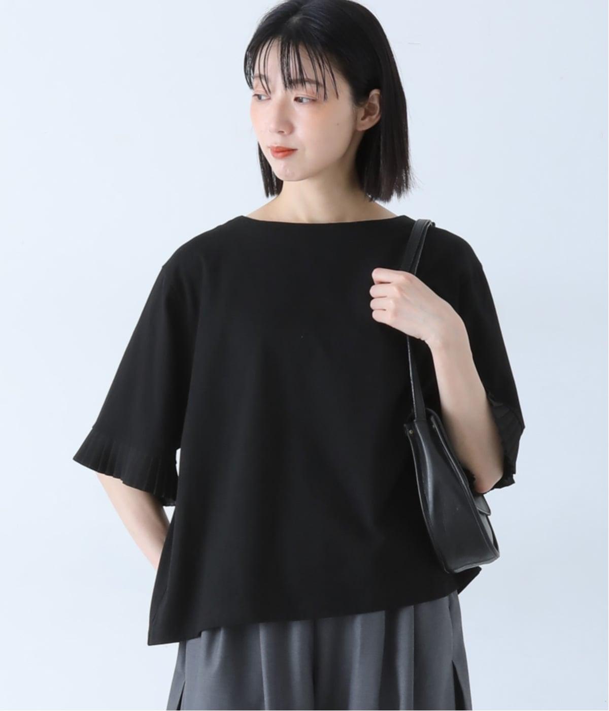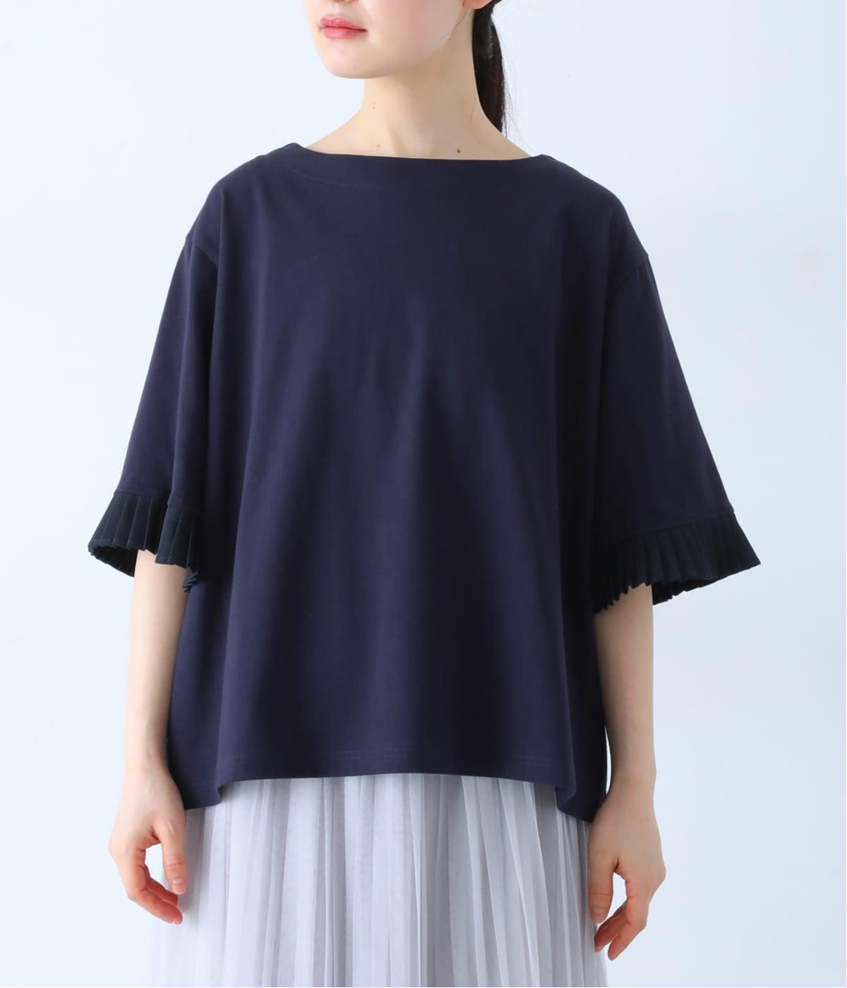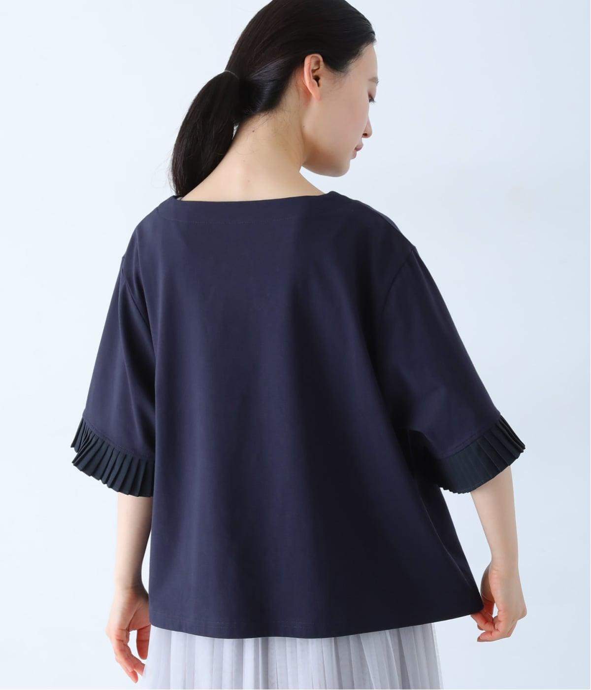 袖口のプリーツが引き立つように、首まわりはボートネックですっきり。Tシャツのカジュアルな印象がないのもポイントです。