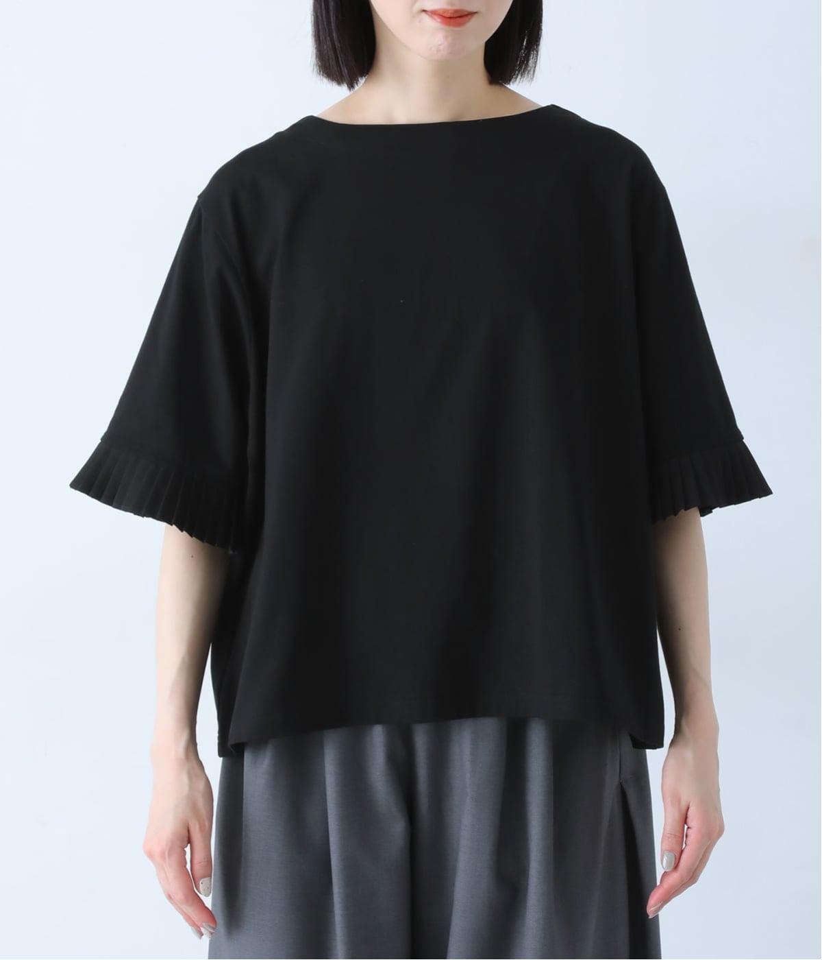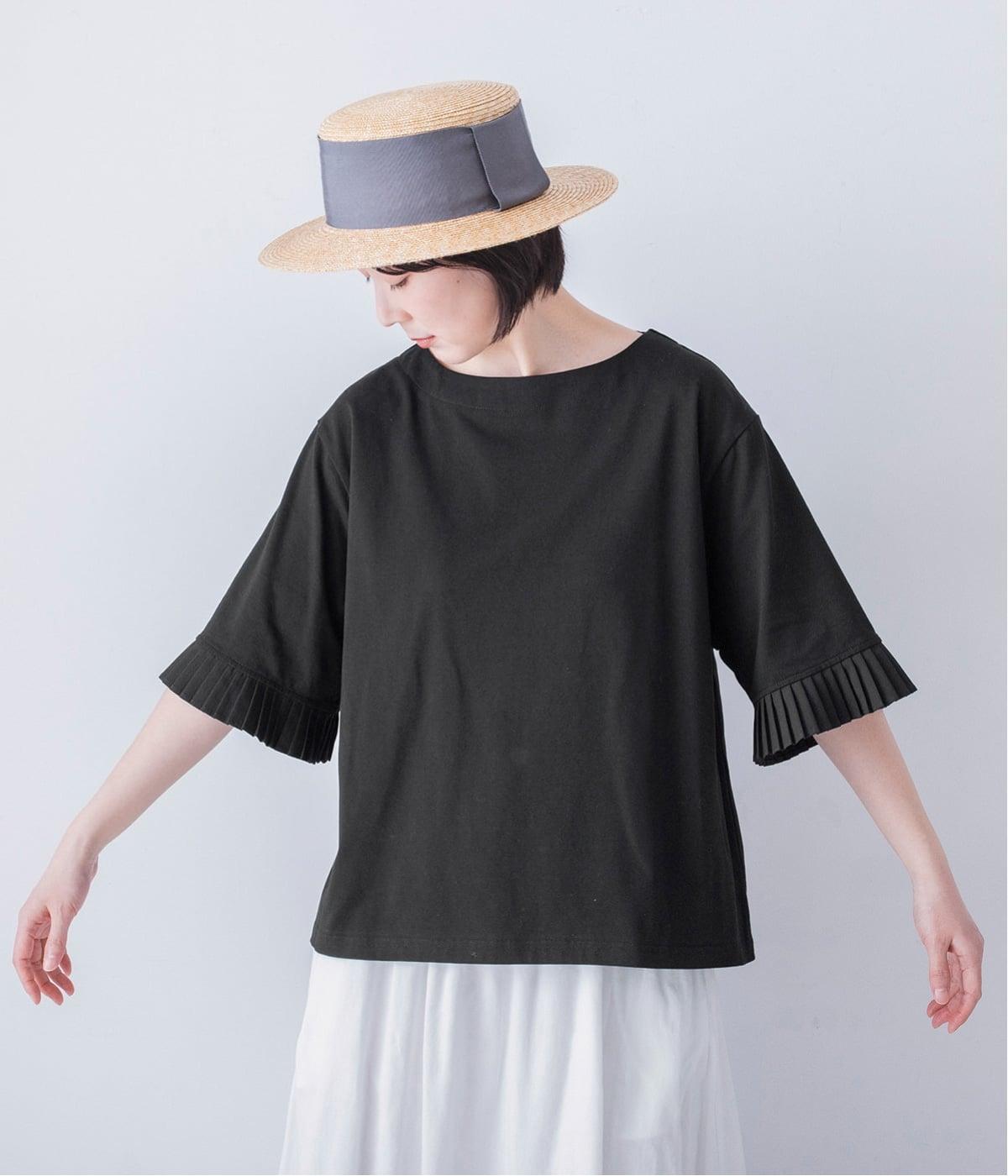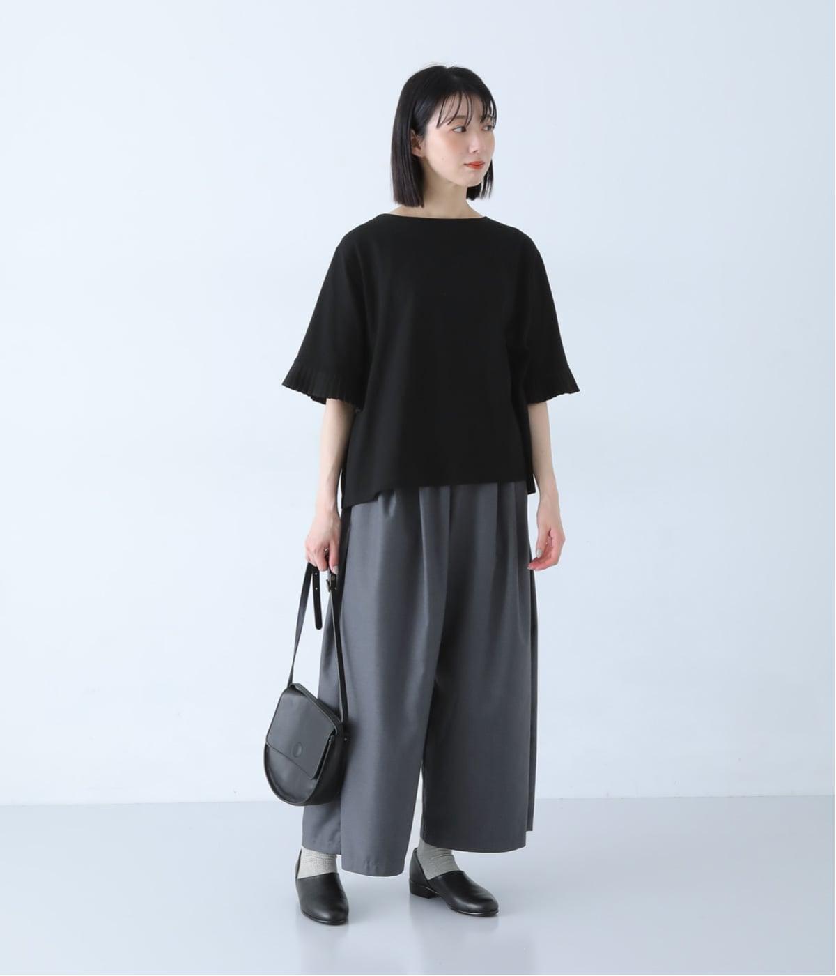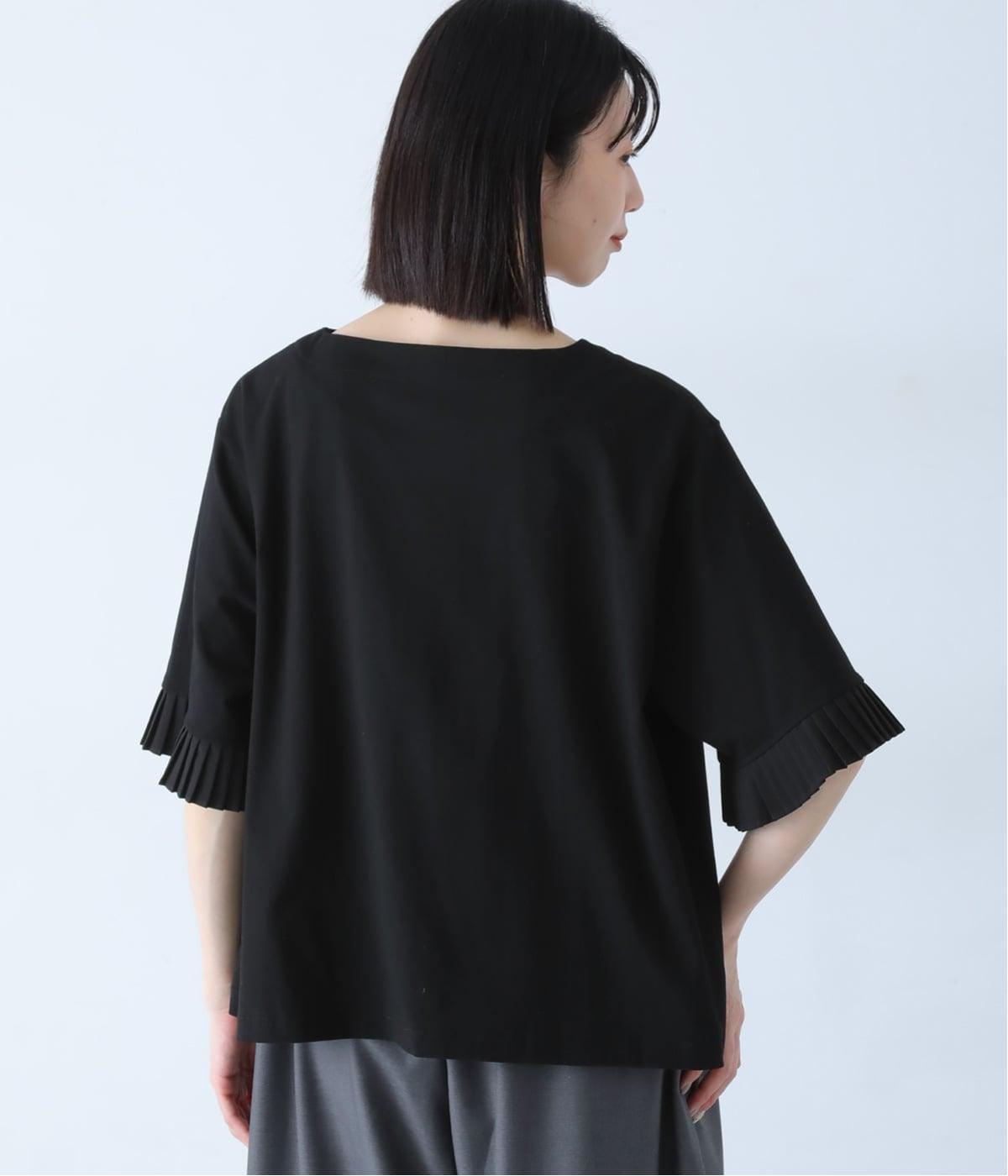 袖口のプリーツが引き立つように、首まわりはボートネックですっきり。Tシャツのカジュアルな印象がないのもポイントです。