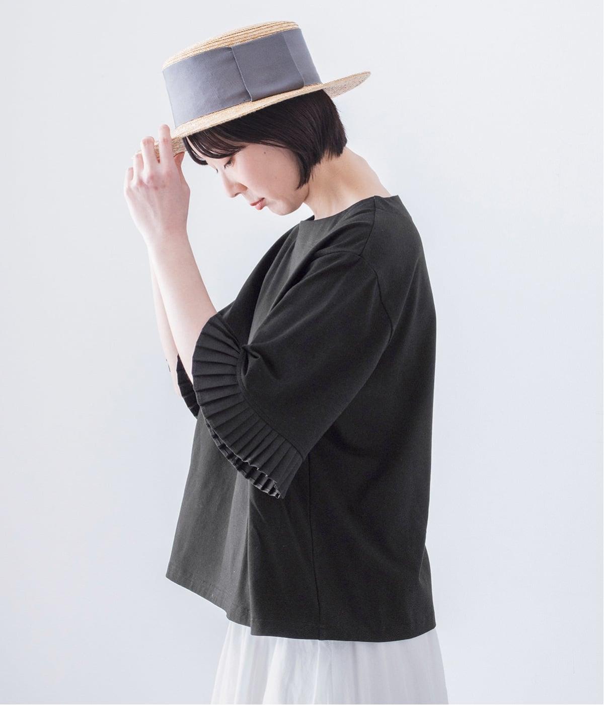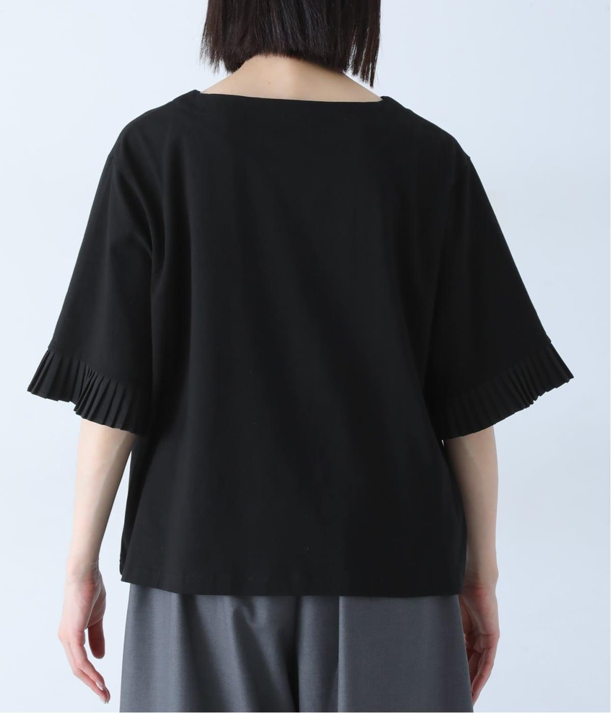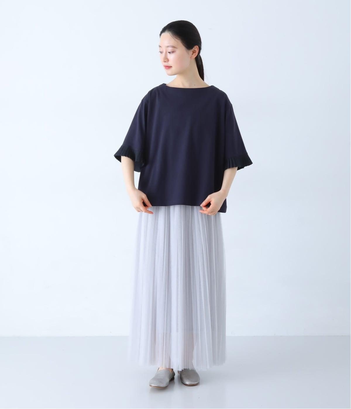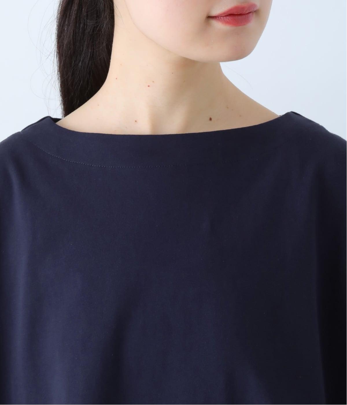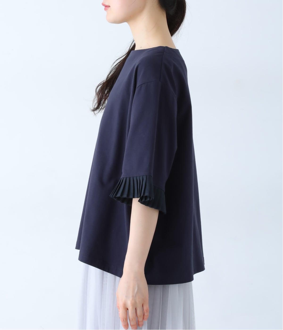 袖口のプリーツが引き立つように、首まわりはボートネックですっきり。Tシャツのカジュアルな印象がないのもポイントです。