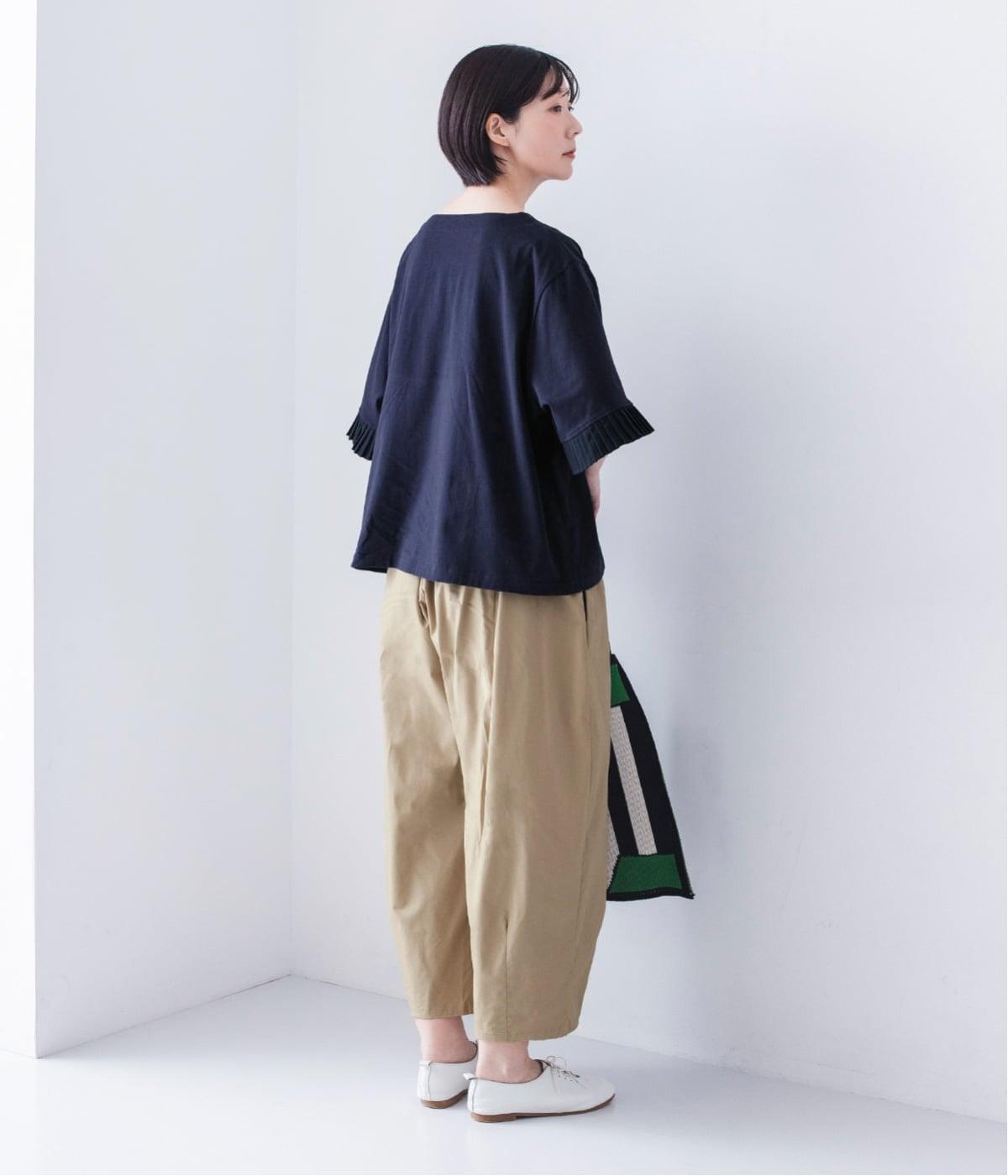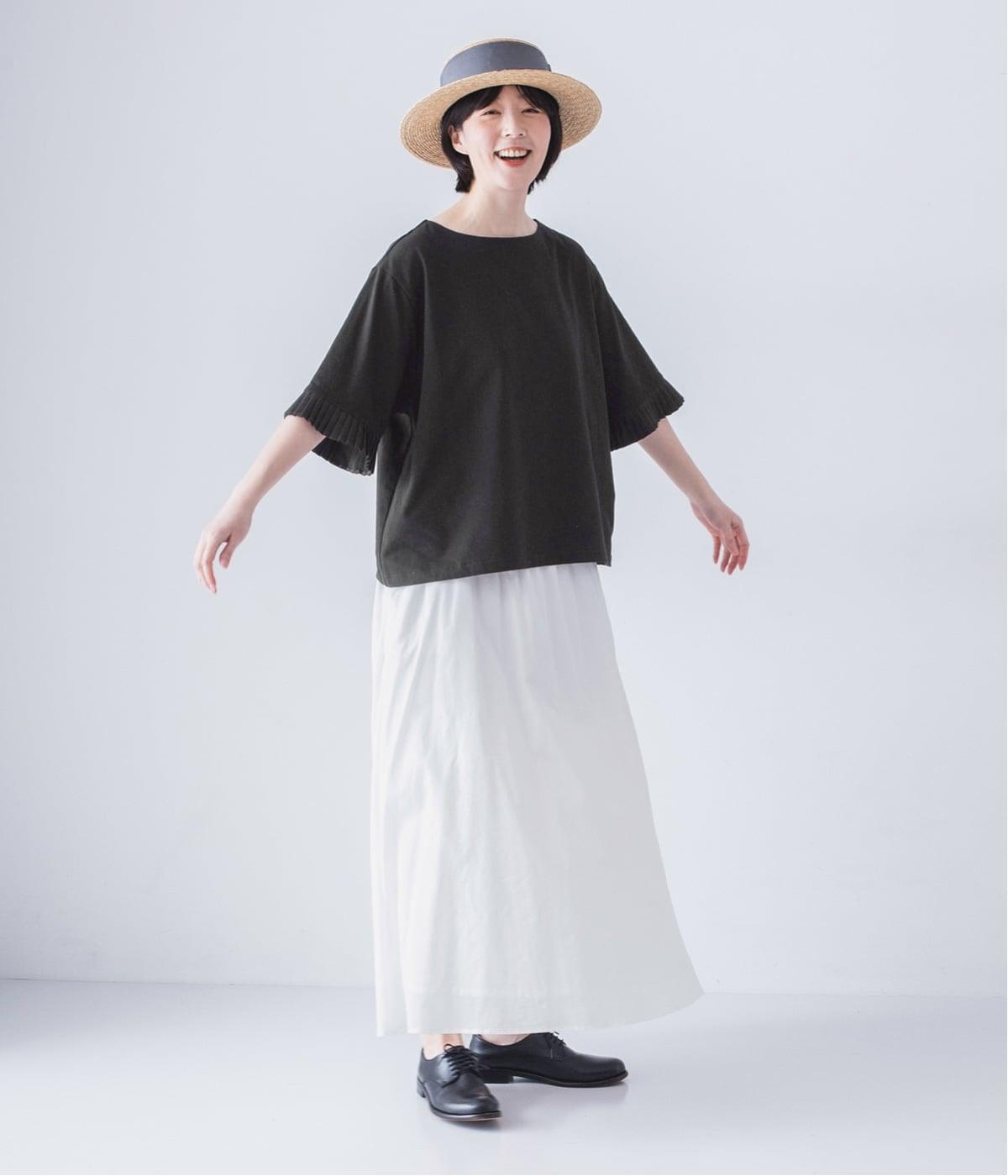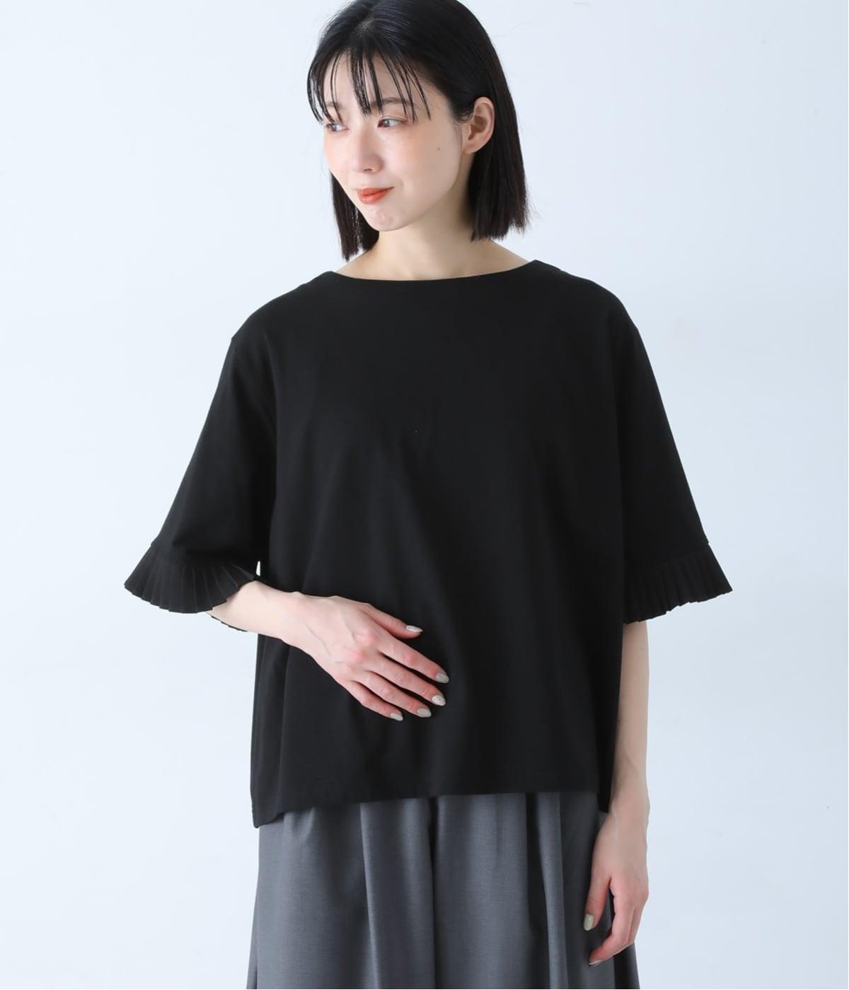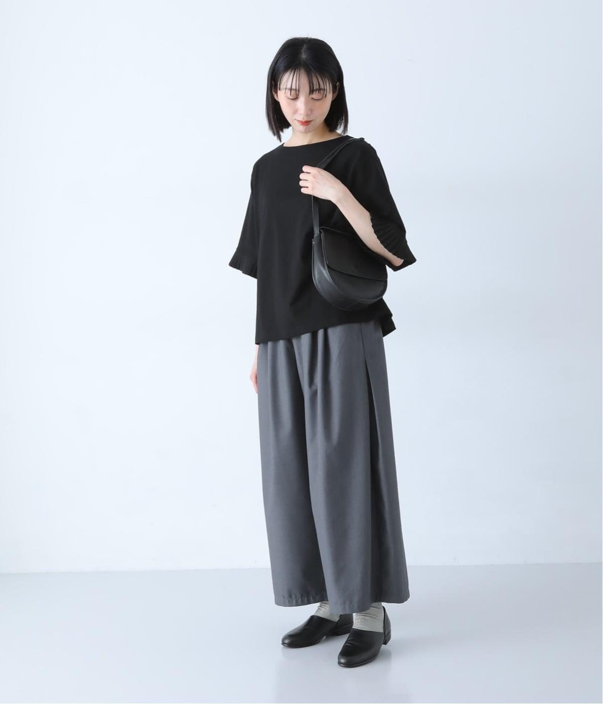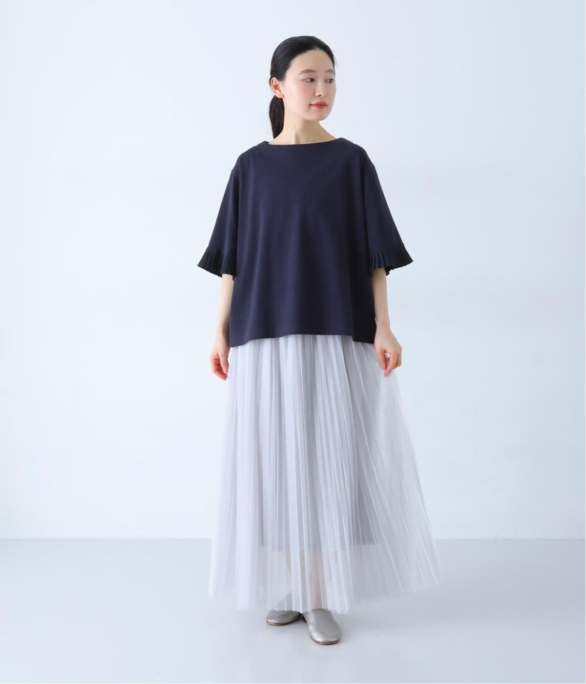 袖口のプリーツが引き立つように、首まわりはボートネックですっきり。Tシャツのカジュアルな印象がないのもポイントです。