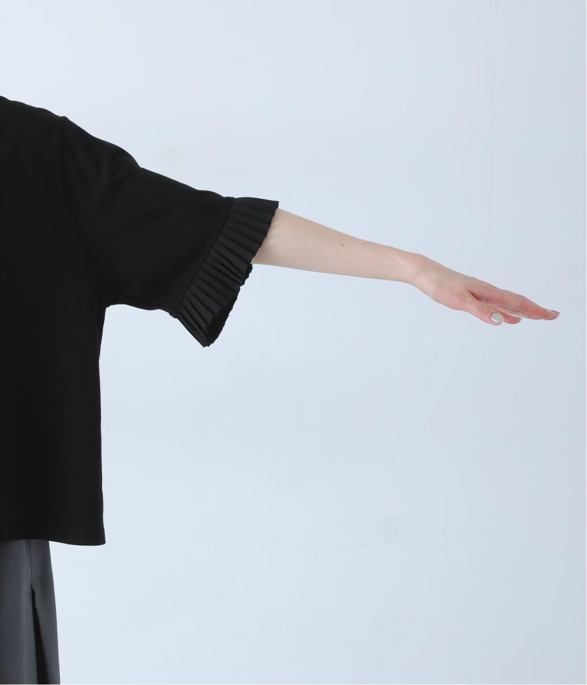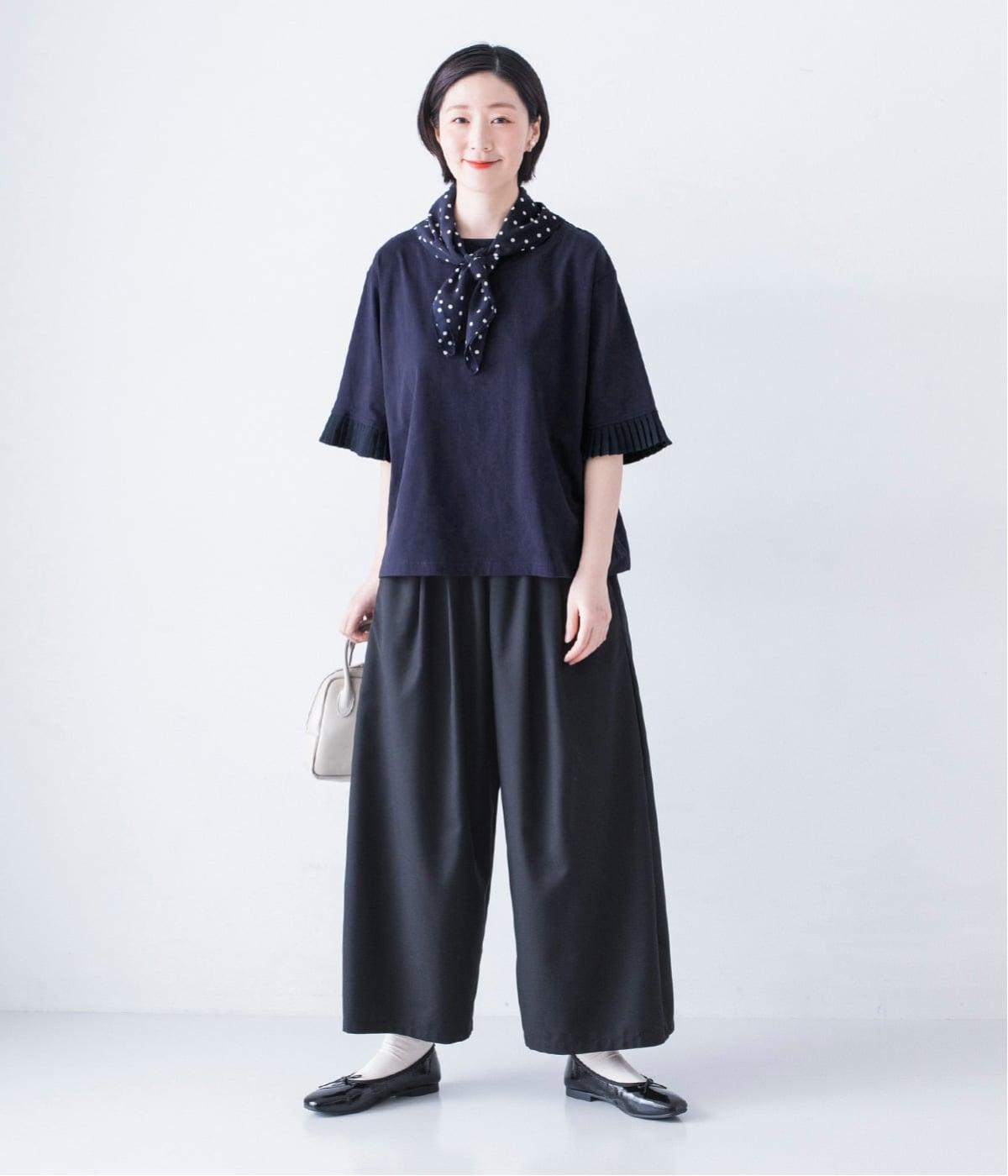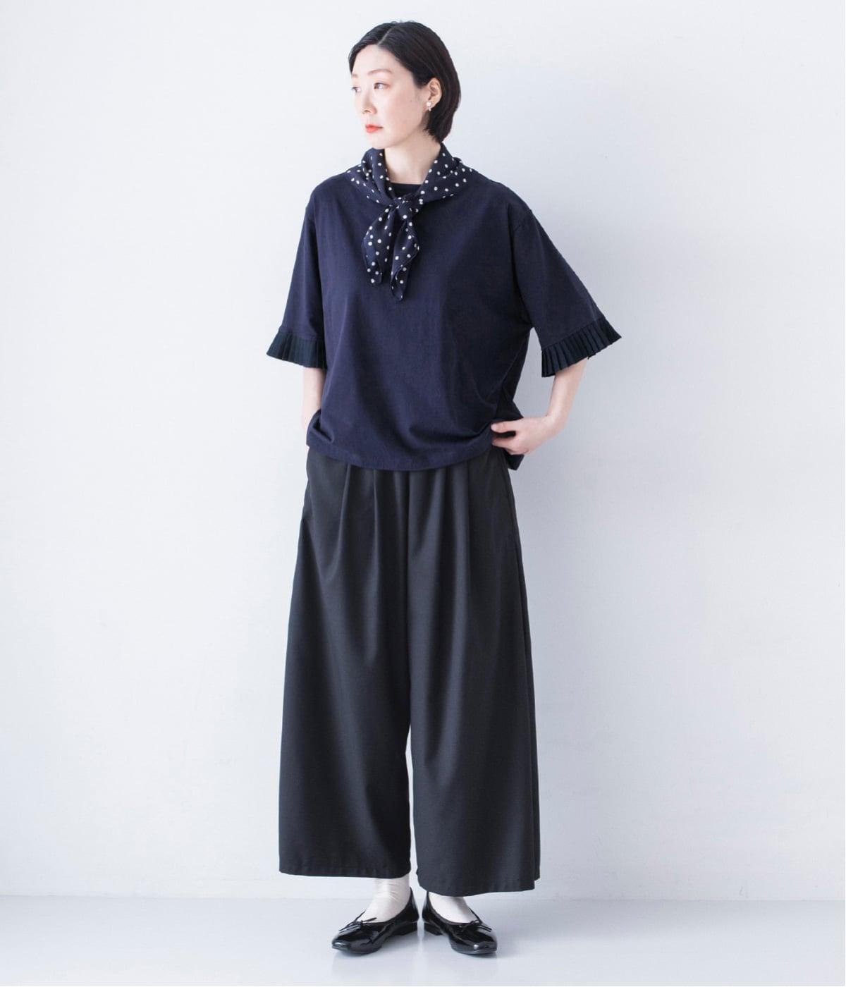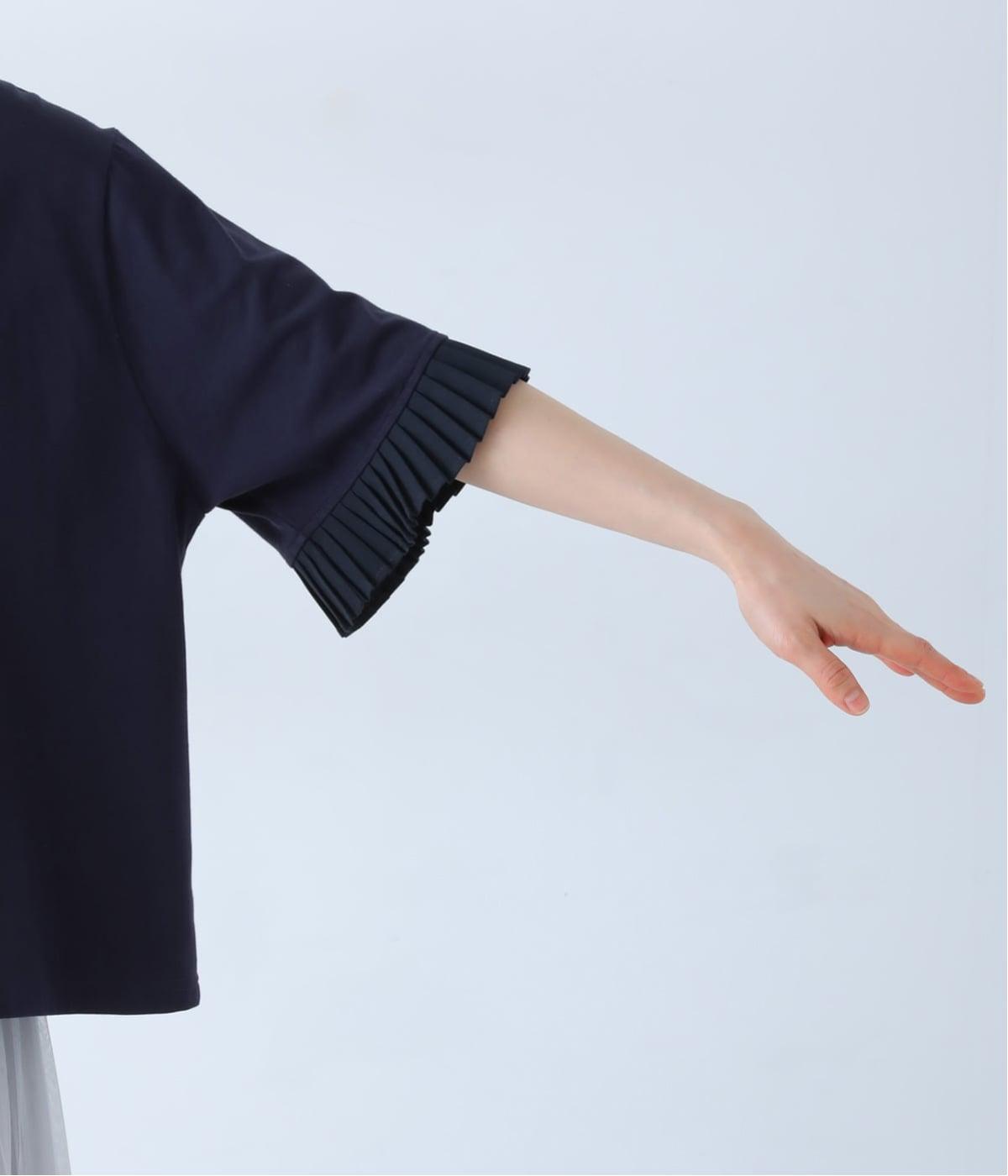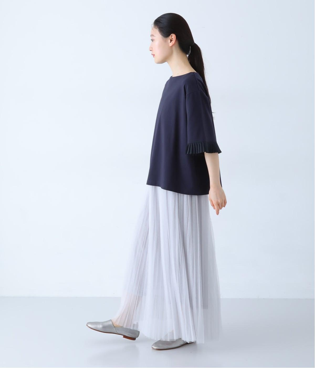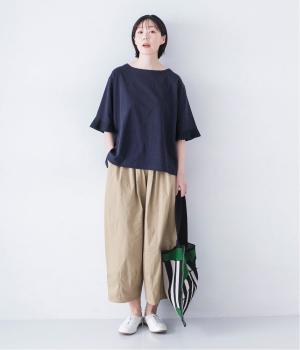 袖口のプリーツが引き立つように、首まわりはボートネックですっきり。Tシャツのカジュアルな印象がないのもポイントです。