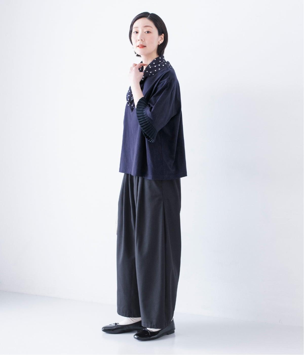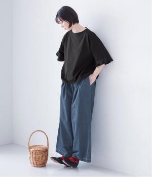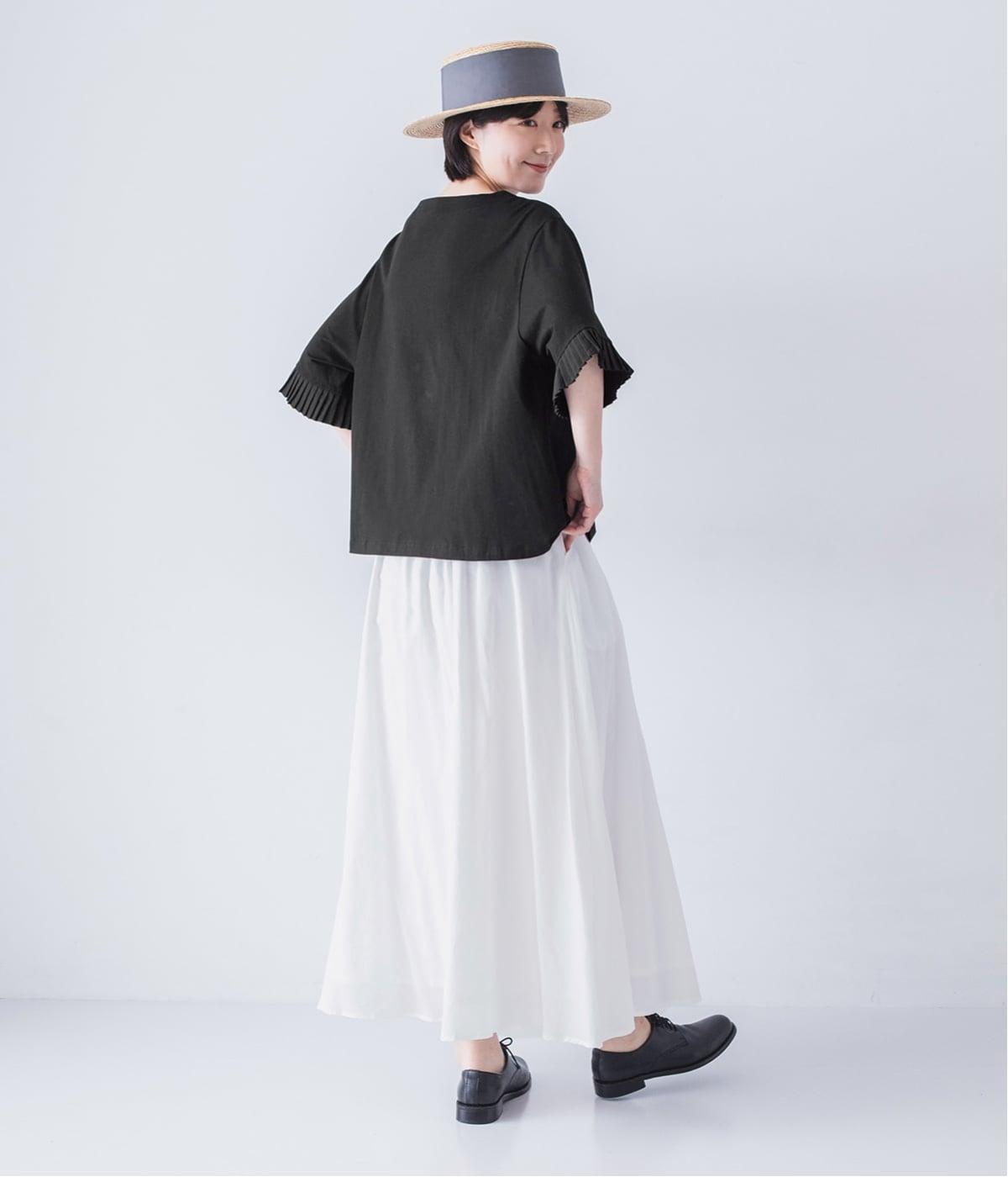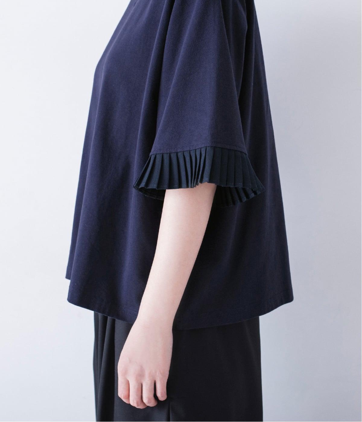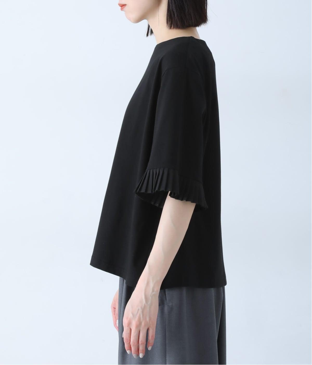 袖口のプリーツが引き立つように、首まわりはボートネックですっきり。Tシャツのカジュアルな印象がないのもポイントです。