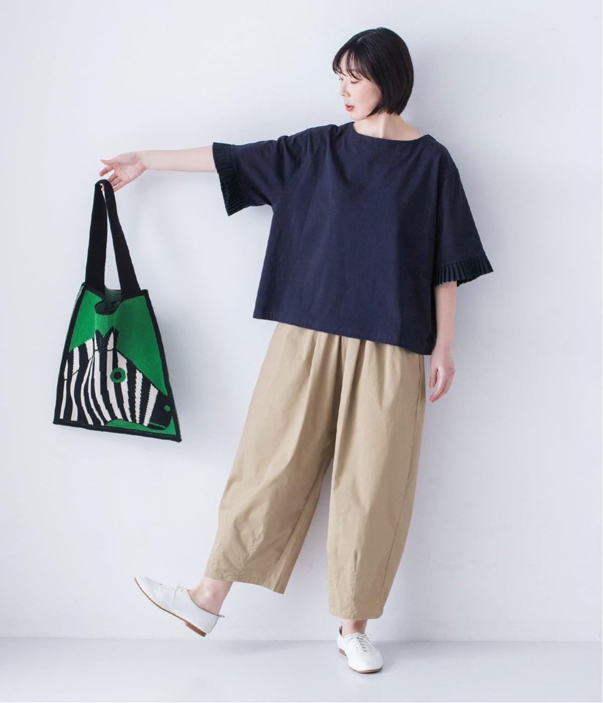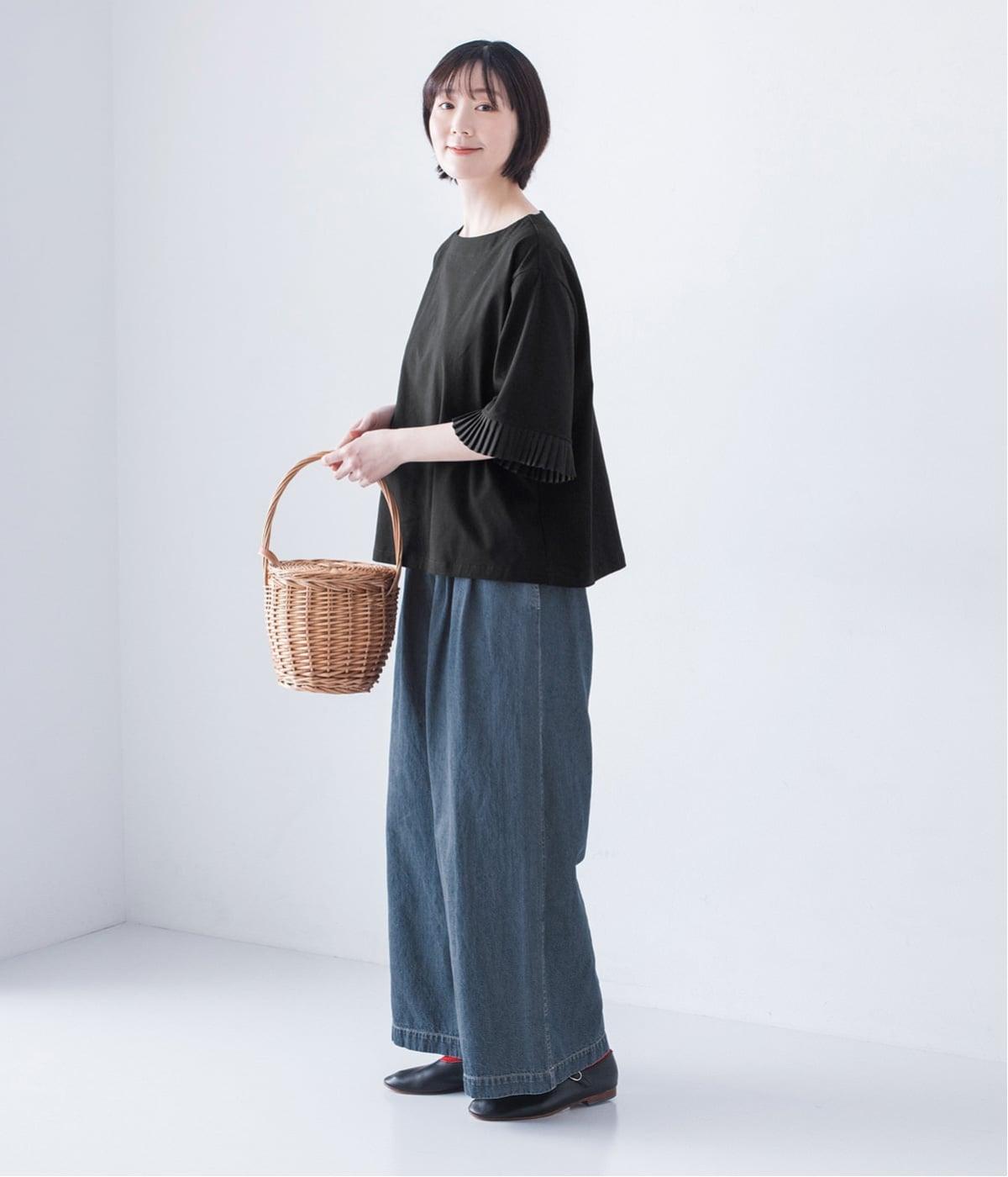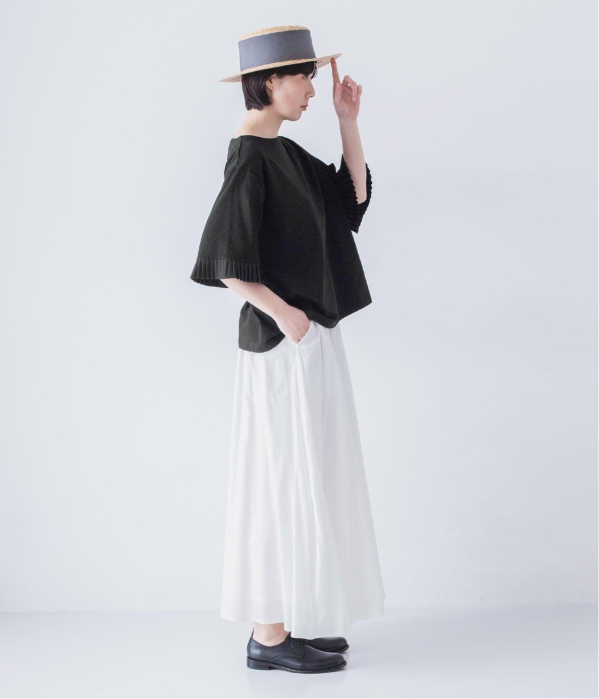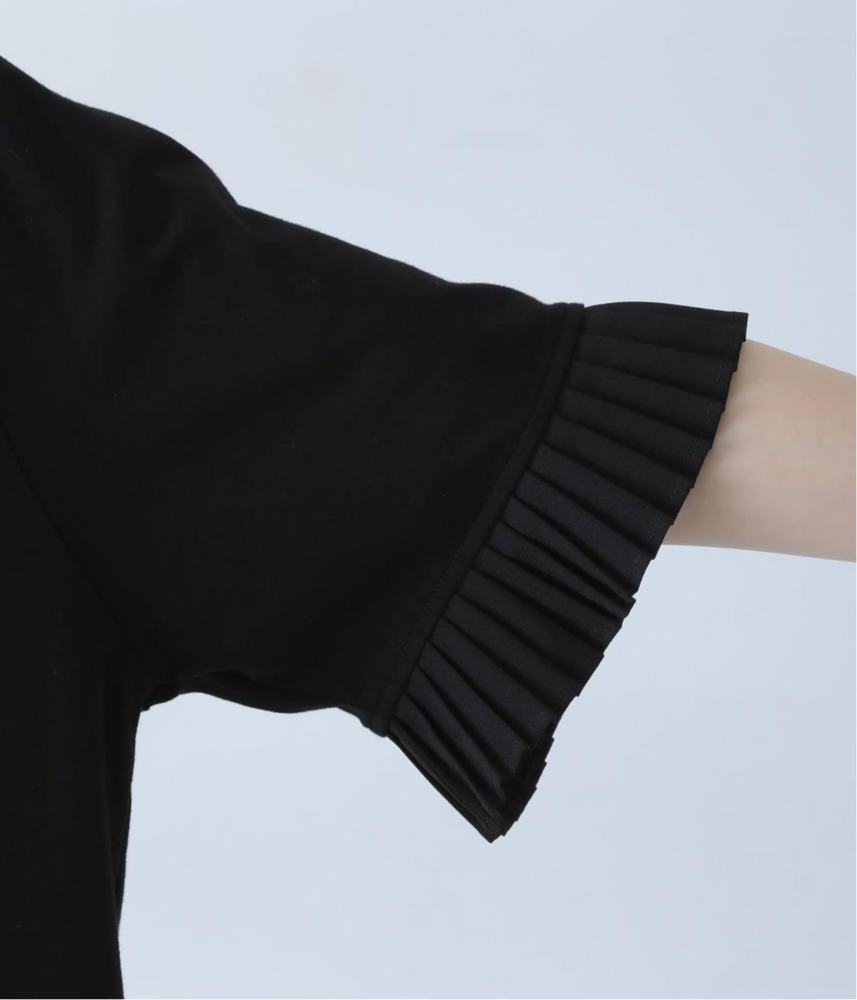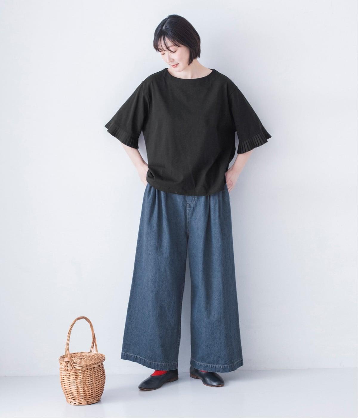 袖口のプリーツが引き立つように、首まわりはボートネックですっきり。Tシャツのカジュアルな印象がないのもポイントです。