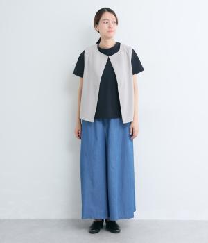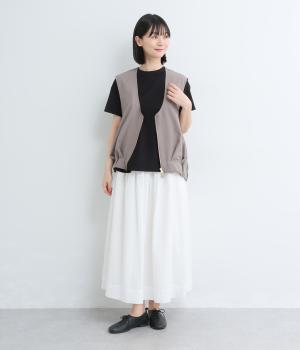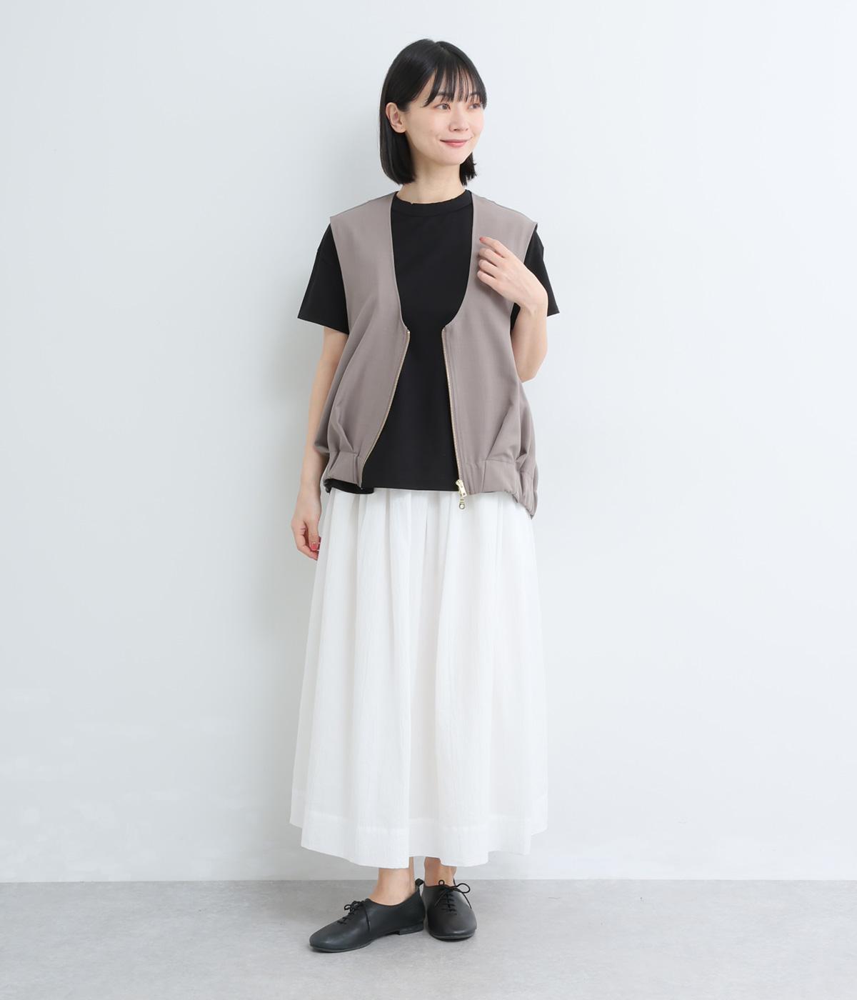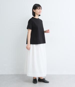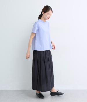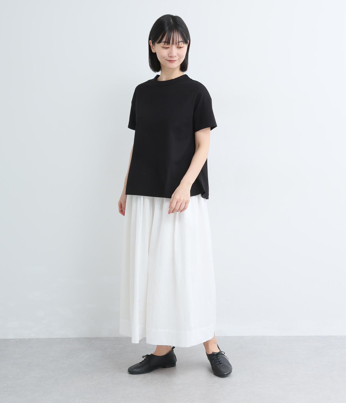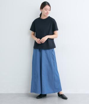 ゆるやかに広がったフレアシルエットがいつものTシャツ合わせに女性らしさを与えます。素材感が良いからこそ成立するベーシックアイテムで、メイン使いからインナーまで幅広く活躍。色ちがいで揃えたくなるアイテムです。