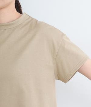 オーソドックスなコットン天竺だからこそ、編みや加工にこだわったメイドインジャパン素材です。やわらかく肌触りの良いパウダリータッチで、きれいで使いやすさにこだわった仕上がりです。