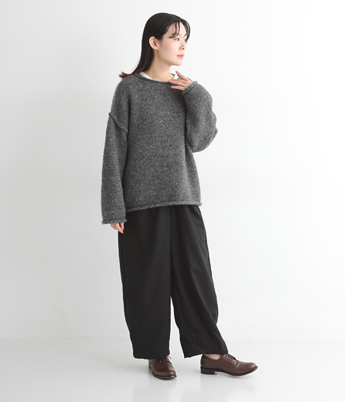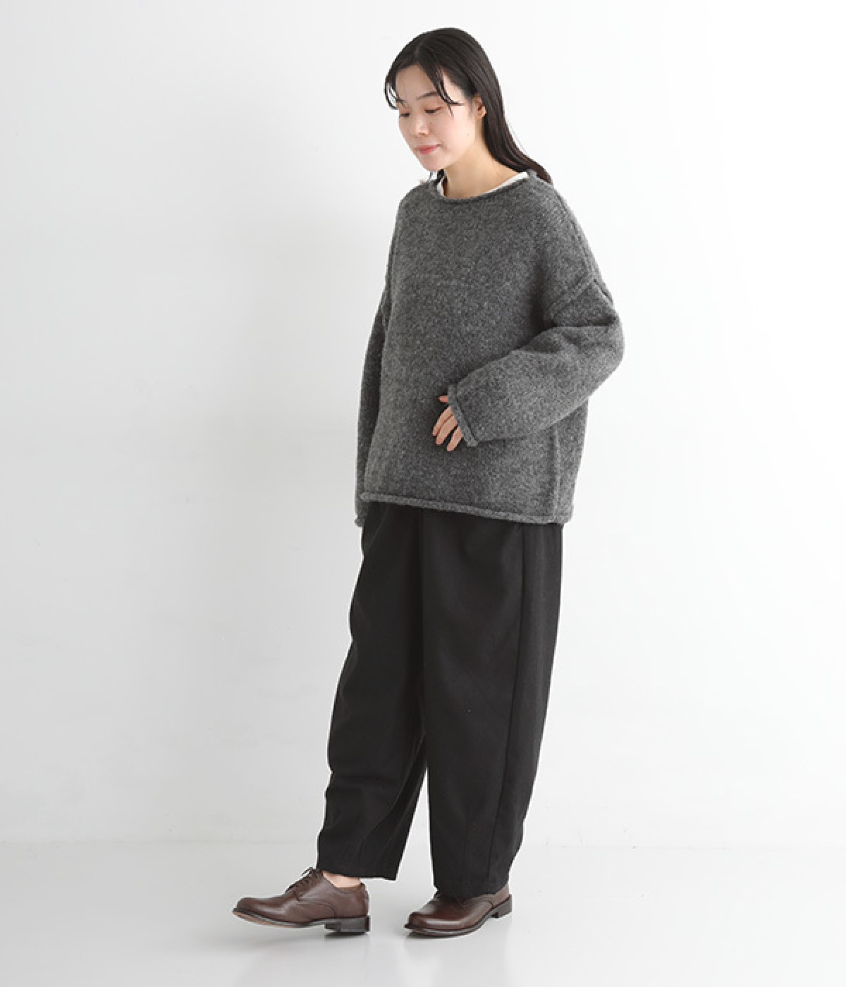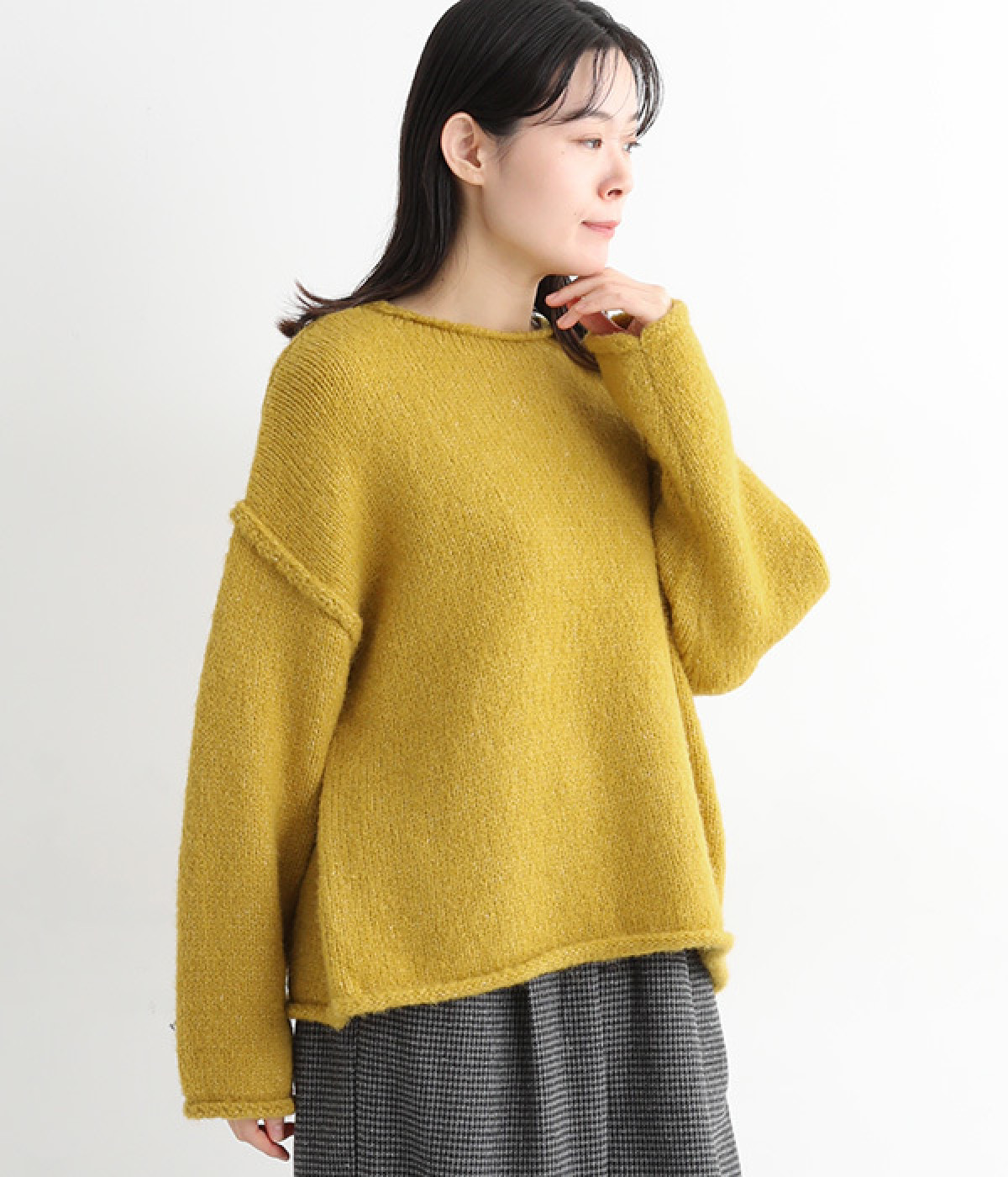 やや厚みがあり、ふっくらとソフトなウール混ニット