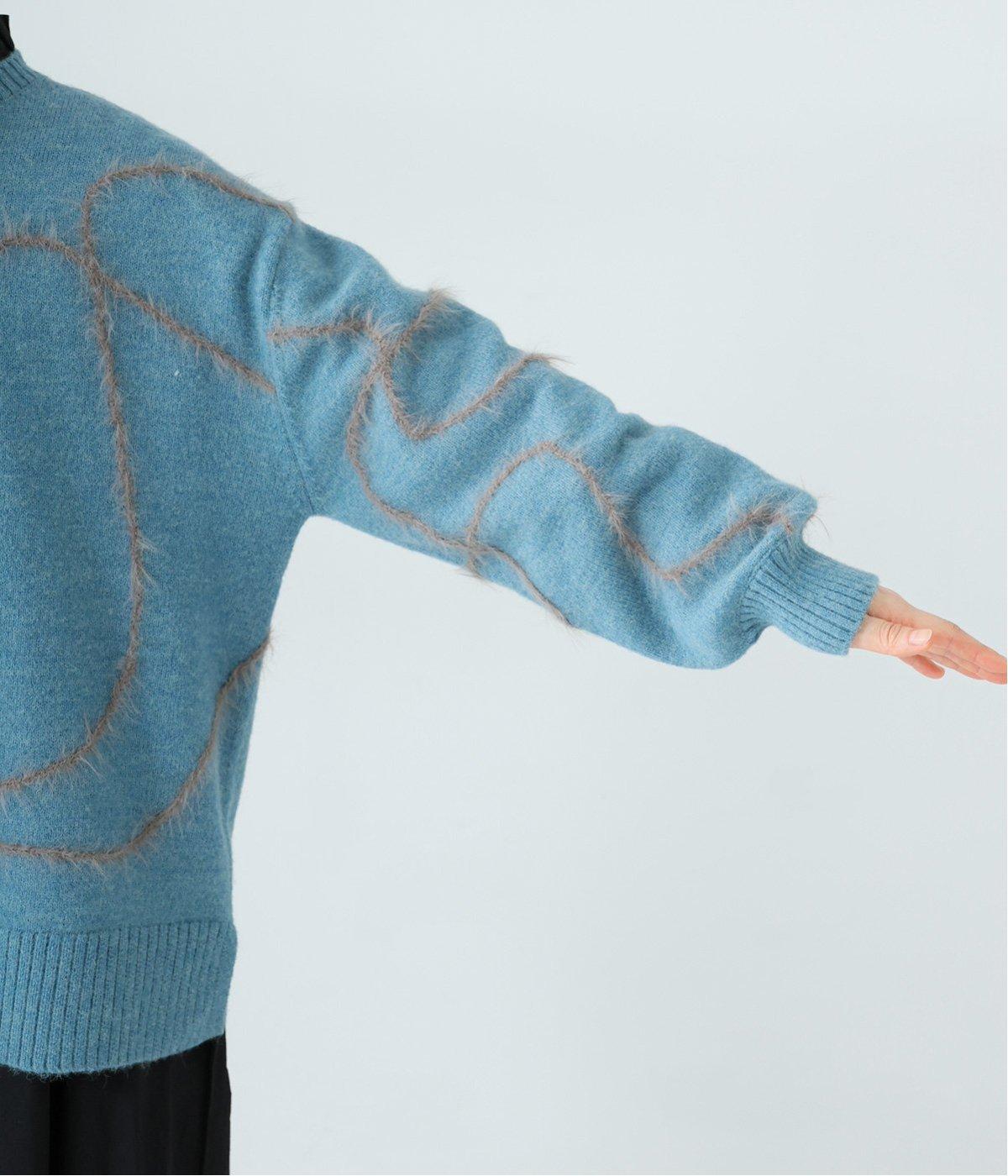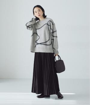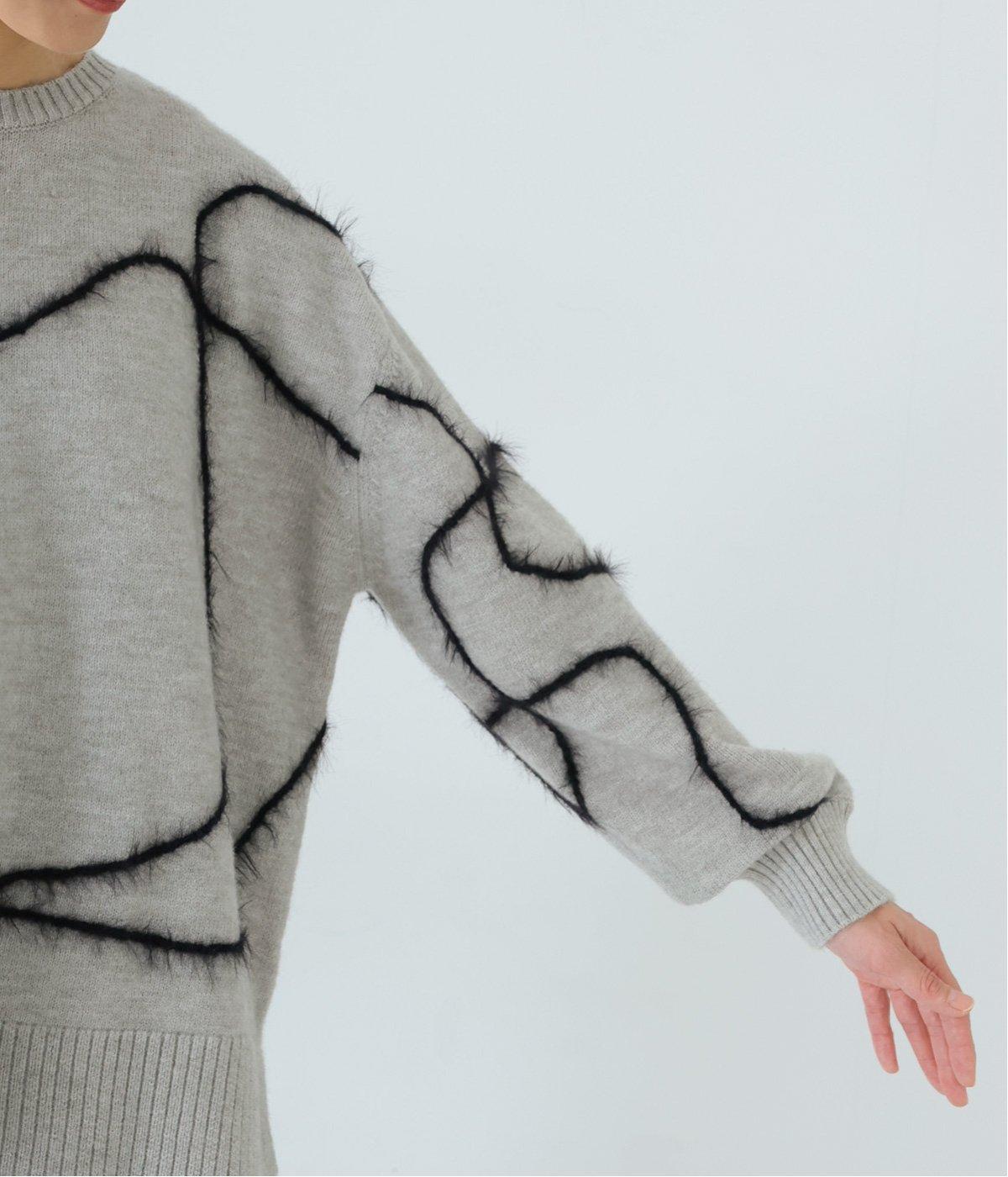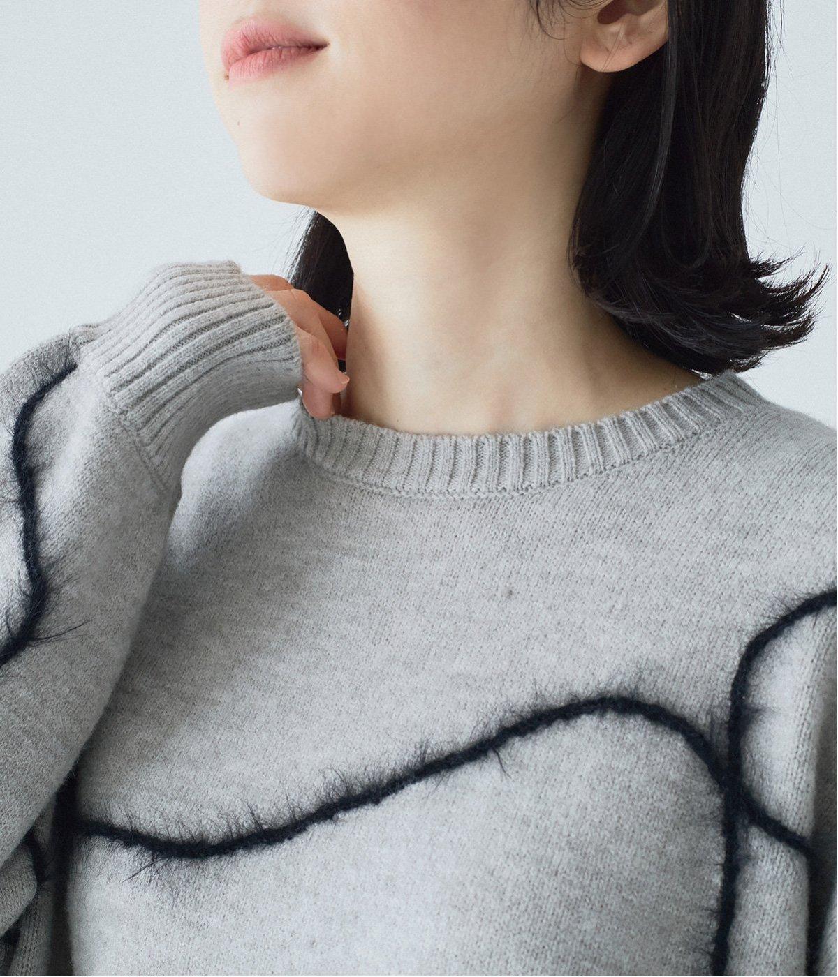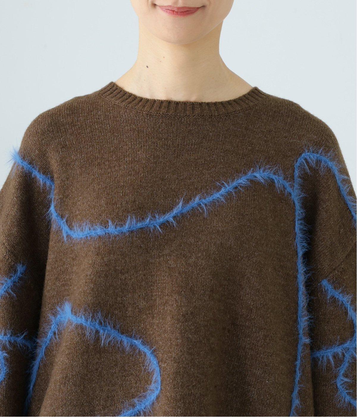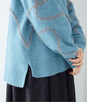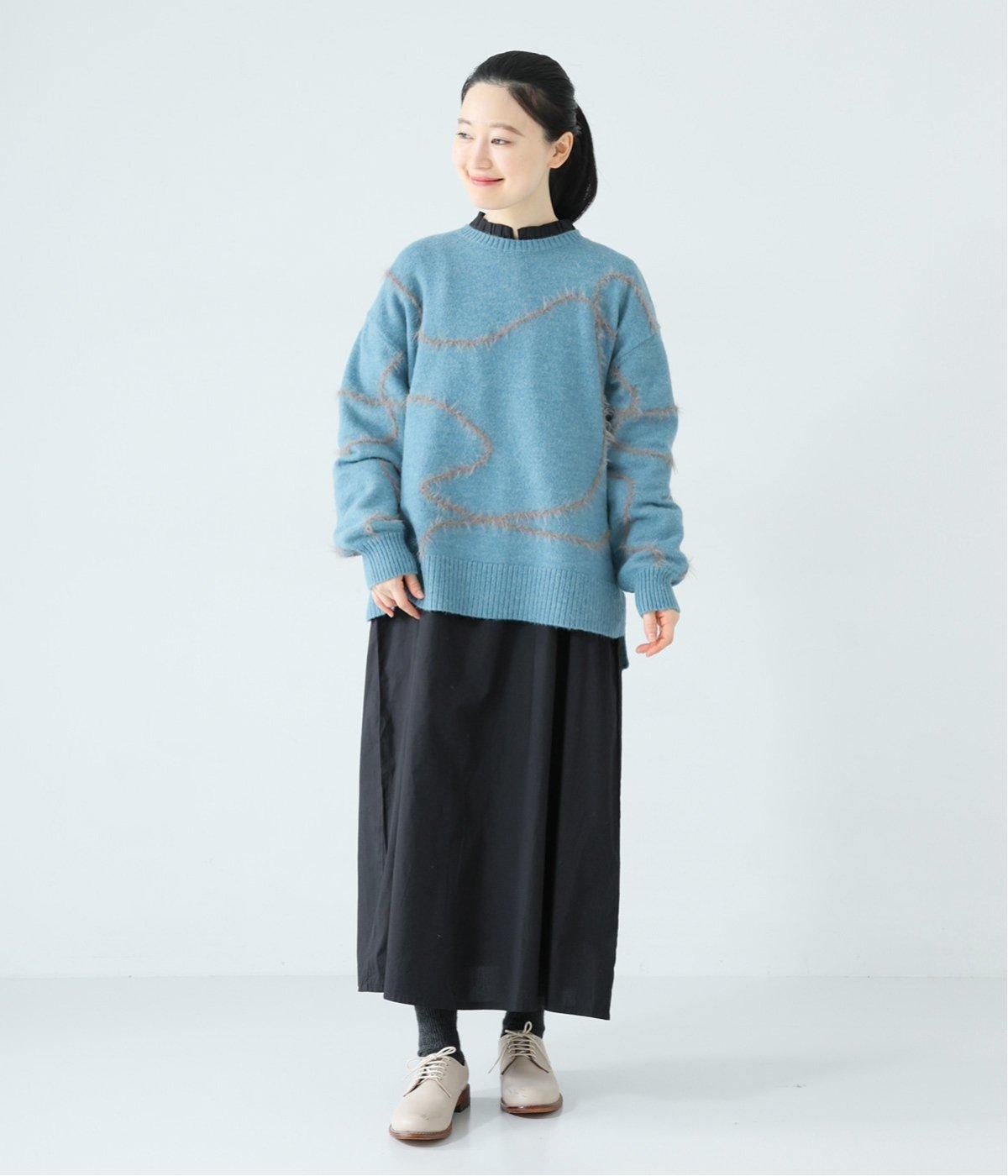 ニット全体にデザインされたラインが目を引くトップス。落ち着いた配色で、コーディネートになじみながらもほどよく存在感を放ちます。ドロップショルダーから成るゆったりとした身幅でこなれた印象に。前後差のある着丈とサイドスリットもポイントです。