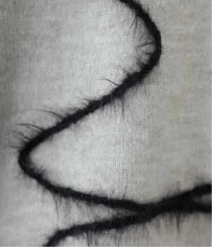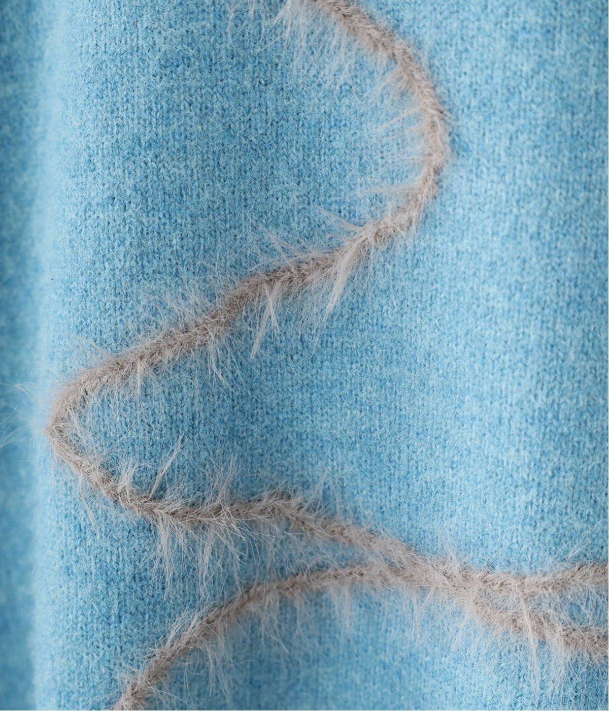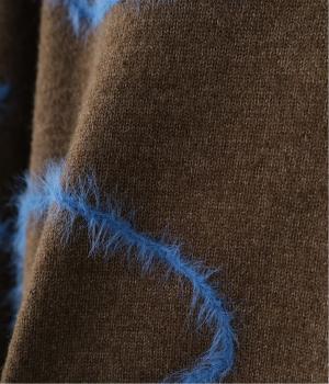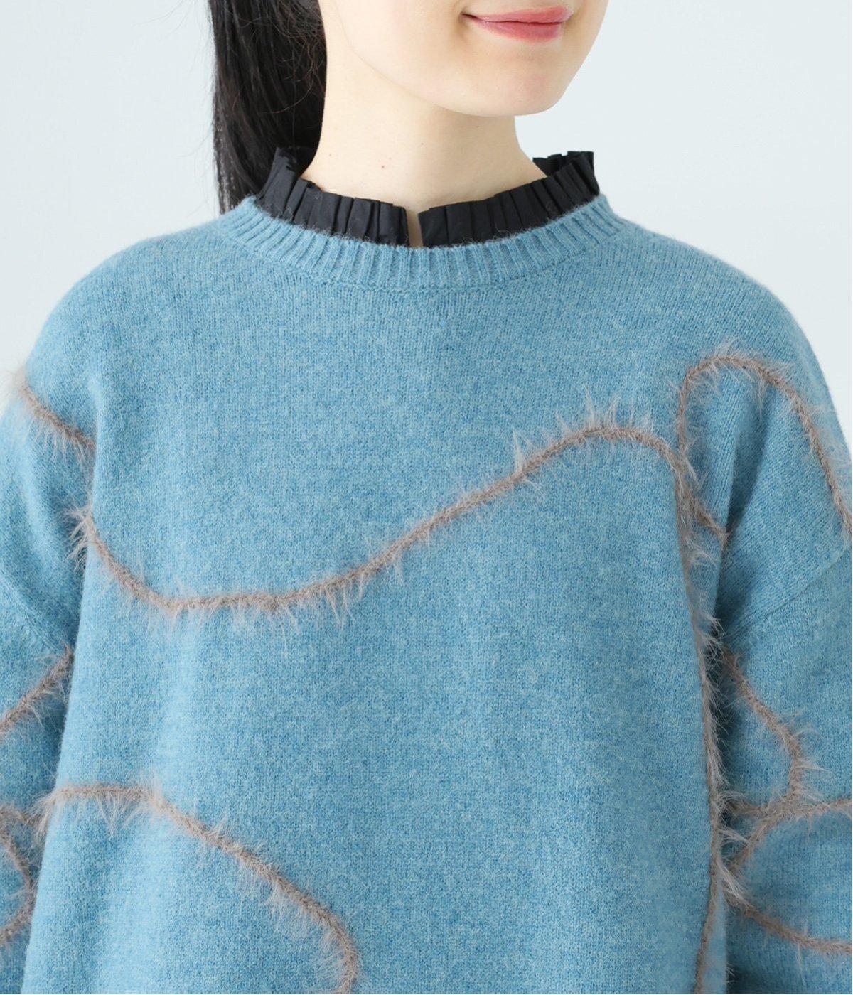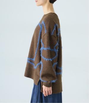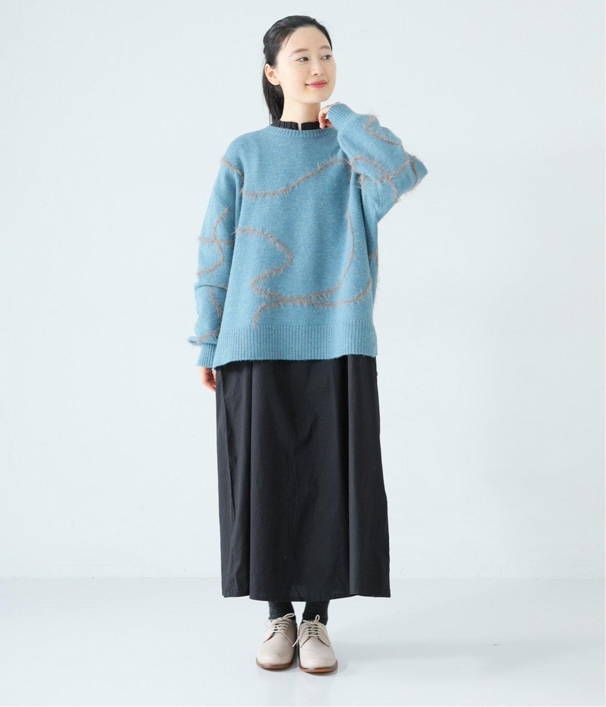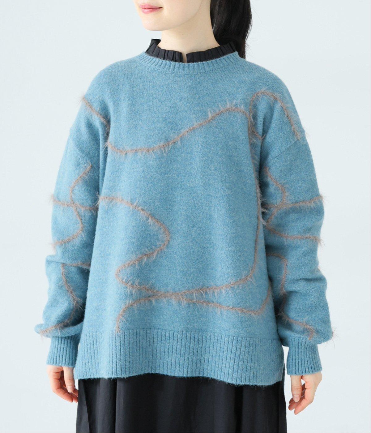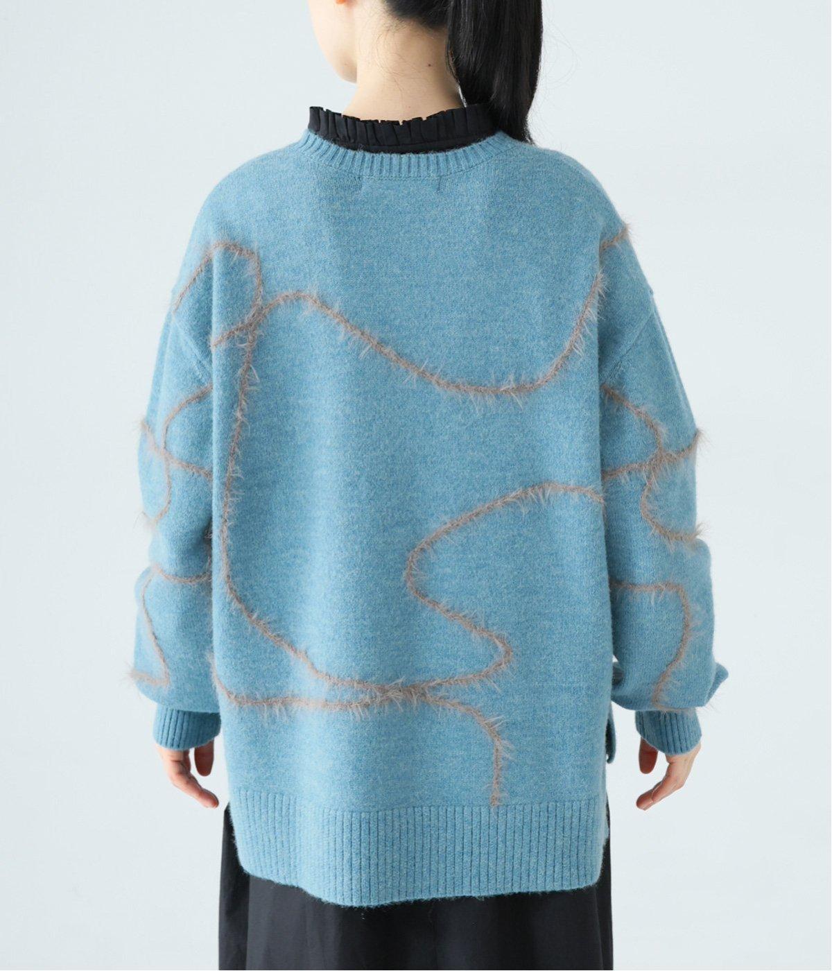 ニット全体にデザインされたラインが目を引くトップス。落ち着いた配色で、コーディネートになじみながらもほどよく存在感を放ちます。ドロップショルダーから成るゆったりとした身幅でこなれた印象に。前後差のある着丈とサイドスリットもポイントです。