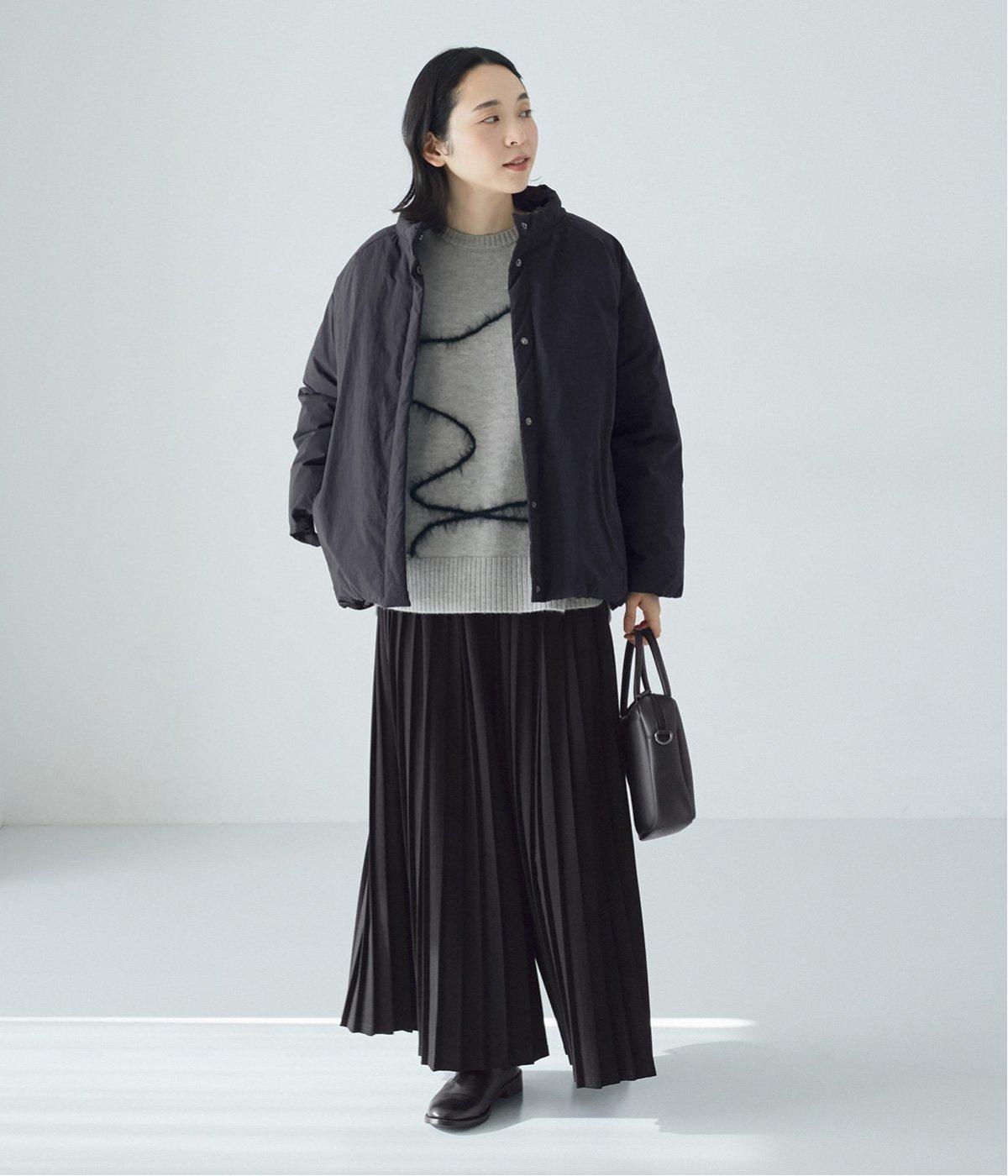 体の動きを邪魔しない伸びのよさとふっくらとしたやわらかな毛足が魅力のニット。あたたかみがありつつも厚手すぎないので、アウターの中にも着やすいのが◎です。