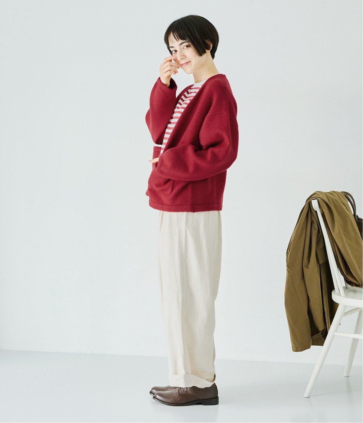 曲線を描くワイドな袖とゆったりとしたボックス型シルエットがこなれ感をうむニットカーディガン。深めのネックラインで顔まわりや胸元はすっきりとさせました。スカートにもパンツにも合わせやすい、ちょうどいい着丈にもこだわっています。