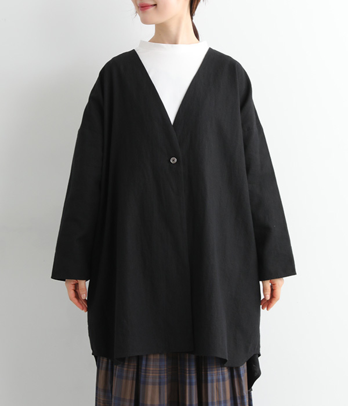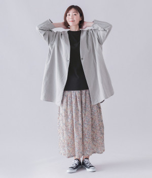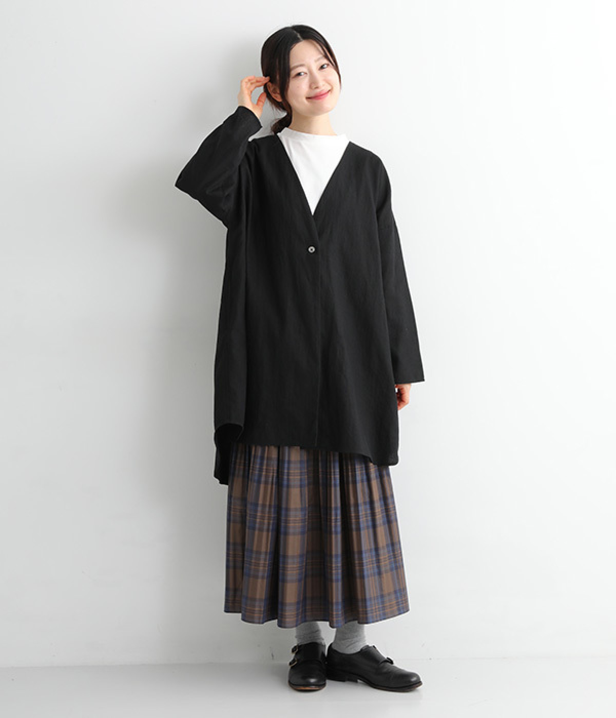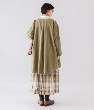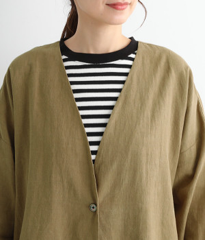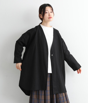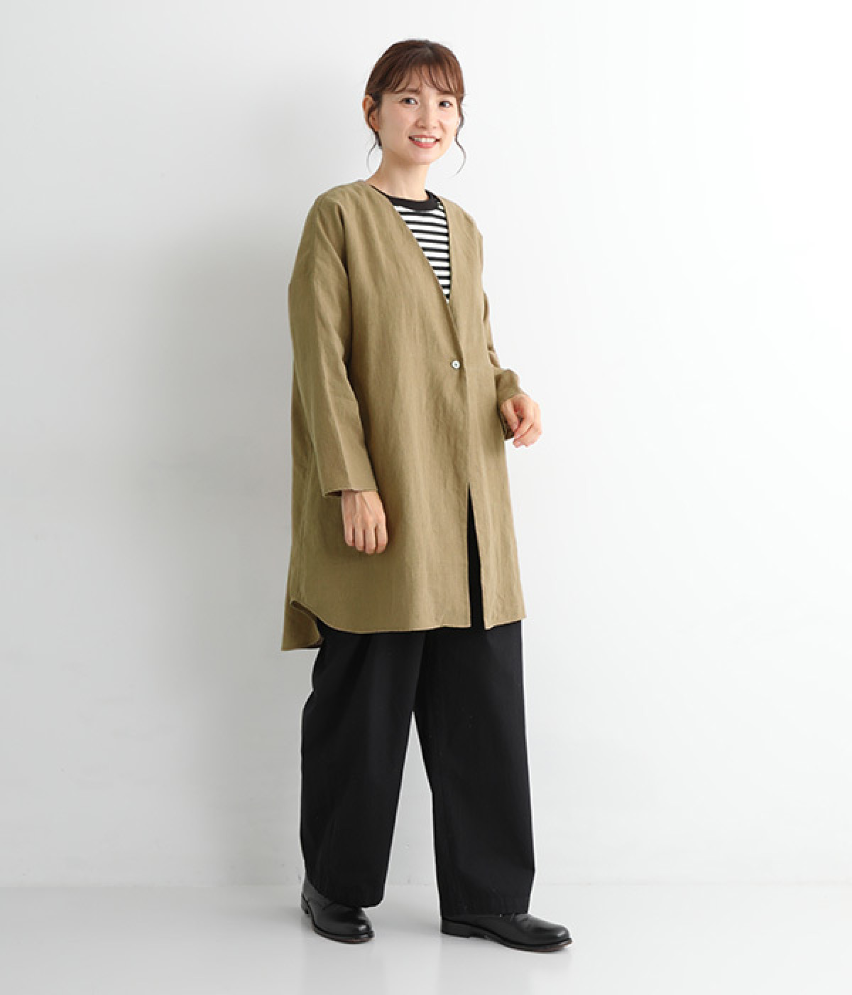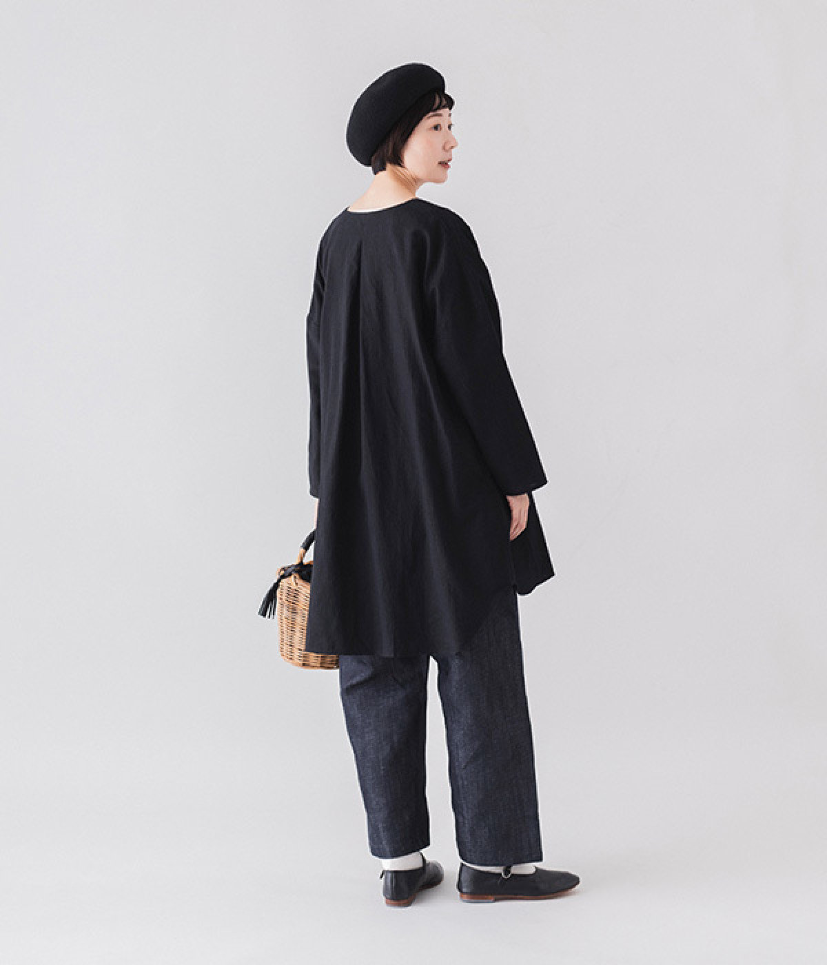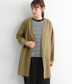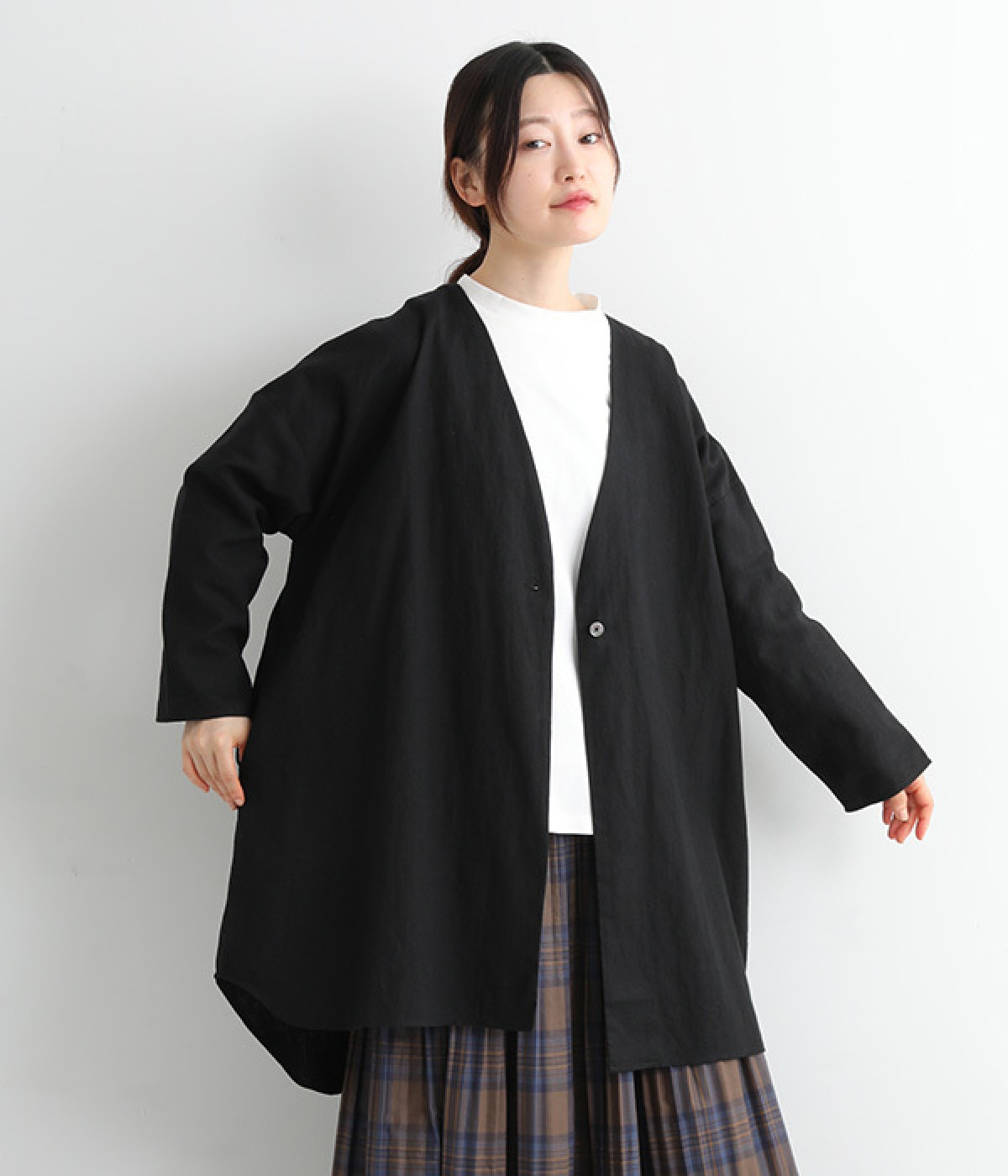 カーディガン代わりに気軽に羽織れるリネンコットンを使用。残暑厳しい時期や、朝晩の寒暖差がある季節の合間にも重宝します。