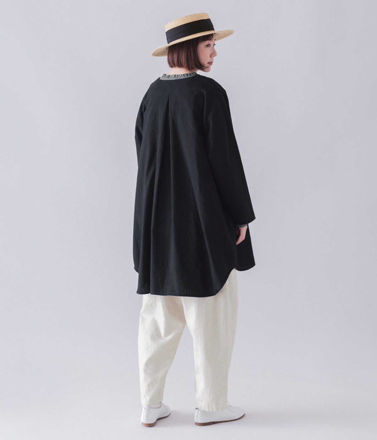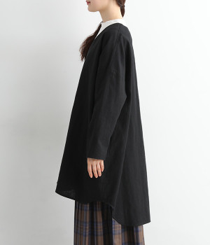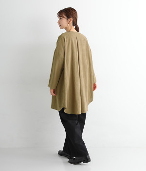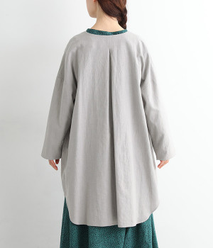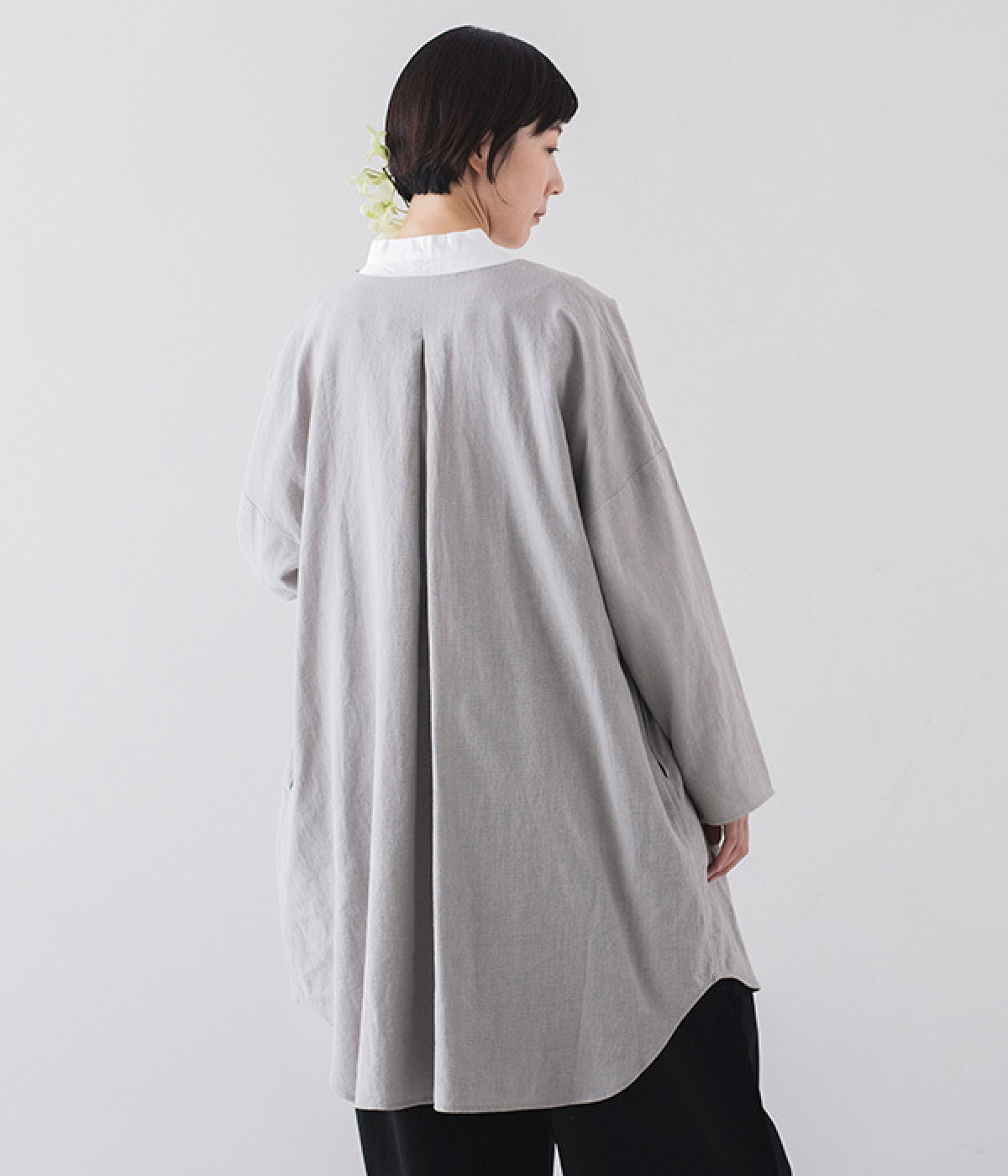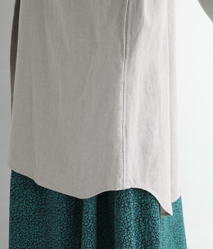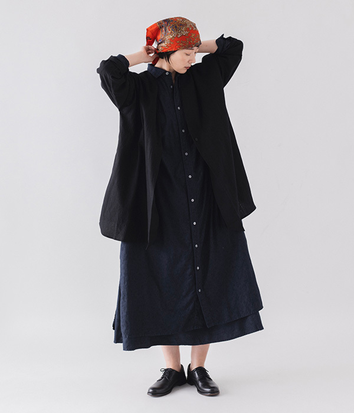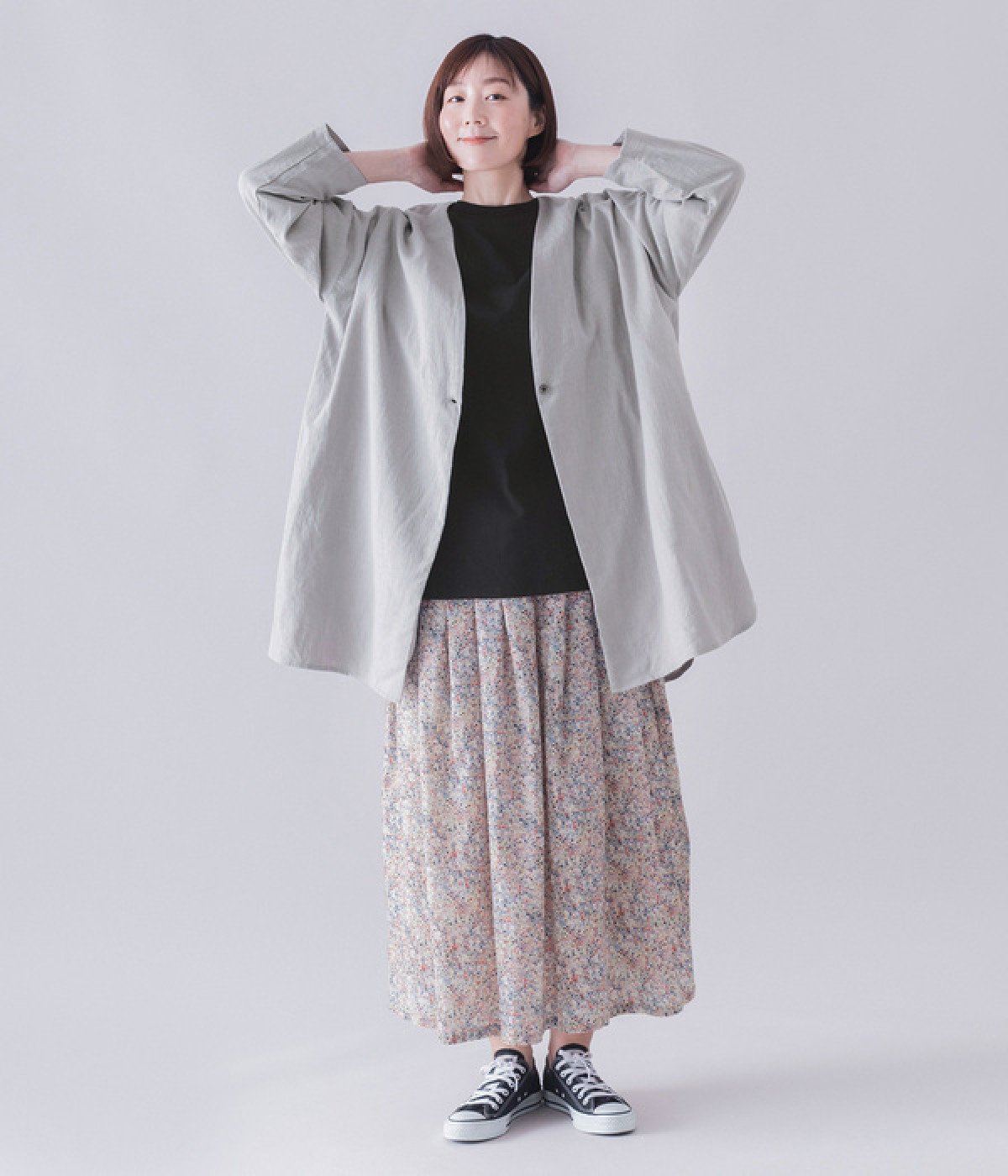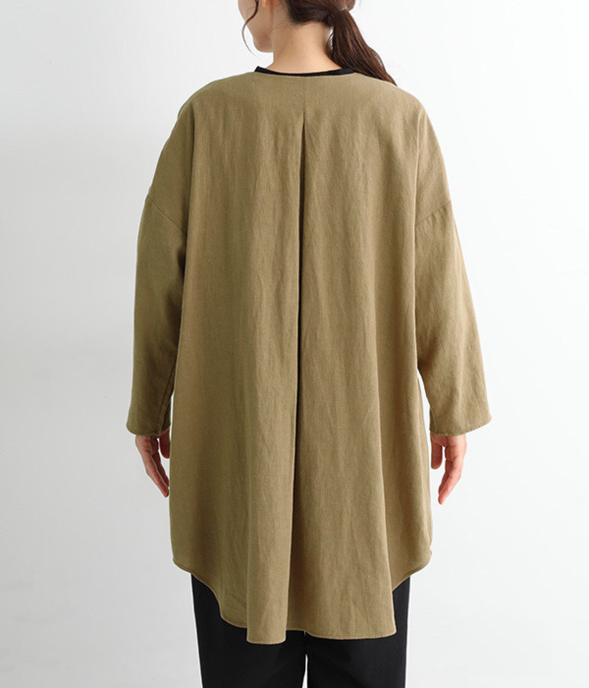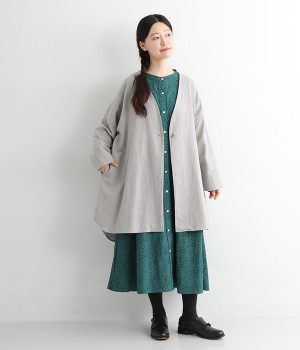 カーディガン代わりに気軽に羽織れるリネンコットンを使用。残暑厳しい時期や、朝晩の寒暖差がある季節の合間にも重宝します。