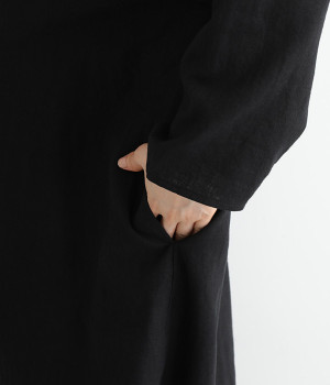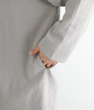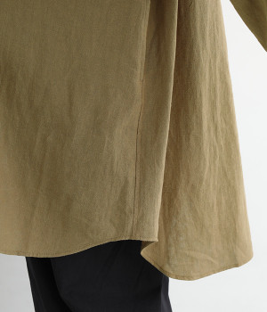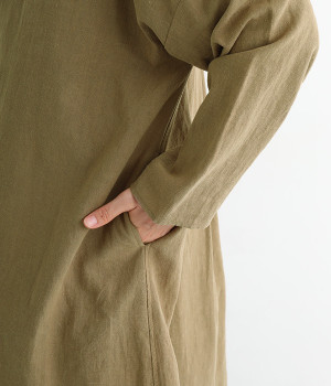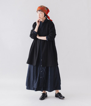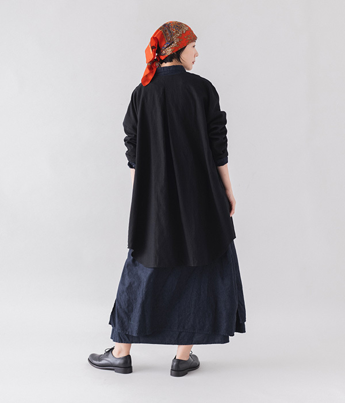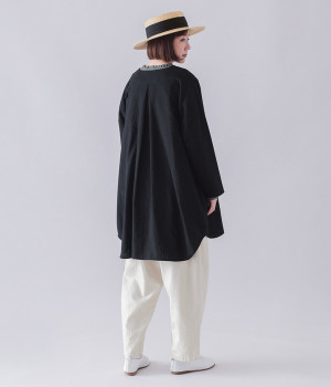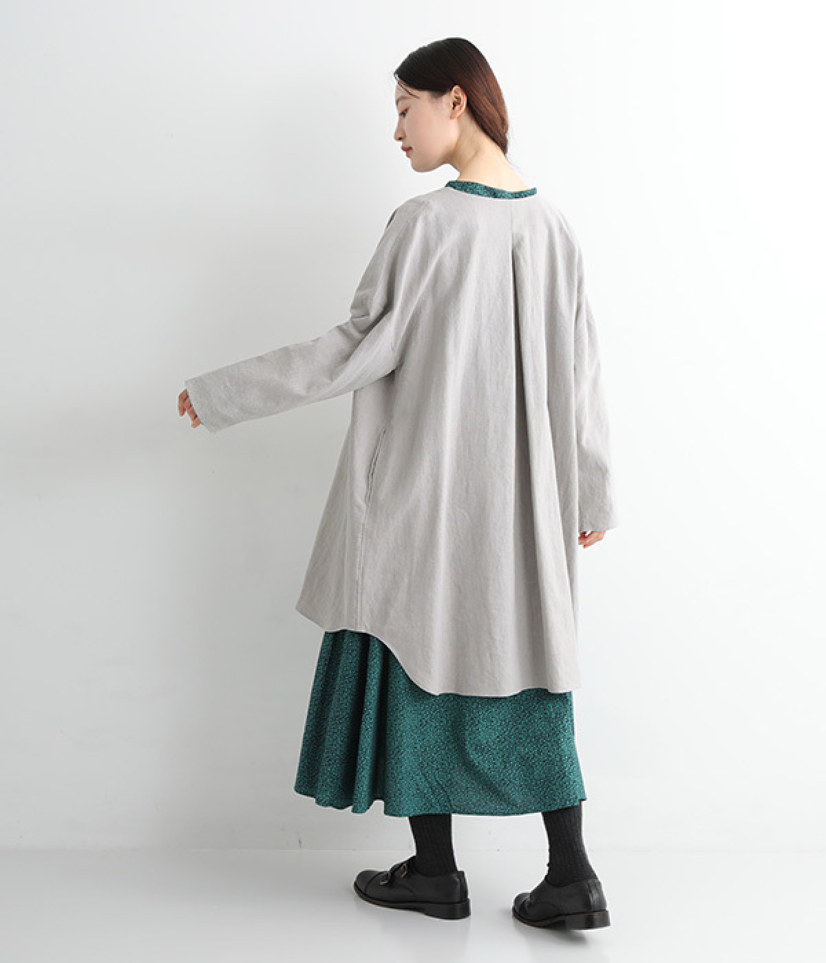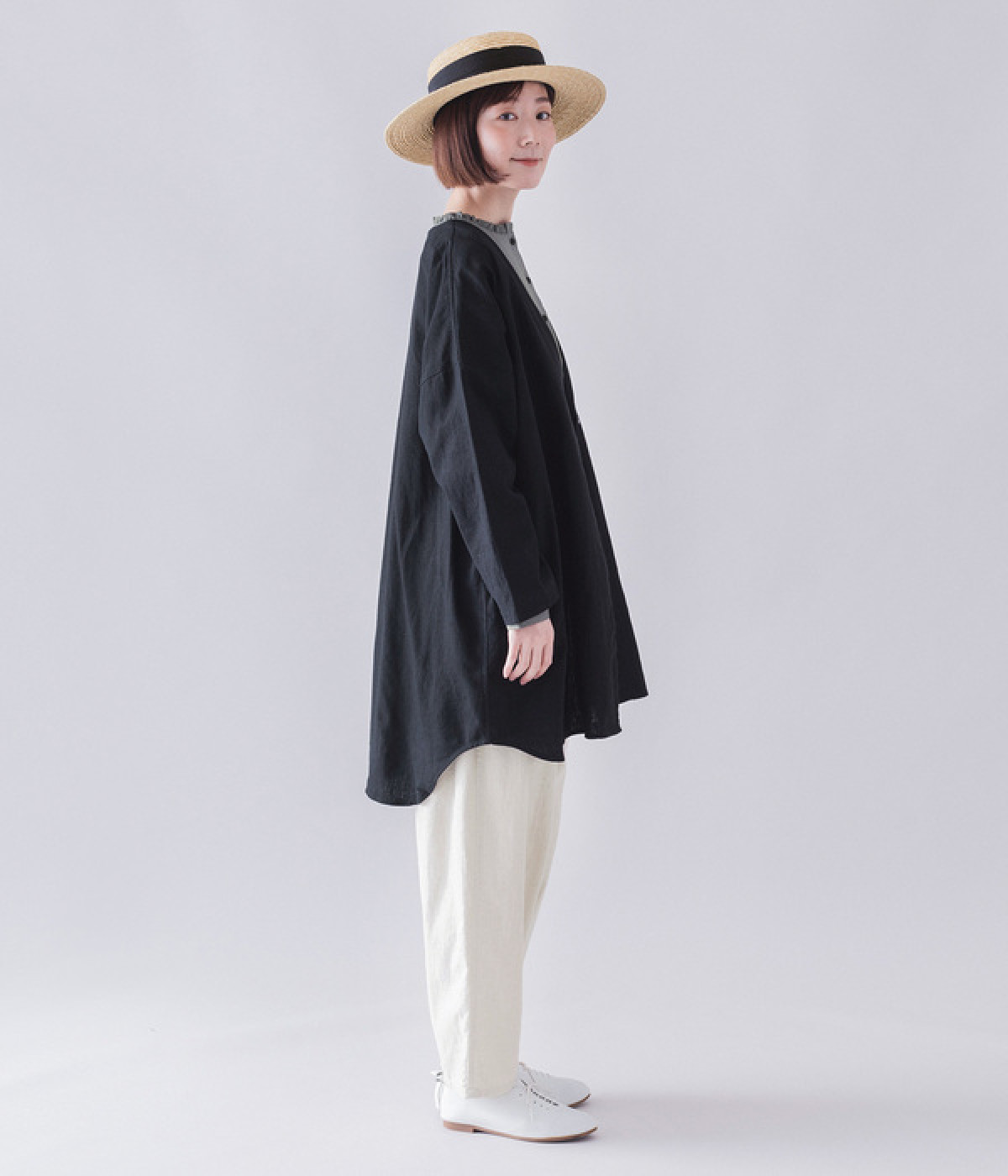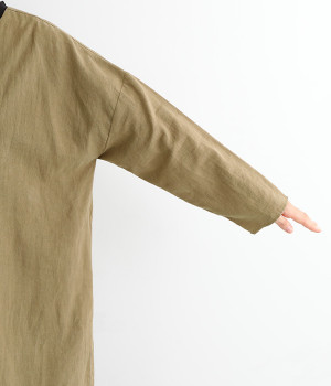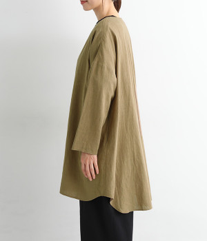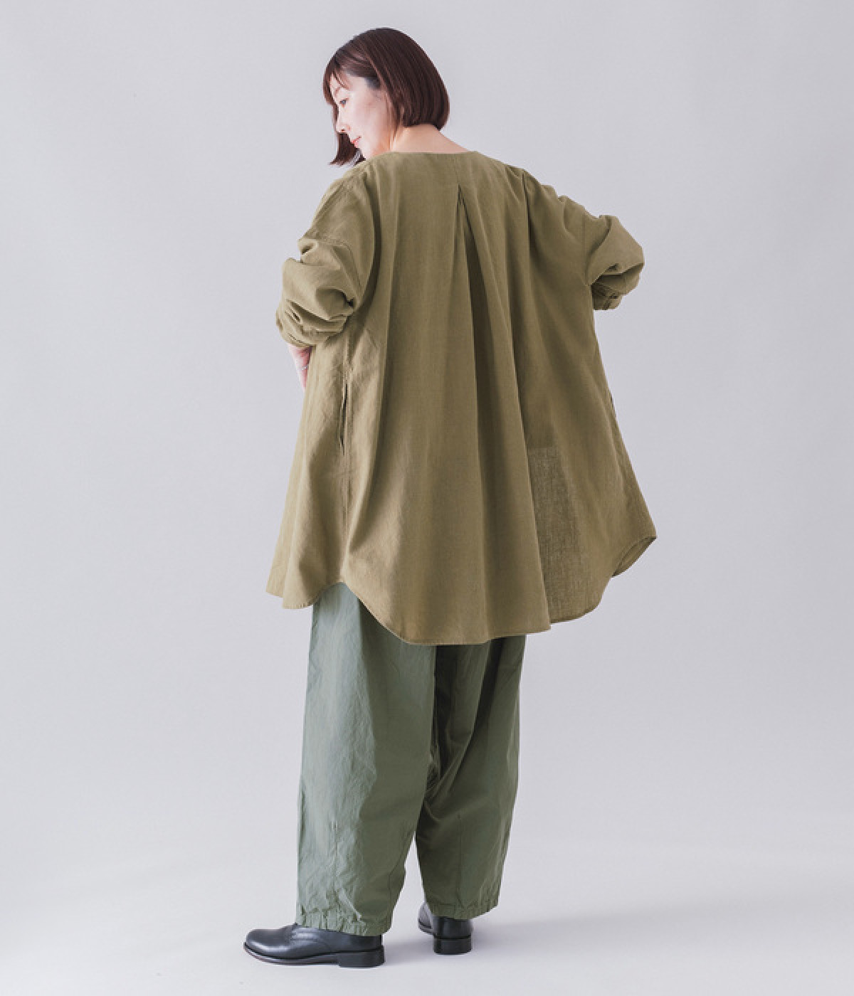 カーディガン代わりに気軽に羽織れるリネンコットンを使用。残暑厳しい時期や、朝晩の寒暖差がある季節の合間にも重宝します。