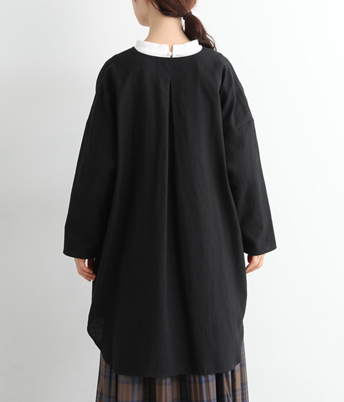 カットソーやブラウスだけでなく、タートルネックも重ね着しやすい深めの襟開きにしました。