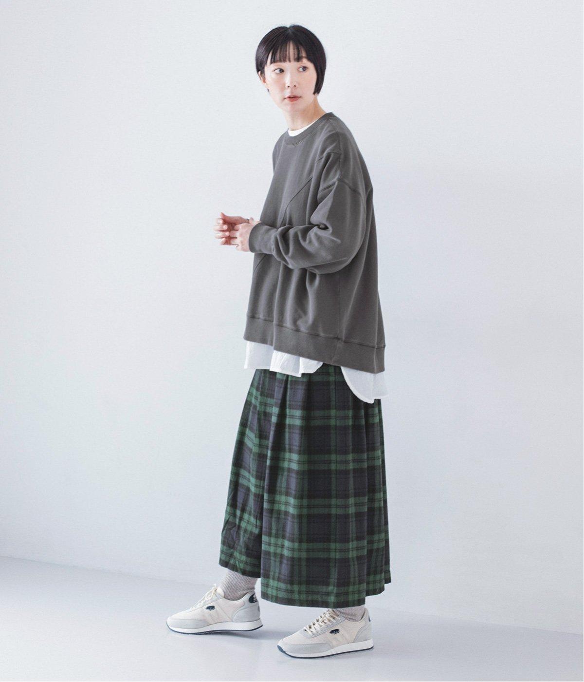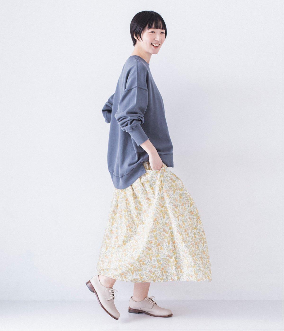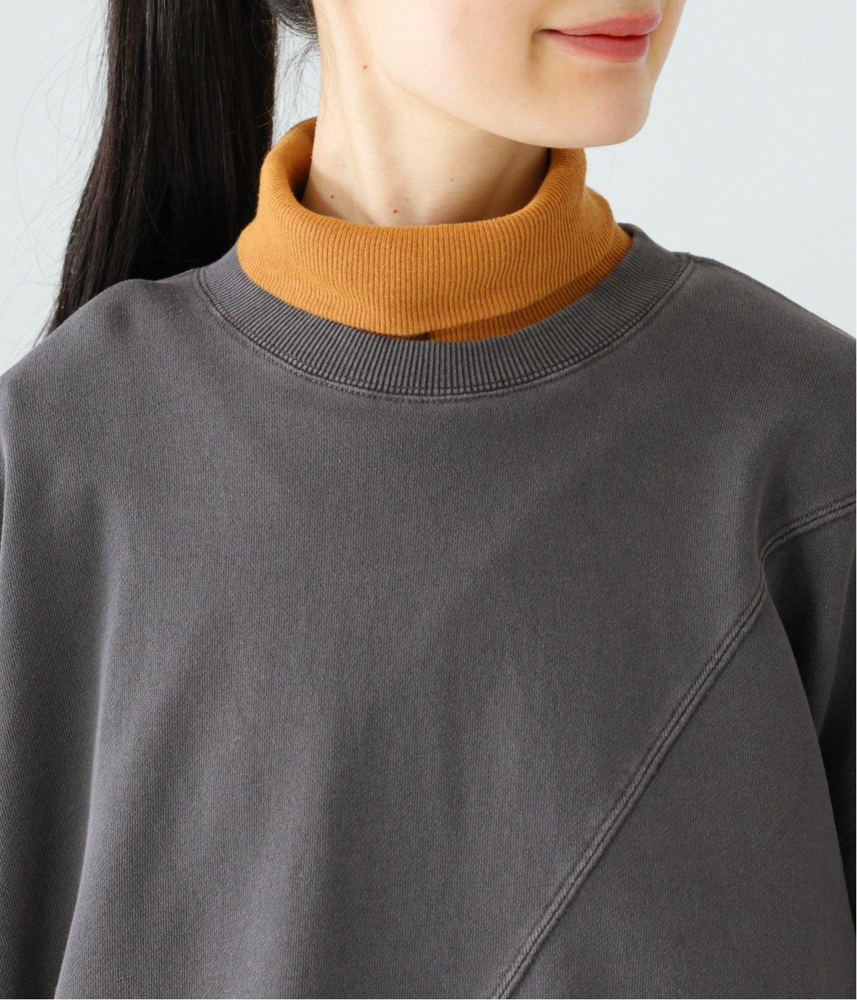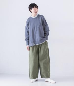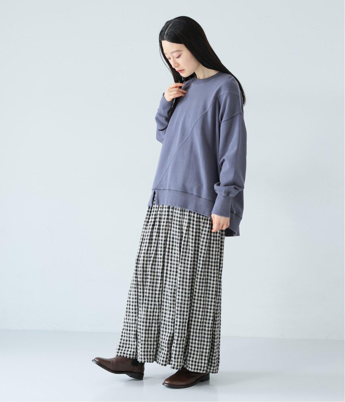 前身頃に大胆な斜め切り替えと裾スリットを施した、デザイン性の高い裏毛プルオーバー。ゆったりとしたサイズ感と長めの着丈で腰まわりをカバーします。前後差のあるシルエットがパンツにもスカートにも好相性。ほどよく膨らみのある袖が、さりげない可愛らしさを添えます。