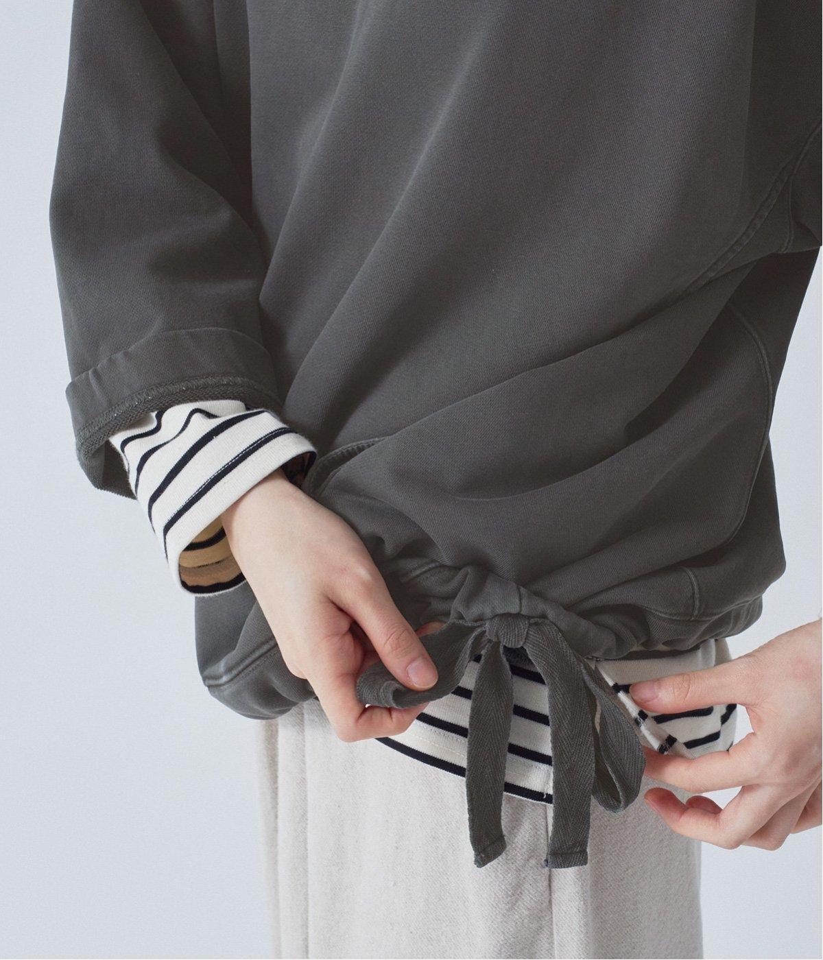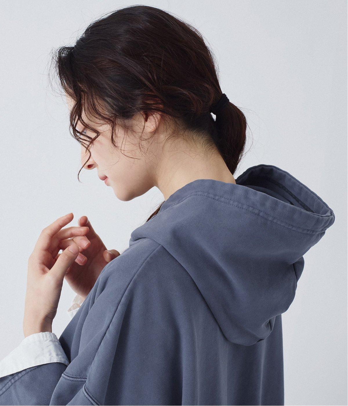 ゆったりとしたサイズ感がこなれ感を漂わせるフーディ。袖丈はあえて短めに設定してすっきりとさせ、全体を好バランスに仕上げています。左裾の紐をきゅっと絞って、シルエットや着丈をアレンジできるのもうれしいポイントです。