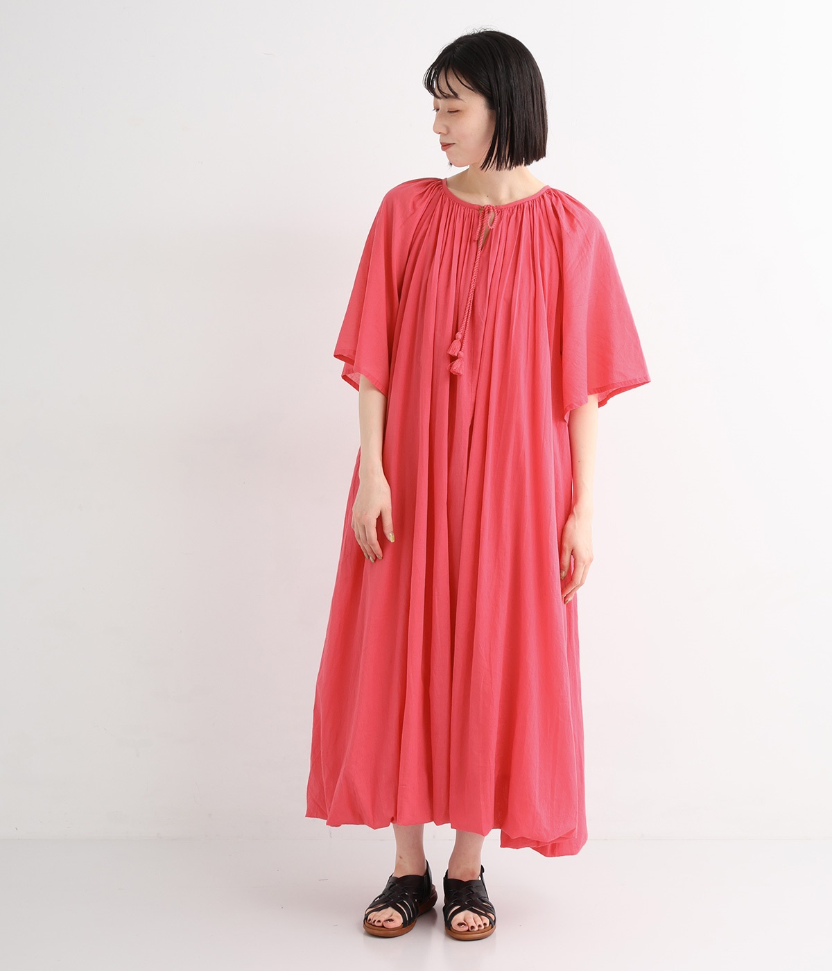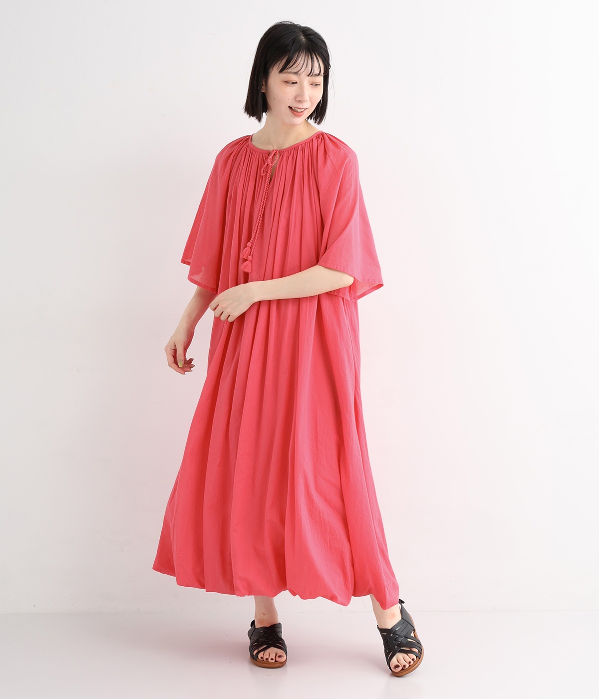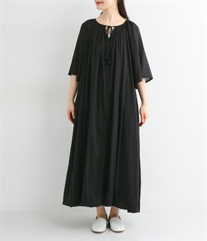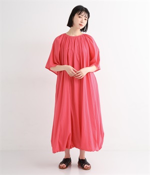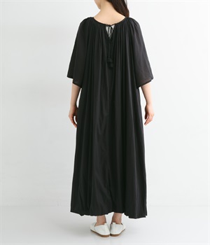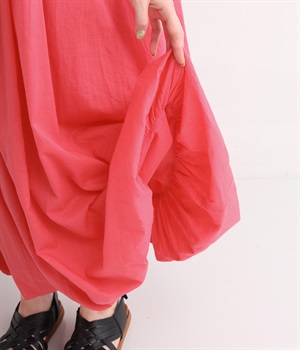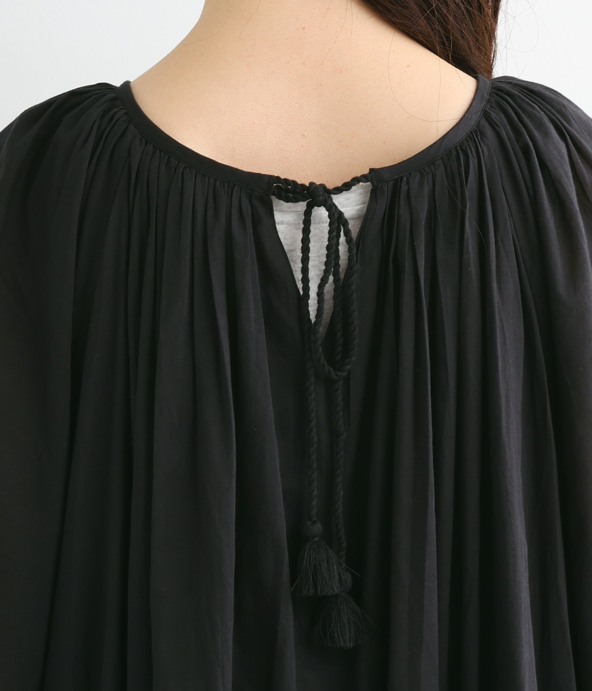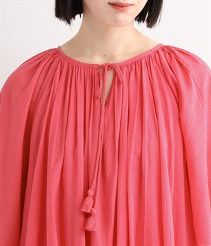 ふっくらとしたバルーン裾がスタイリングをやさしい雰囲気にまとめます。前後リバーシブルで着まわせる2way仕様。コードの先で揺らめくタッセルが目を引くポイントになっています。裏地のない袖部分は透け感を演出。