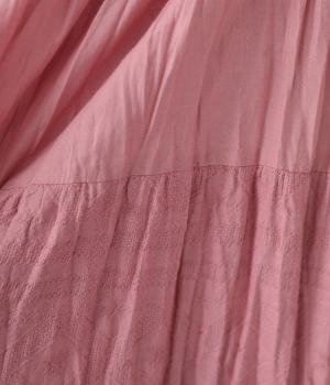 インド特有のやわらかな風合いが印象的なコットン生地を使用。薄手で風通しがよく、ボリュームシルエットも軽やかに着こなせます。繊細な刺しゅうデザインにも注目です。