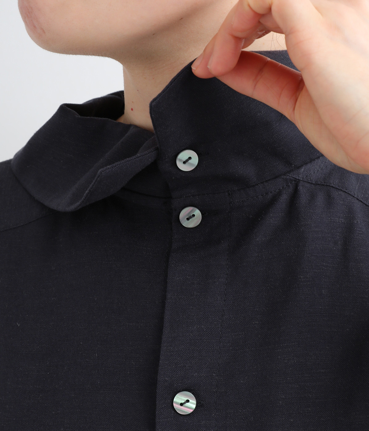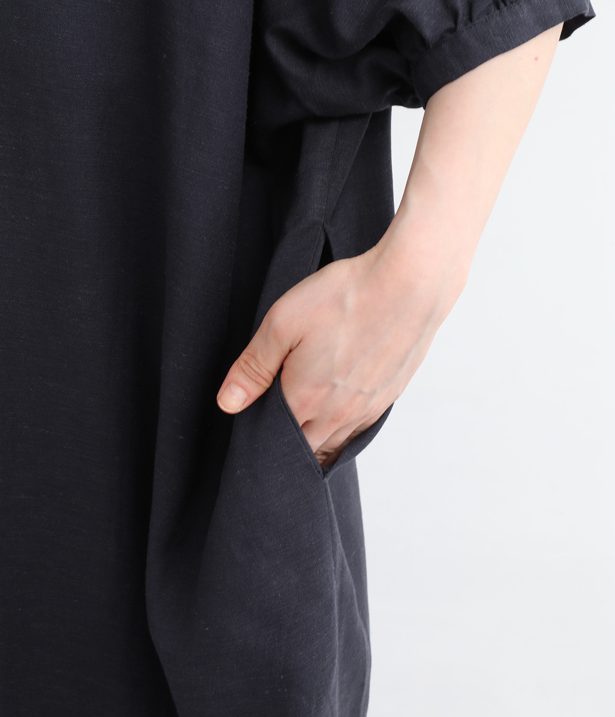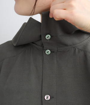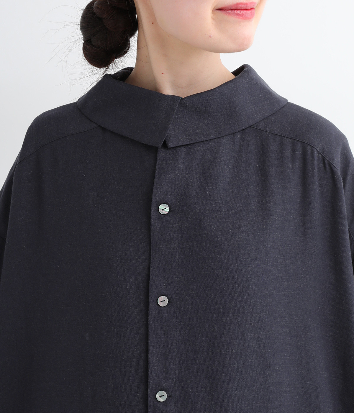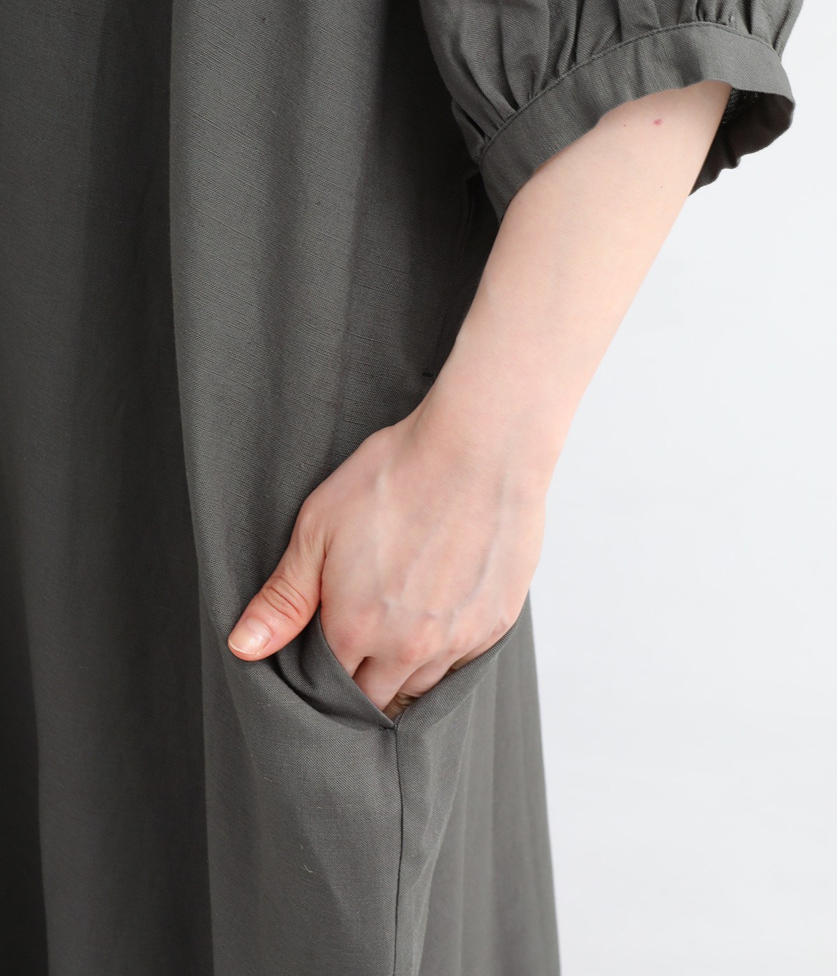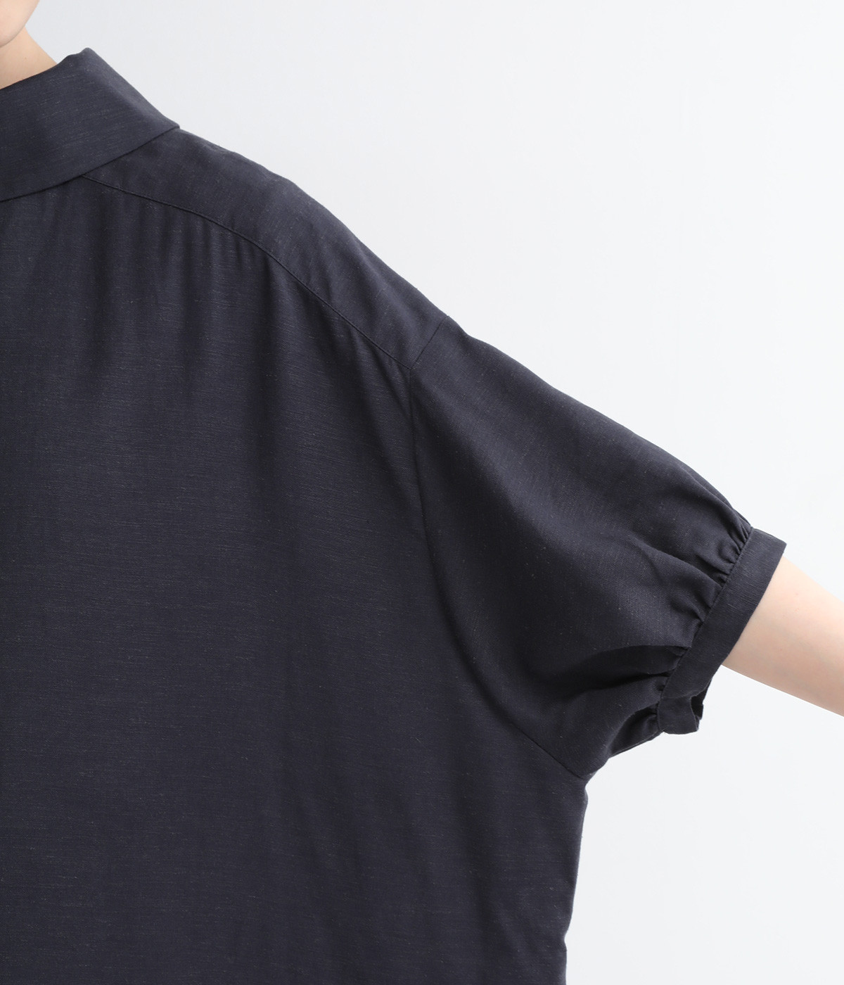 しなやかさを持つレーヨン×リネンの混紡素材。織りやネップなどが感じ取れるナチュラルさを残した生地感になっています。肌触りがソフトでなめらか、気持ちのいい風合いが◎。