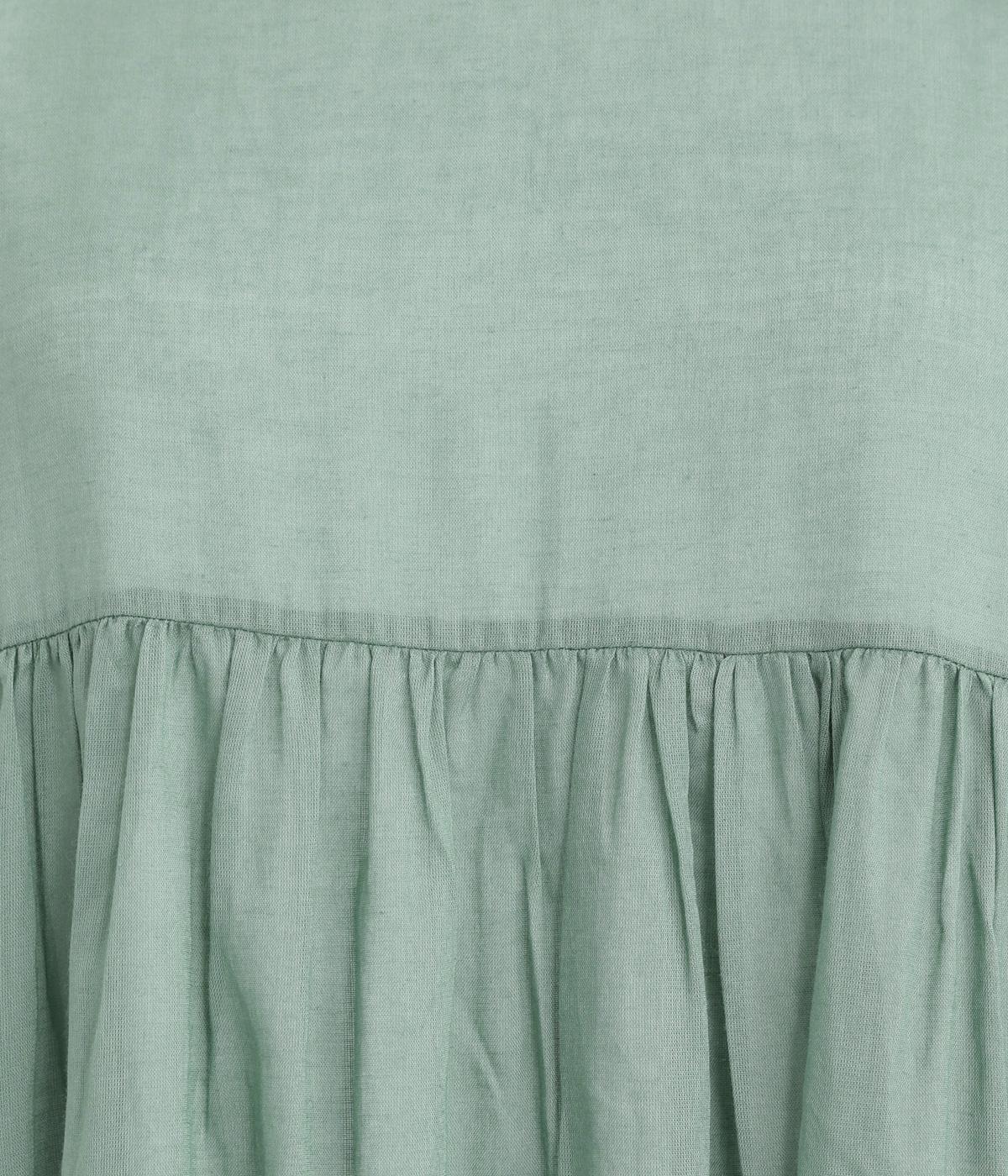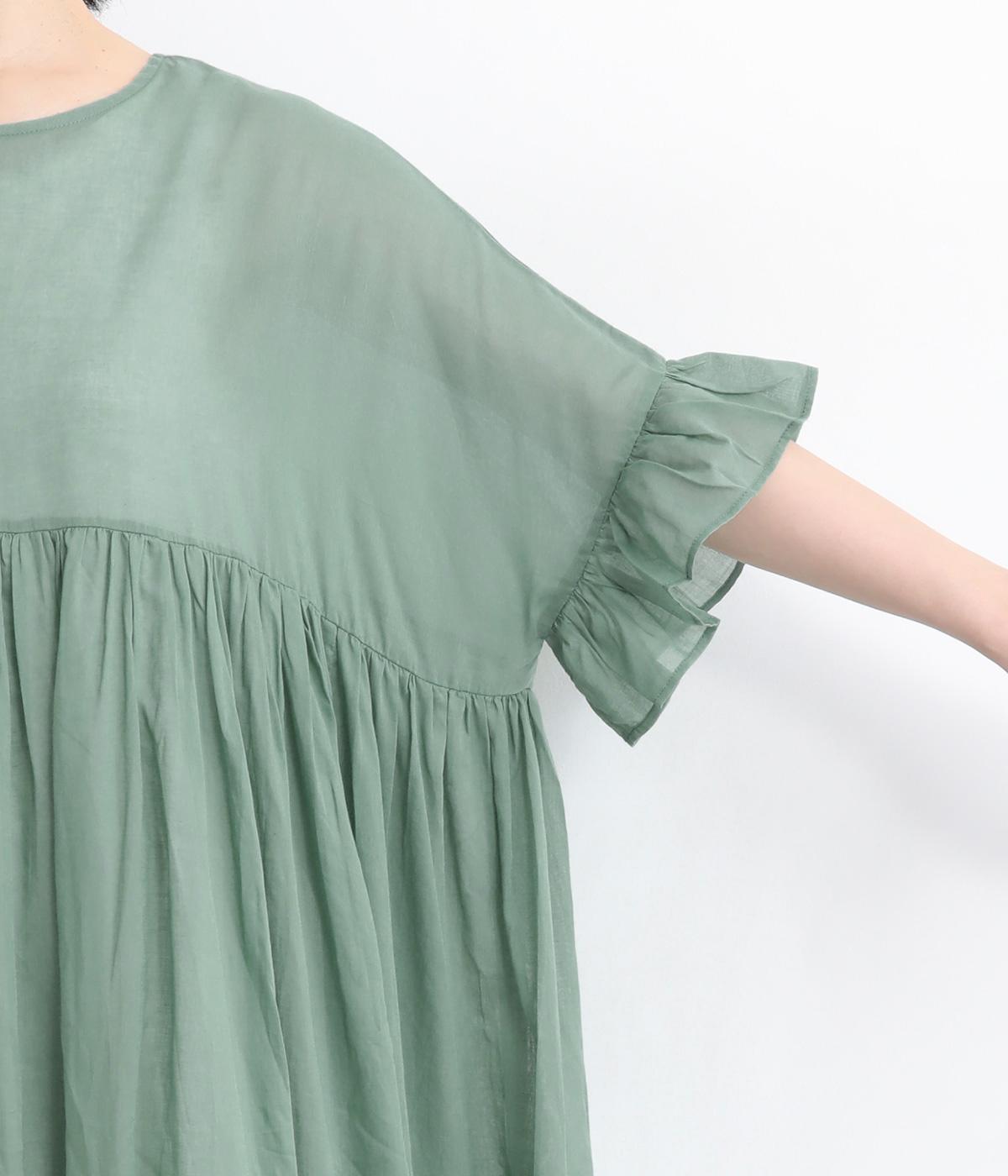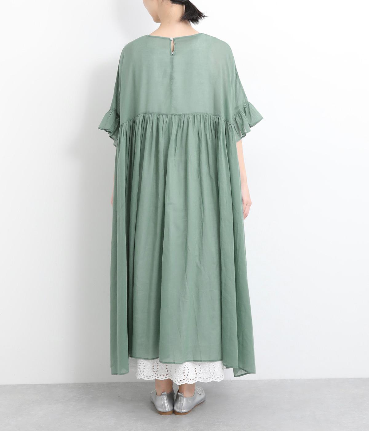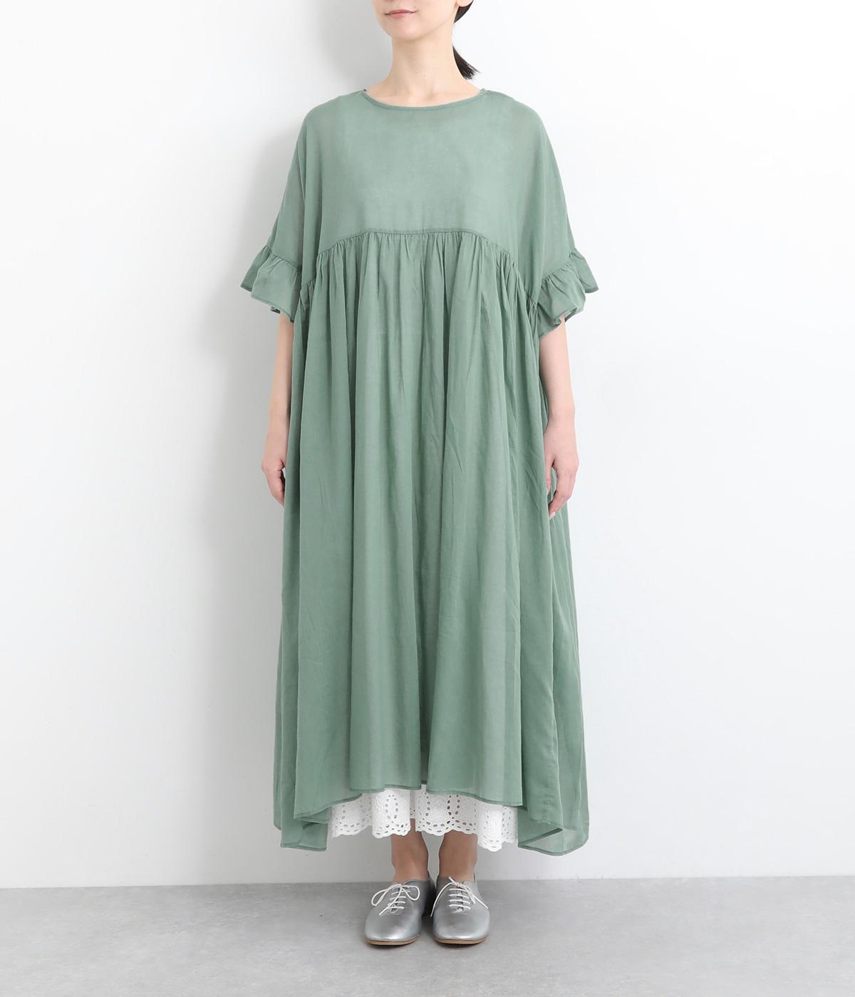 袖口のフリルや、ウエストにたっぷりとあしらったギャザーが大人かわいい装いを演出するワンピースです。着丈、身幅ともにゆとりを持たせたサイジングで様々な重ね着スタイルを楽しむのがおすすめ。