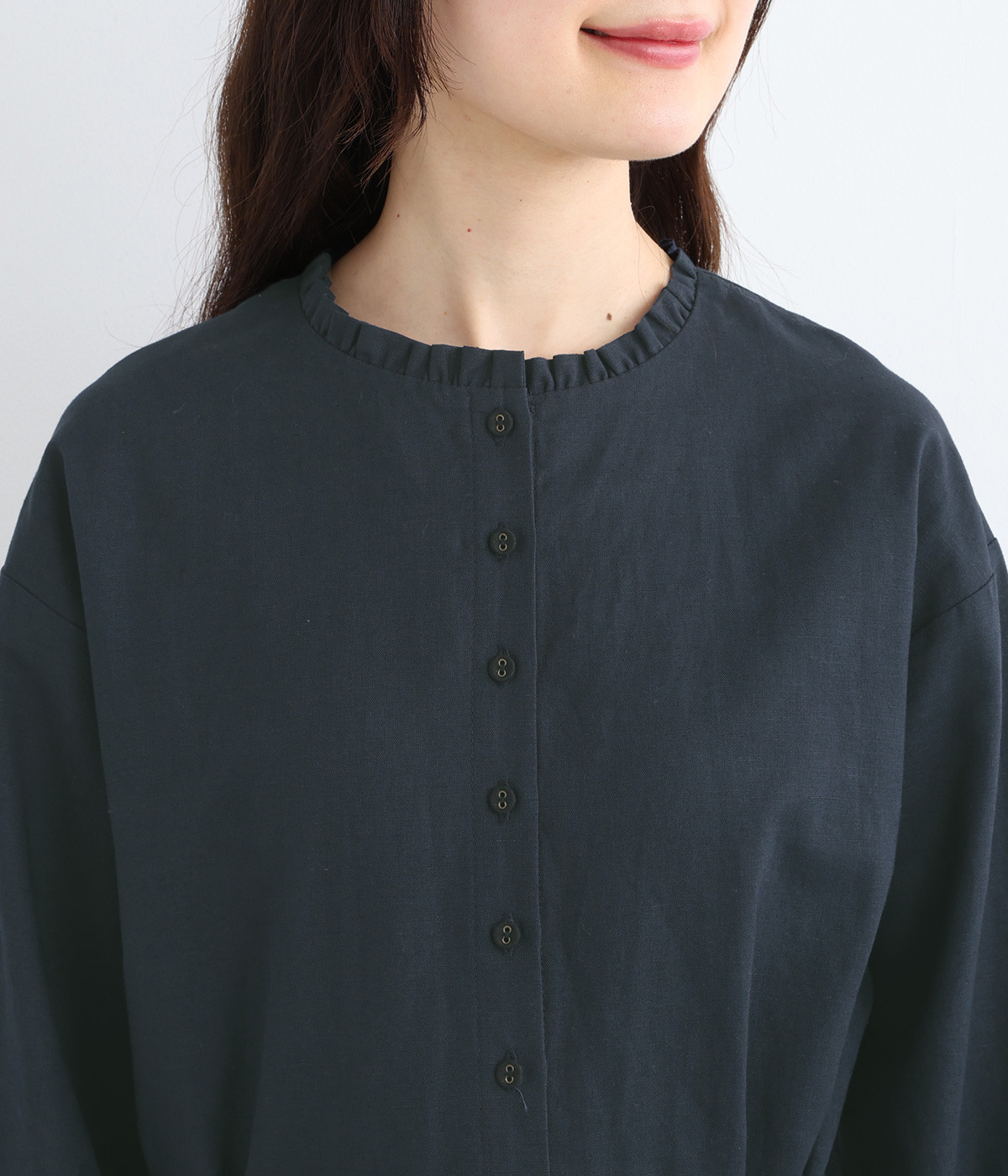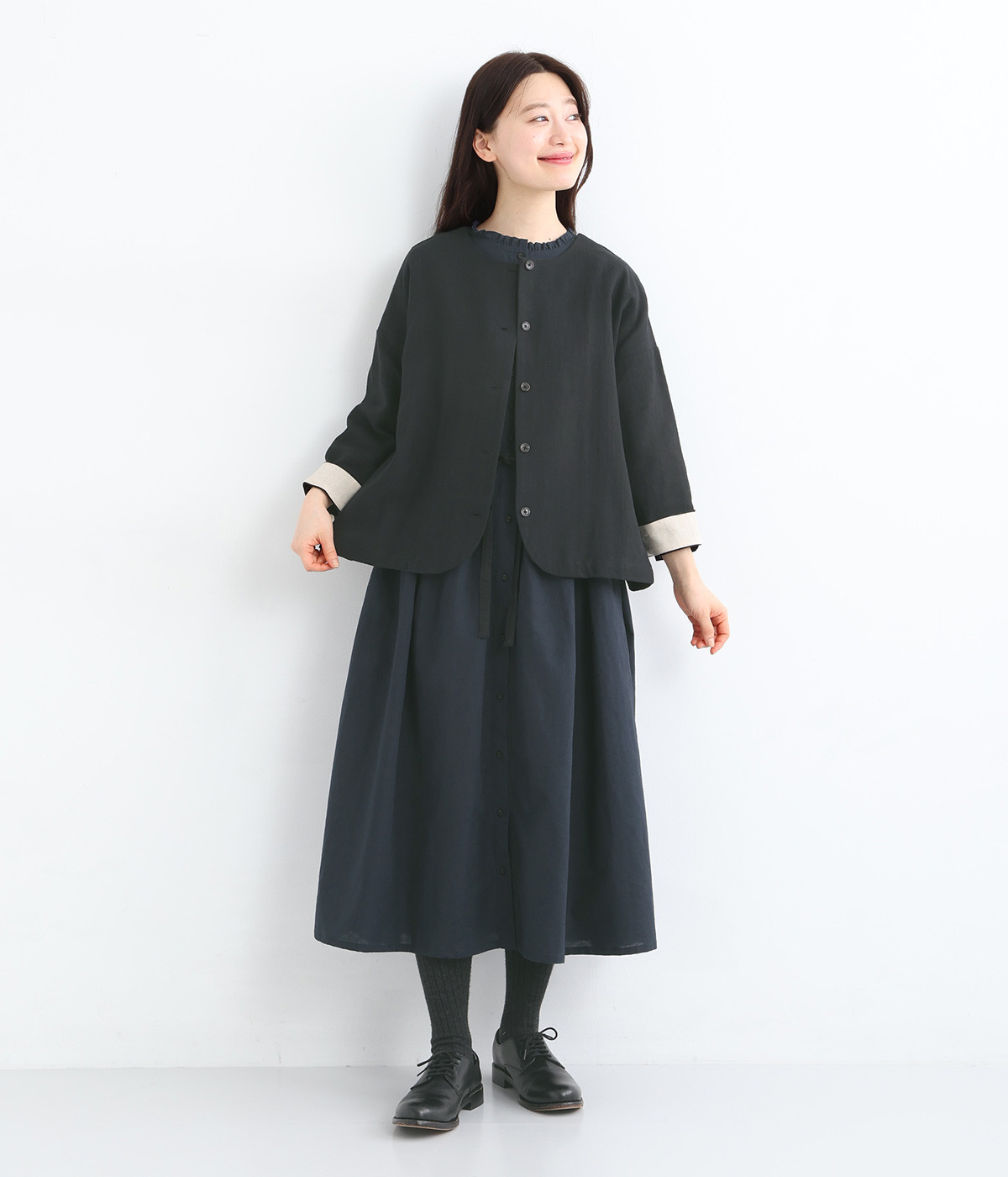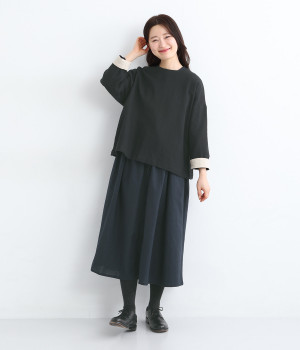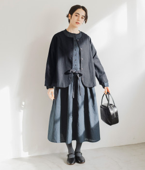 ふんわりとしたシルエットをキープする適度な厚みがあり、やわらかさも持ち合わせたコットンリネン素材です。肌触りがよく、さっぱりとした着心地がポイント。