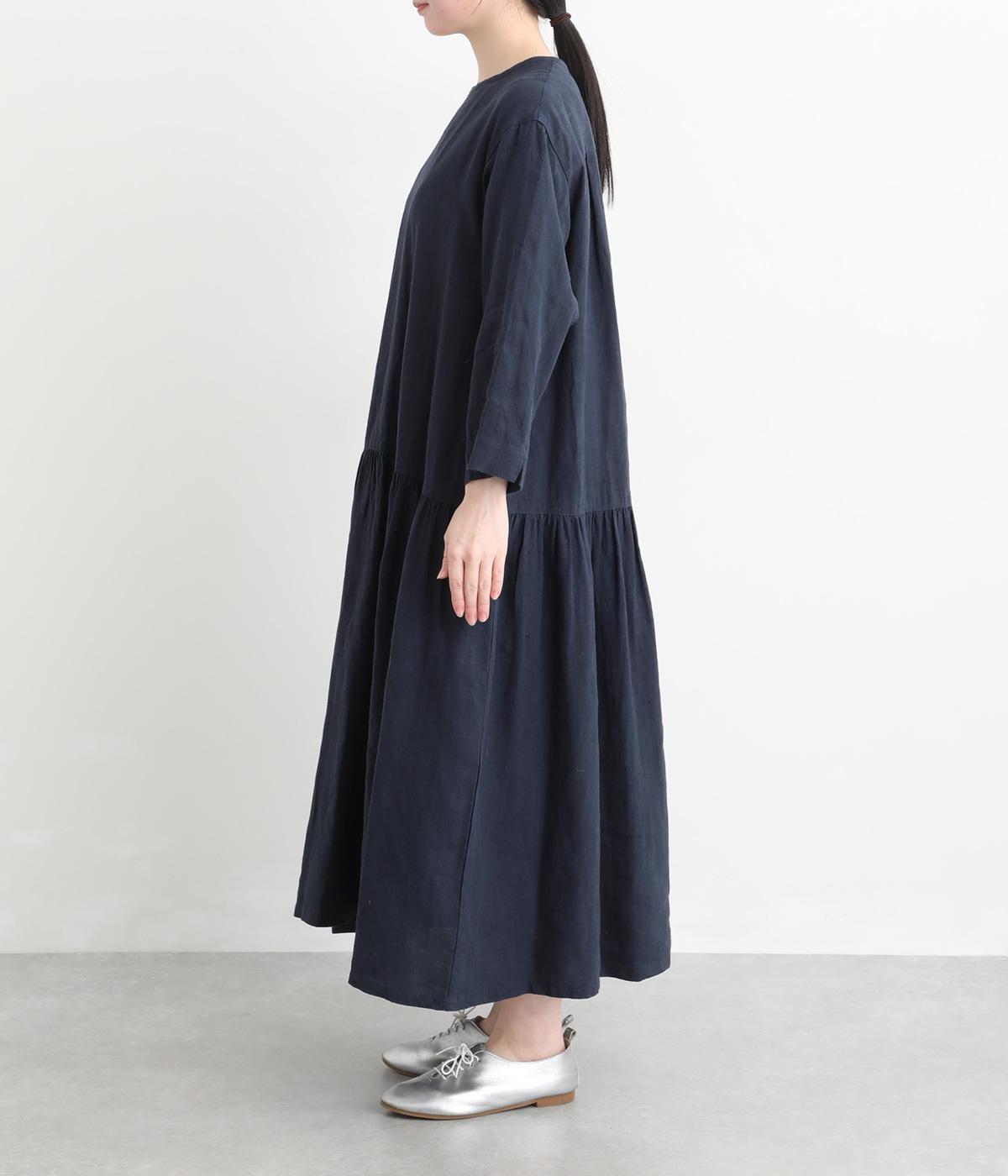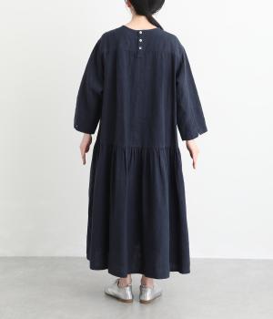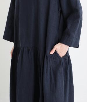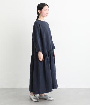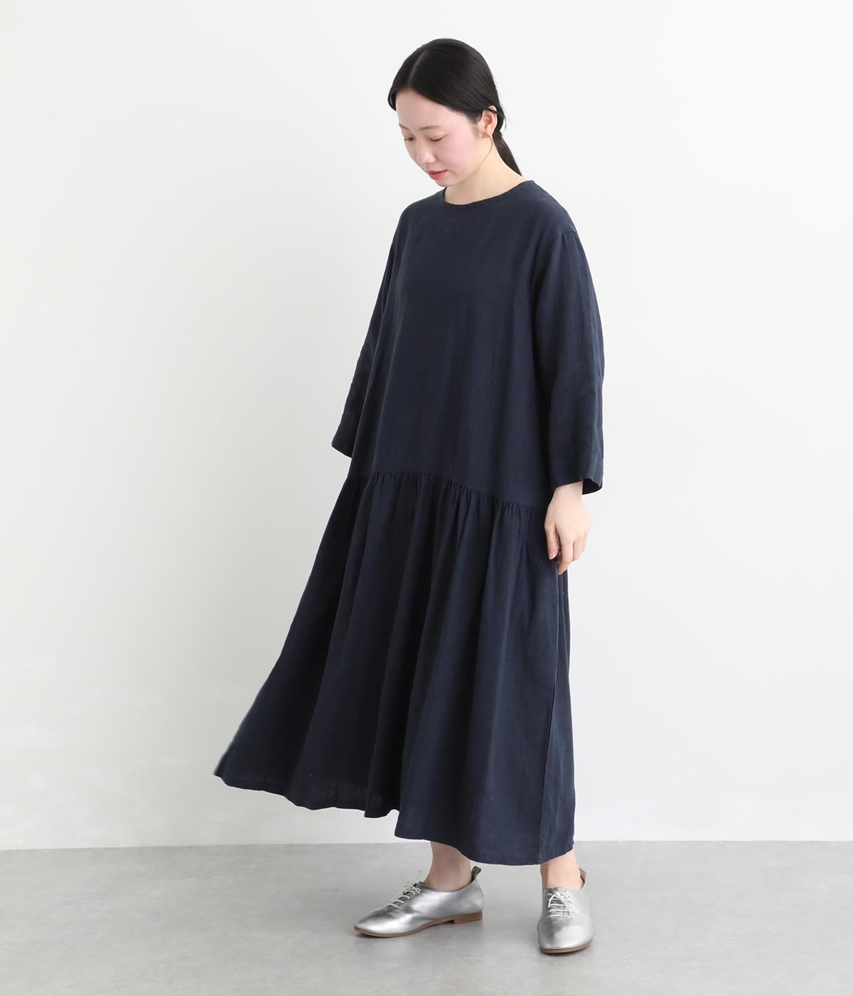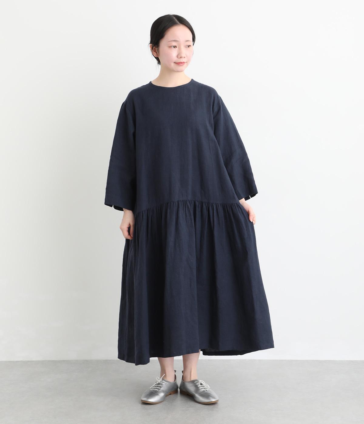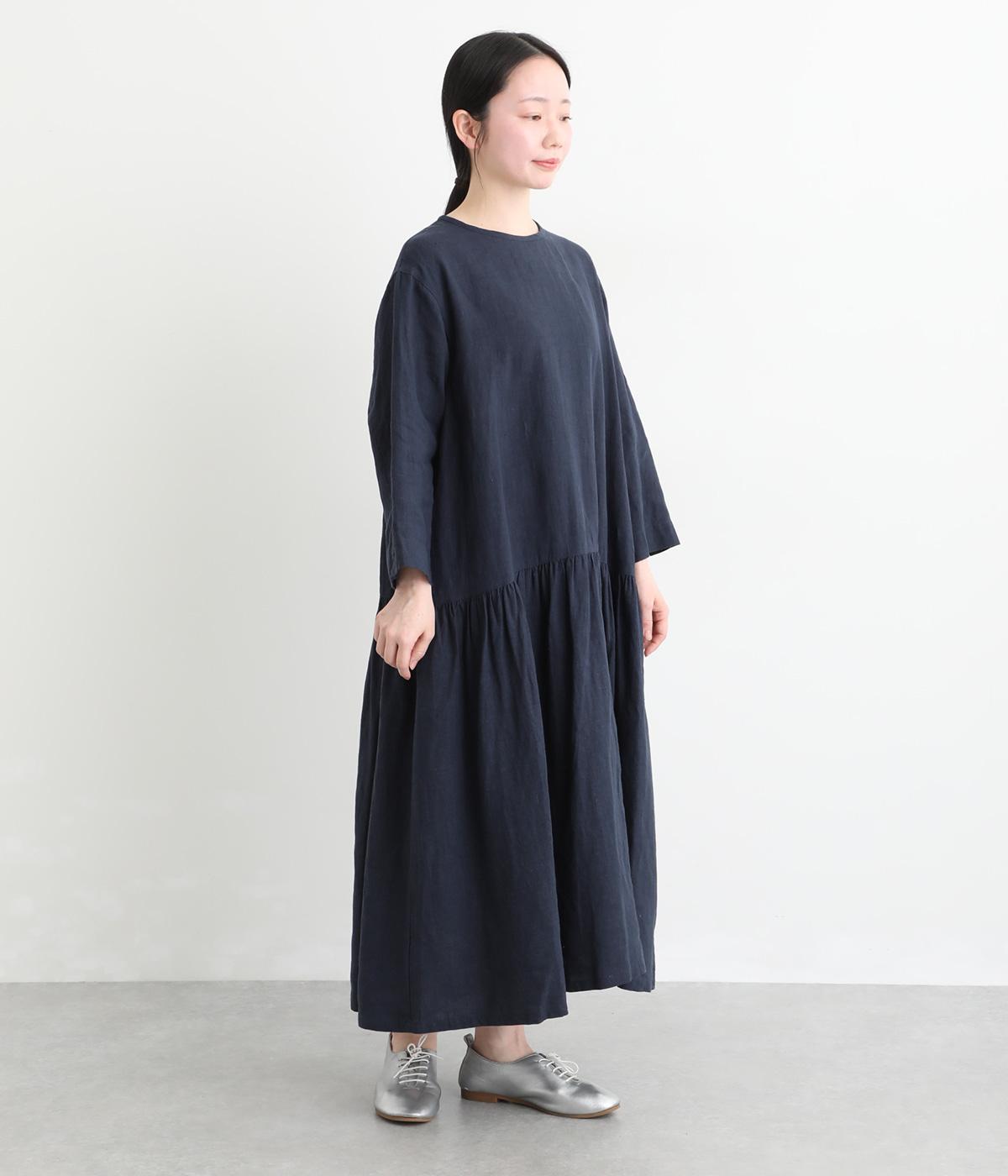 フレンチリネンギャザーワンピース(ネイビー-F)
