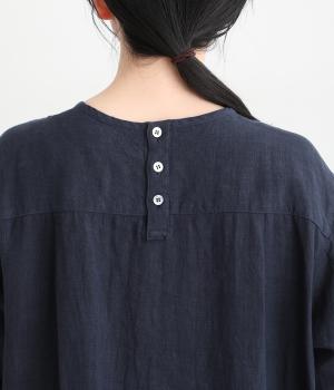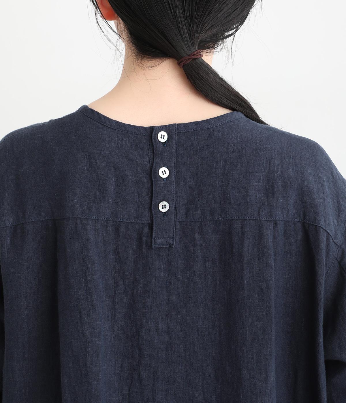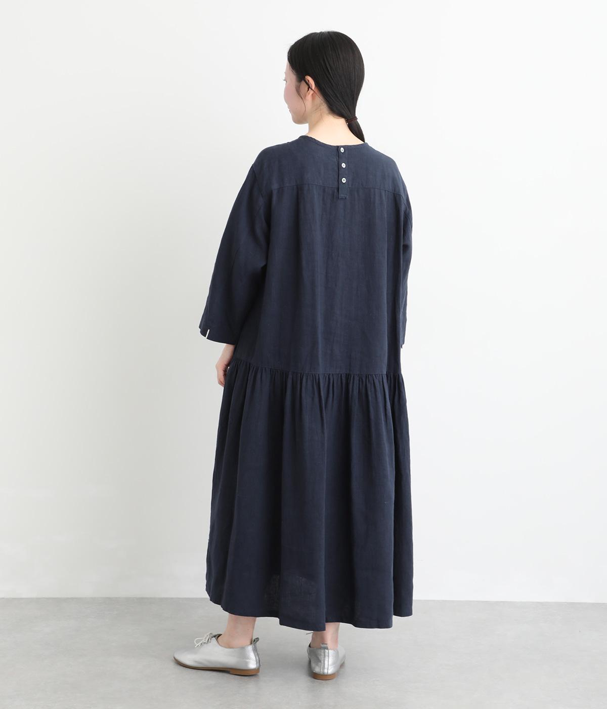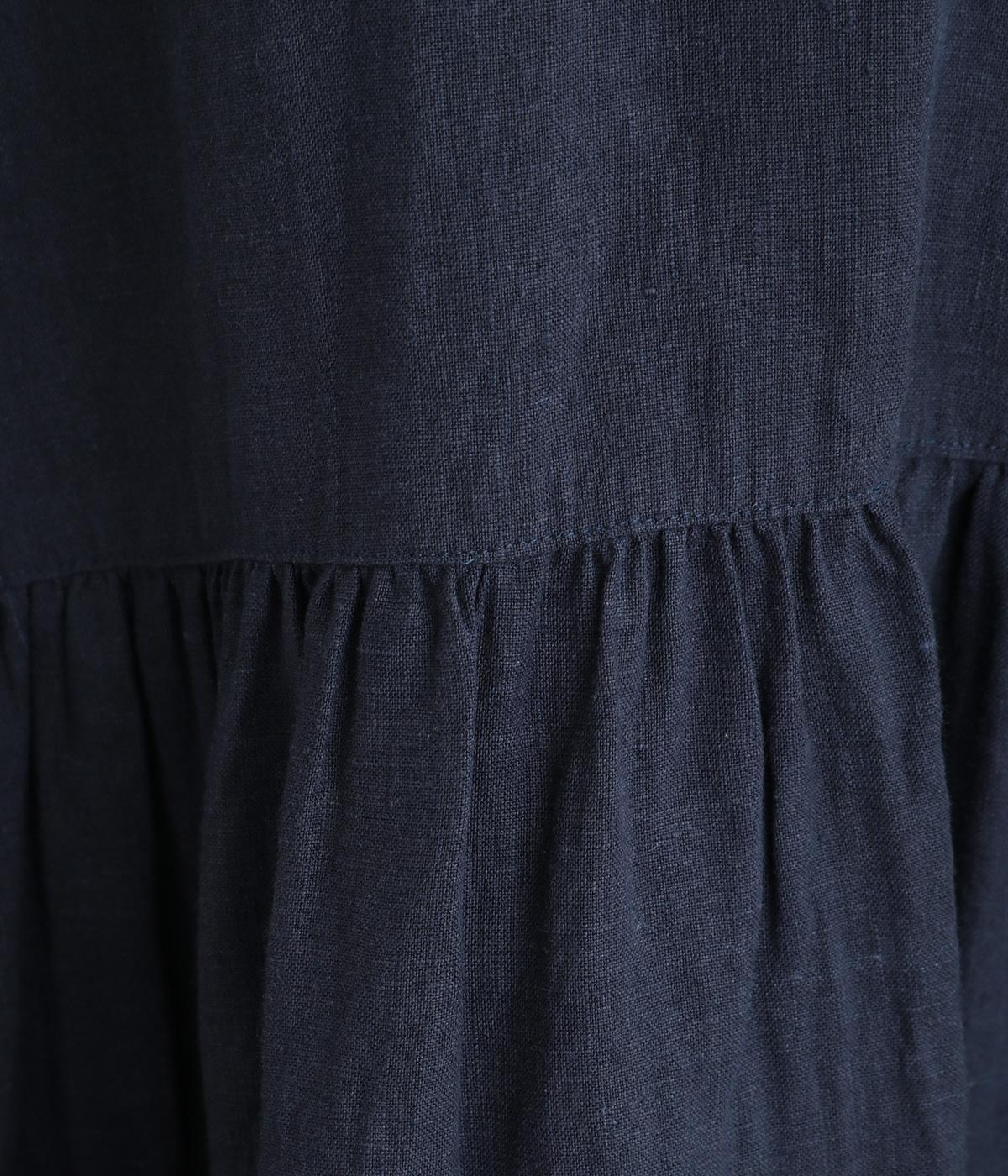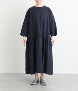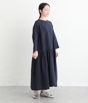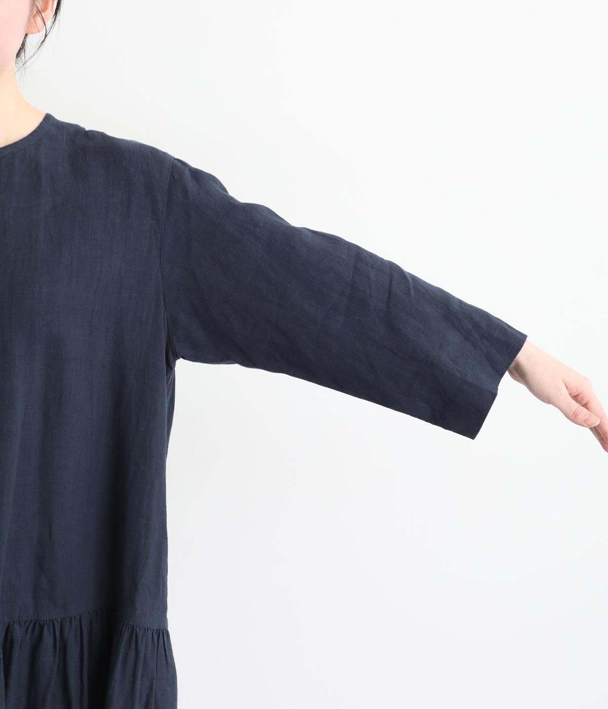 フレンチリネンギャザーワンピース(ネイビー-F)