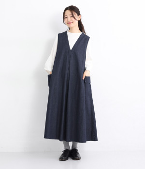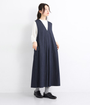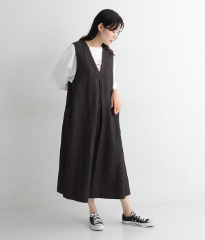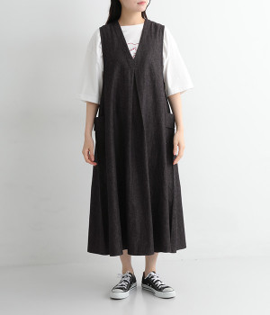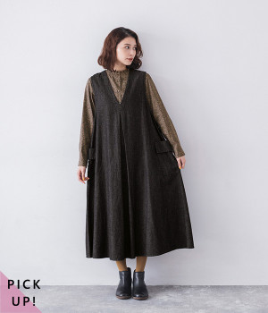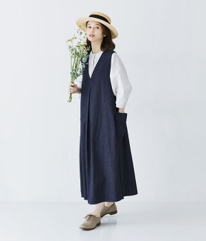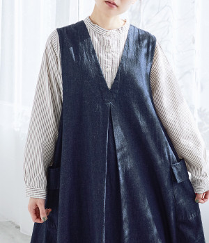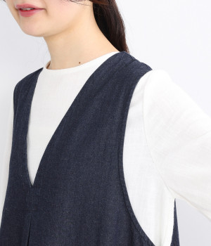 ・Vネック下のタック、背中の切り替えですっきり縦ラインを意識