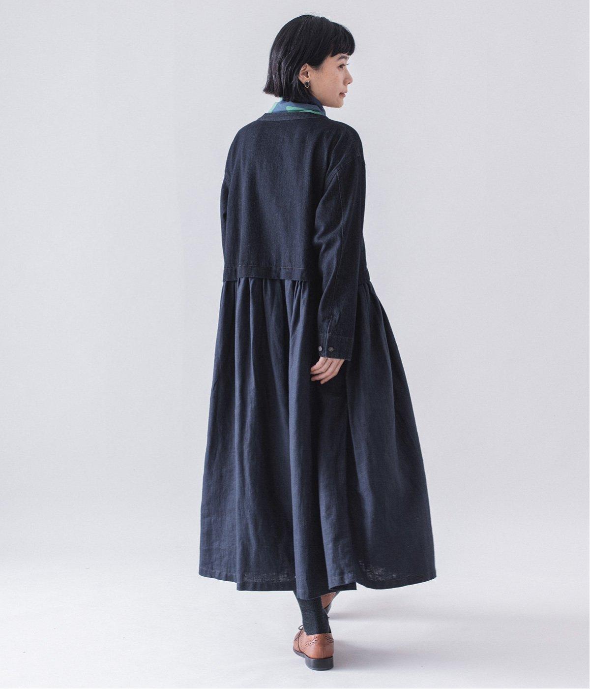 デニムとコットンリネンを掛け合わせた、異素材の切り替えが新鮮なワンピース。ふんわりと広がるAラインが動くたびにやさしく揺れ、重ね着次第でさまざまな着こなしを叶えます。