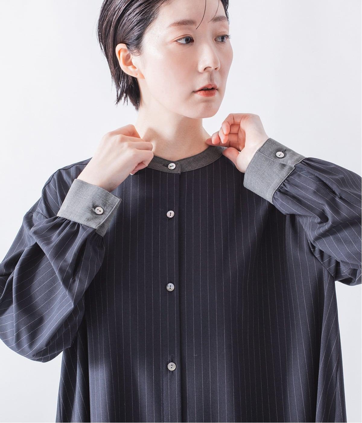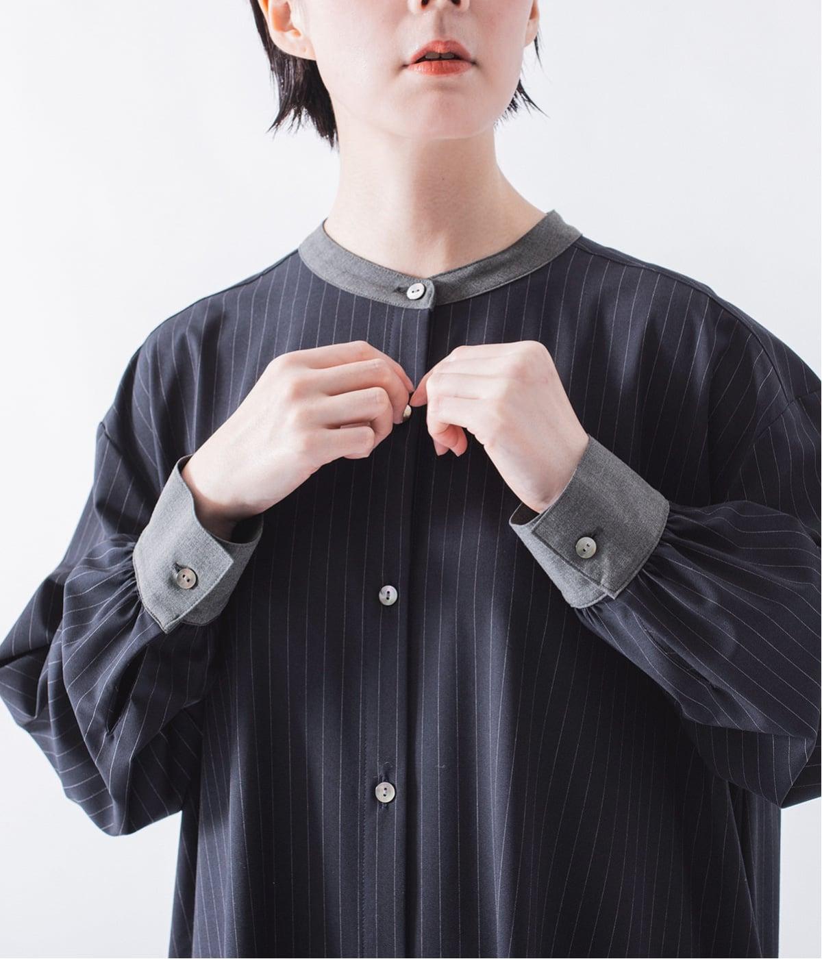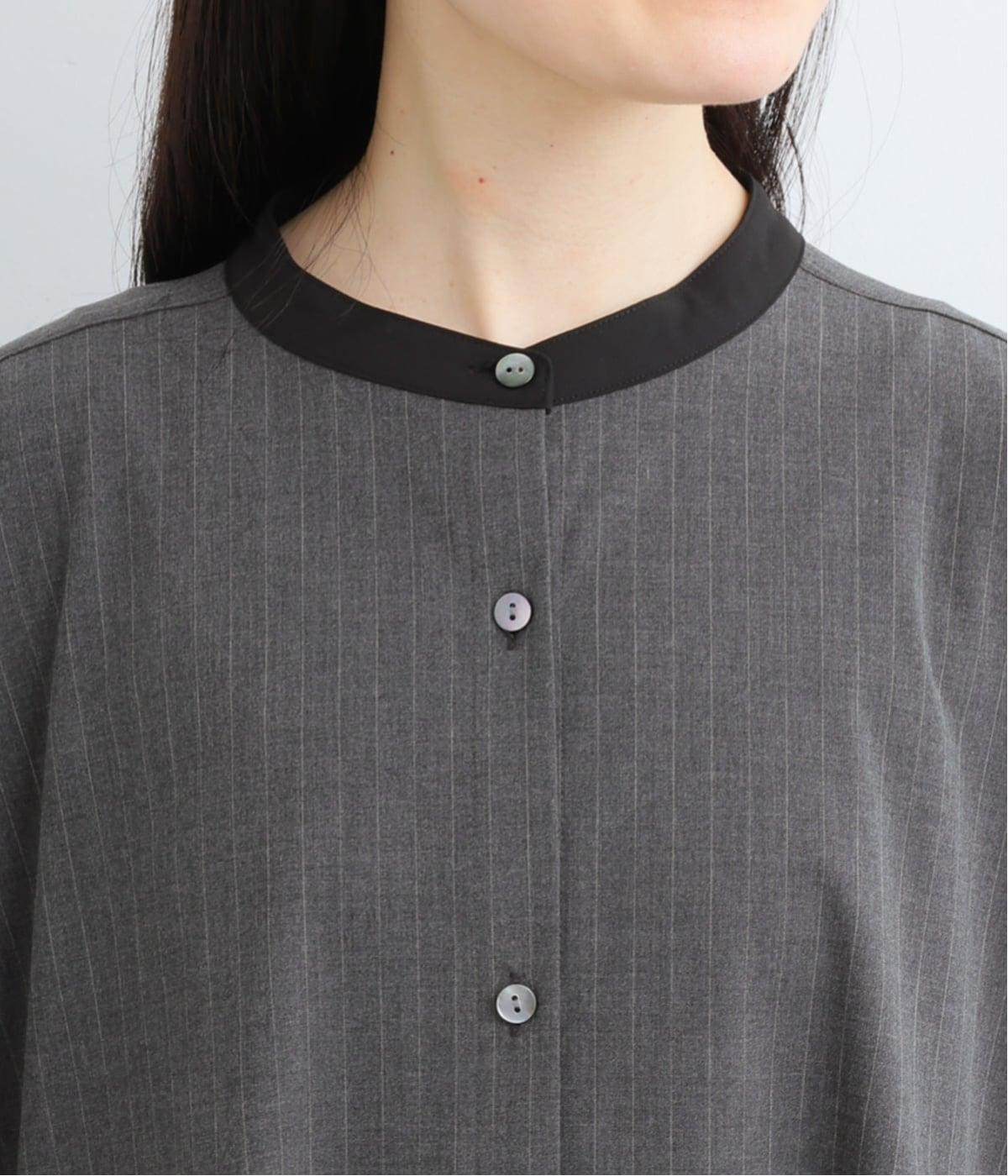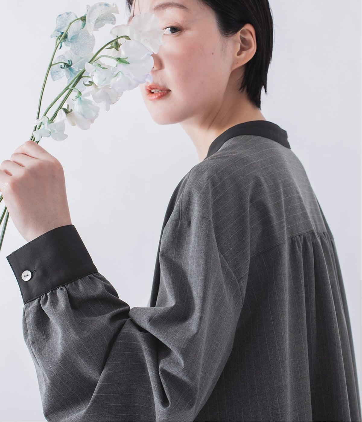 メンズライクな雰囲気に、貝ボタンや小さめの襟で女性らしいエッセンスを加えました。
